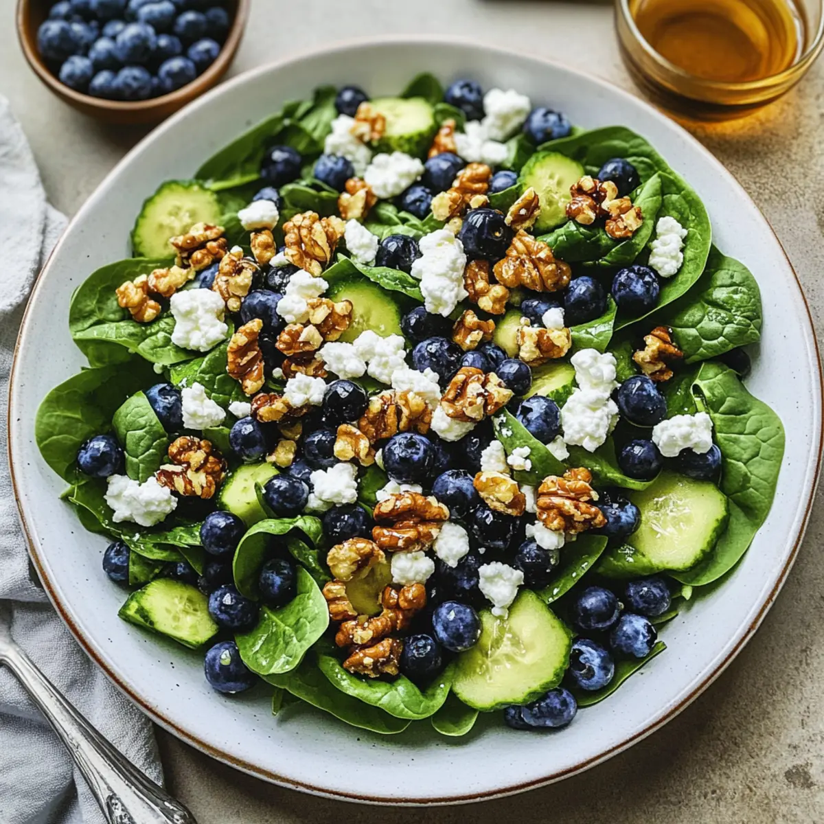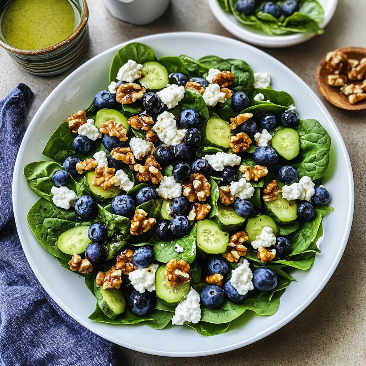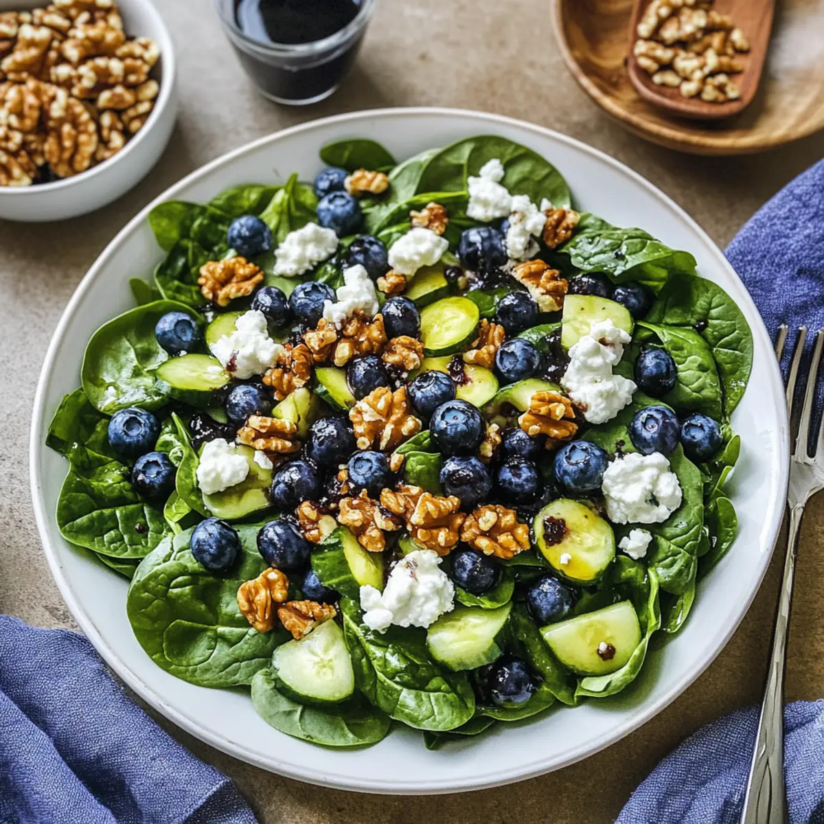 As I tossed together the ingredients for my latest creation, a wave of freshness filled the kitchen—a perfect reflection of the vibrant 20-Minute Spinach Blueberry Salad. With the delightful contrast of sweet blueberries, creamy goat cheese, and crunchy walnuts, this salad doesn’t just please the palate; it also nourishes the body. Whipping it up in just 20 minutes makes it a fantastic option for those busy days when you crave something quick, easy, and utterly satisfying. Whether you serve it as a side dish or a light meal, it’s gluten-free and vegetarian, making it a delightful addition to any table. Ready to taste a burst of flavors that is both nutritious and delicious? Let’s dive into this colorful bowl of goodness together! Why is this salad a must-try? Freshness, this 20-Minute Spinach Blueberry Salad combines crisp baby spinach with juicy blueberries for a delightful taste explosion. Nutritious, loaded with antioxidants and healthy fats from walnuts and avocado, it’s a powerhouse meal. Quick prep, ready in just 20 minutes, makes it perfect for busy schedules. Versatile, enjoy as a side or add grilled chicken for a filling entree. To complete your meal, consider pairing it with options like Pesto Pasta Salad or Spinach Stuffed Chicken. Crowd-pleaser, its vibrant colors and textures make it a hit at gatherings! 20-Minute Spinach Blueberry Salad Ingredients • Perfect for a quick, healthy meal! For the Salad Baby Spinach – Fresh and nutritious base for the salad; substitutions include arugula, baby kale, or mixed greens. Fresh Blueberries – Juicy and sweet; choose ripe blueberries for the best flavor and antioxidants. Raw Walnuts – Adds crunch and healthy fats; pecans or almonds make great substitutes. Avocado – Contributes creaminess when cubed; add right before serving to avoid browning. Goat Cheese – Offers a tangy, creamy element; you can also use feta cheese if preferred. Fresh Mint – Provides a refreshing herbal note; tear for better flavor release or omit if not available. For the Dressing Balsamic Vinaigrette – Ties the ingredients together with olive oil, balsamic vinegar, lemon juice, garlic powder, and honey; can be prepared ahead of time for convenience. Salt & Pepper – Enhances the overall flavor profile of the salad and dressing. With these delightful ingredients, this 20-Minute Spinach Blueberry Salad is just a toss away, promising fresh flavors and satisfying textures for any meal! Step‑by‑Step Instructions for 20-Minute Spinach Blueberry Salad Step 1: Prepare the Vinaigrette In a small bowl or jar, combine 1/4 cup of olive oil, 2 tablespoons of balsamic vinegar, 1 tablespoon of lemon juice, 1/2 teaspoon of garlic powder, and 1 teaspoon of honey. Add a pinch of salt and pepper to taste. Whisk vigorously or seal the jar and shake until the mixture is well blended. This quick balsamic vinaigrette will enhance the flavors of your 20-Minute Spinach Blueberry Salad. Step 2: Combine Salad Ingredients In a large salad bowl, add 4 cups of fresh baby spinach as the base. Scatter in 1 cup of ripe fresh blueberries, 1/2 cup of raw walnuts, and 1 cubed avocado to create a beautiful contrast of colors. Crumble in 4 ounces of creamy goat cheese, and sprinkle a handful of torn fresh mint leaves on top. Feel the excitement as vibrant ingredients come together for a delicious meal. Step 3: Dress the Salad Pour the prepared balsamic vinaigrette over the colorful salad ingredients. Using tongs, gently toss everything together to ensure an even coating and to combine the flavors. Aim for a balanced distribution of the dressing, so each bite has that delightful tanginess. You’ll see the spinach wilt slightly, as it absorbs the dressing, making it just perfect. Step 4: Serve Immediately serve your refreshing 20-Minute Spinach Blueberry Salad in individual bowls for a stunning presentation. It’s best enjoyed fresh to maintain the crispness of the spinach and the brightness of the blueberries. If you’re not serving right away, store the components separately and mix them just before enjoying to keep everything crunchy and vibrant. Expert Tips for the Best Spinach Blueberry Salad High-Quality Vinegar: Use a premium balsamic vinegar for dressing to elevate the flavor profile. It adds a rich, tangy sweetness that complements the salad perfectly. Avocado Alert: Add avocado just before serving to prevent browning. If you need to make it ahead, keep the avocado separate until you’re ready to enjoy your 20-Minute Spinach Blueberry Salad. Mint Magic: Tear fresh mint leaves instead of chopping to release their full flavor without bruising them too much. This small step enhances the salad’s refreshing taste. Balanced Tossing: When dressing the salad, toss gently but thoroughly to ensure each ingredient is coated without damaging the delicate spinach. This helps maintain the salad’s crispy texture. Customize Crunch: Experiment with different nuts like pecans or almonds if walnuts aren’t your preference. Each nut brings a unique crunch to your salad. Layer to Serve: For an impressive presentation, layer ingredients in a clear bowl, starting with spinach, then blueberries, avocado, cheese, and walnuts on top before dressing. This creates a beautiful visual feast! Variations & Substitutions for Spinach Blueberry Salad Feel free to make this delicious salad your own by experimenting with these fun variations! Gluten-Free Grains: Swap regular grains for quinoa or farro to add a hearty, nutritious base, perfect for a filling meal. Protein Boost: Add grilled chicken, succulent shrimp, or crispy tofu for a protein punch. This transforms your salad into a satisfying entrée for any time of the day. Nut-Free: Use sunflower seeds or pumpkin seeds instead of walnuts for a delightful crunch without the nuts. Not only will it maintain the texture, but it will also cater to those with nut allergies. Dairy-Free: Replace goat cheese with a vegan alternative or simply omit i