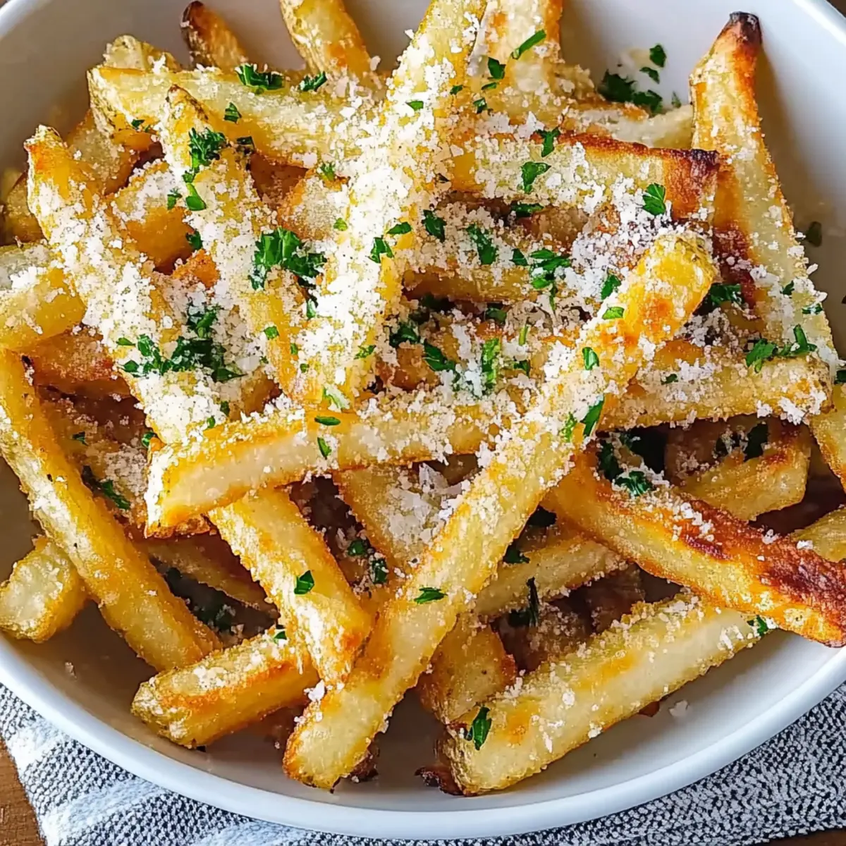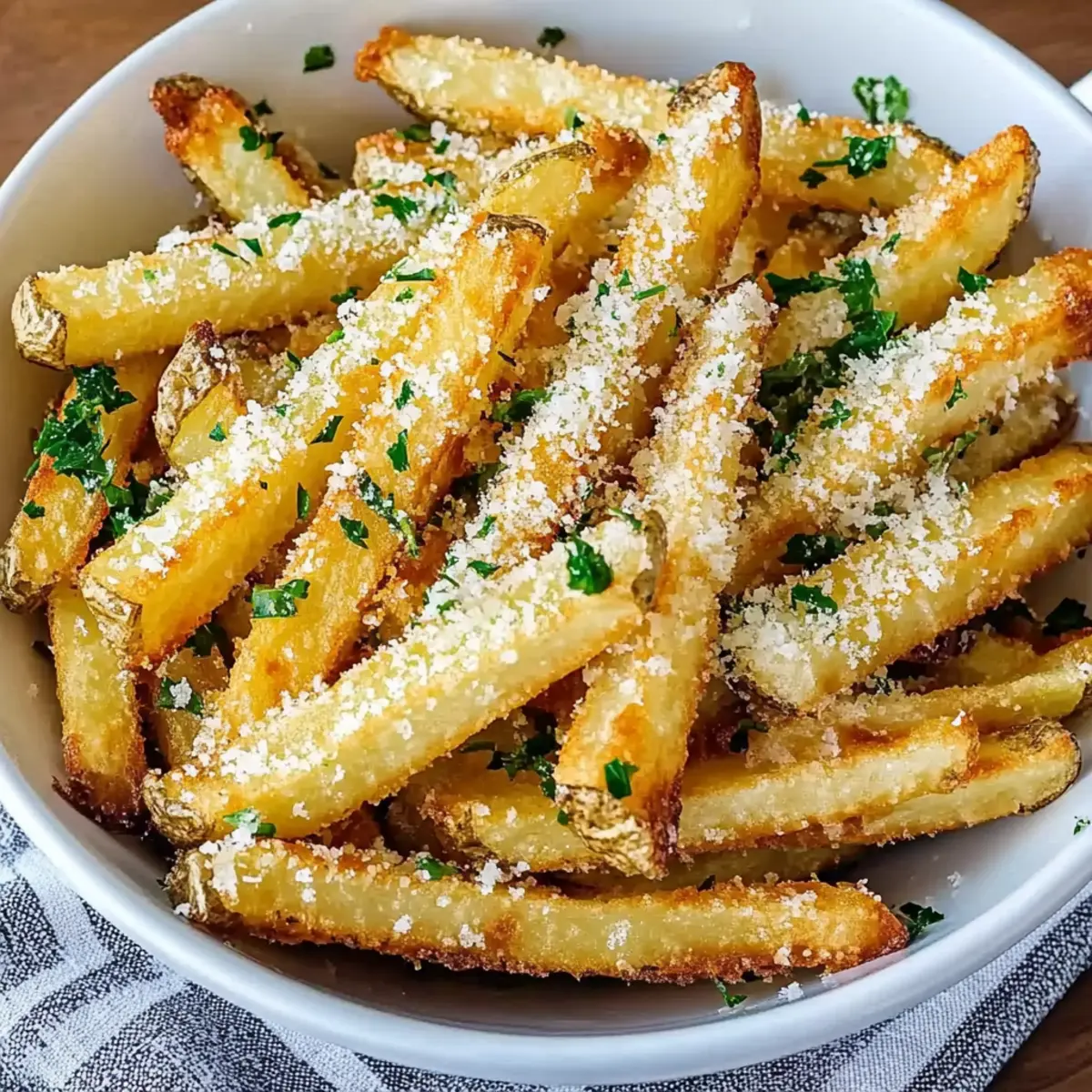With a satisfying crunch that echoes the sounds of neighborhood bistros, these Crispy Air Fryer Garlic Parmesan Fries deliver a cozy comfort right to your kitchen. Imagine the welcoming aroma of garlic wafting through your home as fluffy russet potatoes transform into perfectly crisp fries, all thanks to the magic of the air fryer. This recipe not only offers a delicious homemade alternative to greasy fast food, but it’s also quick and easy to whip up, making it a fantastic go-to for last-minute snack cravings or gatherings with friends. Topped with melty Parmesan and a sprinkle of fresh parsley, these fries are sure to impress anyone at your table. Ready to discover how to make these delightful bites? Let’s get started! Why Are These Fries So Irresistible? Simply Irresistible: Each bite of these Air Fryer Garlic Parmesan Fries transports you to a cozy eatery, offering an unbeatable crunch. Quick & Easy: In just 20 minutes, you can serve up a gourmet snack, perfect for those evenings when cooking feels daunting. Healthy Twist: Enjoy the comfort of fries without the guilt! Air frying dramatically reduces oil and calories compared to traditional frying. Versatile Companion: Pair them with a variety of dips like garlic aioli or ranch dressing for a customizable experience, just like the delicious Garlic Parmesan Cheeseburger you love! Crowd-Pleasing Delight: Whether it’s a game day treat or a dinner side, these fries are bound to impress family and friends alike as a satisfying addition to any table. Air Fryer Garlic Parmesan Fries Ingredients For the Fries • Russet Potatoes – The ideal base for crispy fries with a fluffy interior; can substitute with Yukon Gold for creaminess. • Olive Oil – Ensures even browning and adds richness; feel free to use other high-heat oils if preferred. • Garlic Powder – Delivers a robust garlic flavor without the risk of burning; perfect for seasoning these air fryer garlic parmesan fries. • Parmesan Cheese – Freshly grated adds a salty, nutty finish that melts beautifully over the fries; swap for Pecorino Romano for a sharper kick. • Parsley – Provides a burst of freshness and color; can be replaced with chives or omitted entirely if desired. • Salt & Black Pepper – Essential for enhancing the overall flavor; adjust according to your taste preference. Step‑by‑Step Instructions for Air Fryer Garlic Parmesan Fries Step 1: Prepare the Potatoes Start by washing and peeling (if desired) the russet potatoes. Cut them into even-sized fries to ensure uniform cooking. Aim for a thickness of about 1/4 inch for the best texture. Once sliced, give them a quick rinse in cold water to remove excess starch, then pat them dry with paper towels to enhance crispiness. Step 2: Season In a large mixing bowl, toss the fries with olive oil, garlic powder, salt, and pepper until they are evenly coated. Make sure each fry is thoroughly covered in oil and seasoning for brilliant flavor. This step is crucial for achieving that wonderful garlic taste in your air fryer garlic parmesan fries; the oil helps them crisp up perfectly. Step 3: Preheat the Air Fryer Set your air fryer to preheat at 375°F (190°C) for about 5 minutes. This ensures that the fries will start cooking immediately once they’re placed inside, promoting an even crisp. A well-preheated air fryer gives you that golden-brown color and crunchy texture you’re aiming for, which is the hallmark of delicious Air Fryer Garlic Parmesan Fries. Step 4: Air Fry Carefully arrange the seasoned fries in the air fryer basket in a single layer. Avoid overcrowding to allow the hot air to circulate around each fry. Cook them for 15 to 18 minutes, shaking the basket halfway through to ensure even cooking. Look for a golden and crispy exterior as the fries cook to perfection. Step 5: Finishing Touch Once your fries are cooked and beautifully golden, transfer them to a large bowl. While they’re still hot, sprinkle generously with freshly grated Parmesan cheese and chopped parsley. Toss them gently to allow the cheese to melt slightly and coat every fry. This last step adds that irresistible richness that complements the Air Fryer Garlic Parmesan Fries beautifully. What to Serve with Crispy Air Fryer Garlic Parmesan Fries These crispy, golden delights are perfect for creating a memorable meal that tantalizes the taste buds and warms the heart. Creamy Coleslaw: A tangy crunch that balances the savory fries beautifully, adding a refreshing element to every bite. The creamy texture contrasts delightfully with the crispy fries, making it an ideal companion. Garlic Aioli: Elevate your fries with this rich, garlicky dip that enhances the flavor profile, delivering a creamy texture full of zing. It’s a match made in heaven for garlic lovers! Classic Burger: Nothing complements these fries quite like a juicy, homemade burger. The hearty flavors of beef paired with the fries create a satisfying feast. Crispy Chicken Tenders: For a fun, finger-food feast, pair with crispy chicken tenders. Their savory crunch echoes the fries, making for a perfect shareable platter. Fresh Garden Salad: A light and refreshing side, featuring mixed greens dressed with zesty vinaigrette. This tommy salad brings a vibrant contrast to the richness of the fries. Soda or Sparkling Water: Quench your thirst with a fizzy beverage that cuts through the richness of the fries. Whether you choose cola or a refreshing lemon-flavored sparkling water, it will elevate the meal. Chocolate Chip Cookies: End your meal on a sweet note with warm, gooey cookies. Their rich flavor paired with salty fries creates an irresistible taste experience that brings joy to every bite. How to Store and Freeze Air Fryer Garlic Parmesan Fries Fridge: Store leftover fries in an airtight container in the fridge for up to 3 days. This will help maintain their freshness and prevent them from becoming soggy. Freezer: For longer storage, freeze the fries in a single la