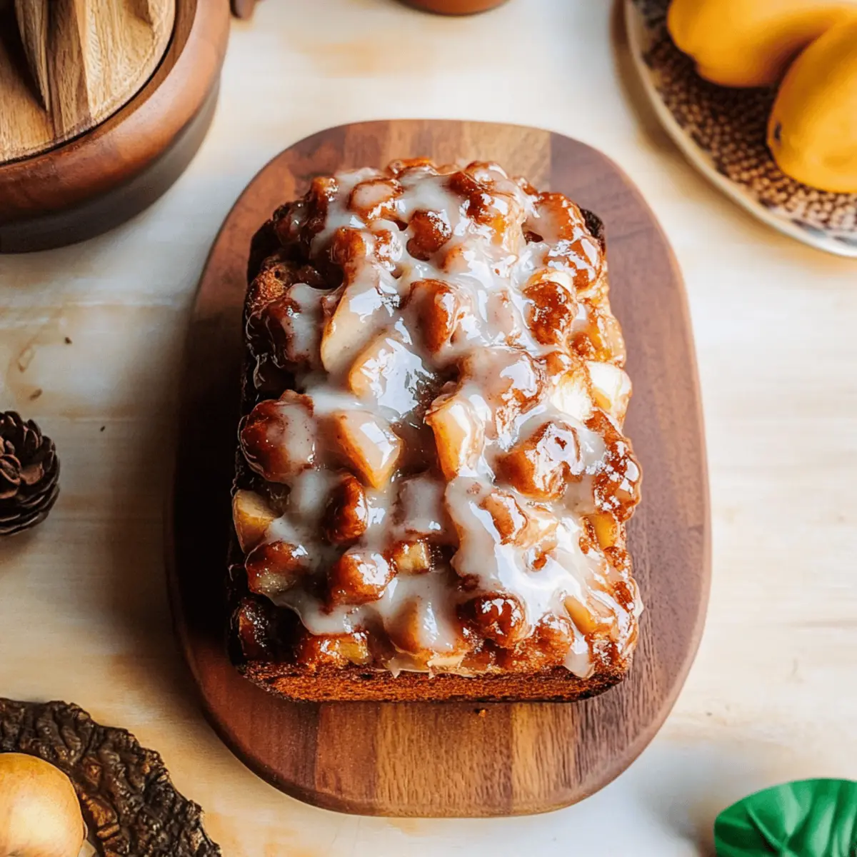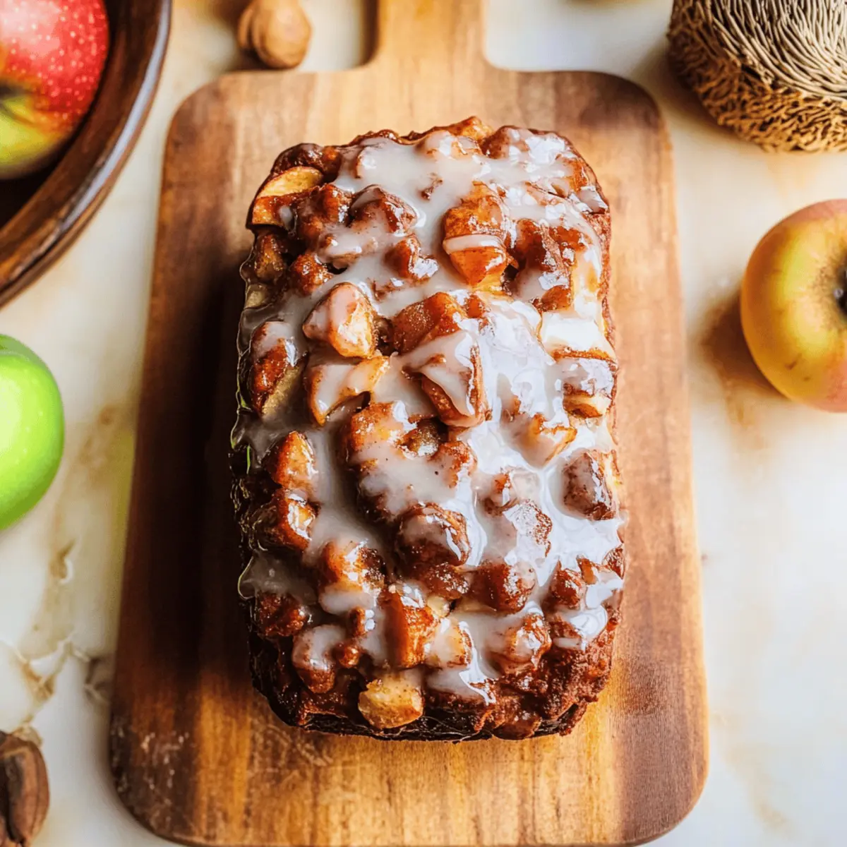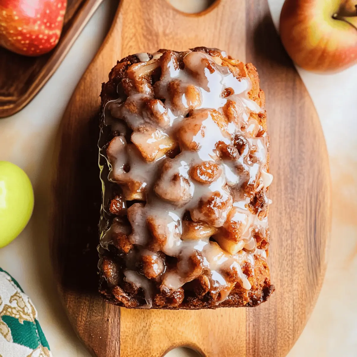 Nothing says autumn quite like the delightful aroma of spiced apples wafting through your kitchen. As the leaves start to turn and the air crisps up, it’s the perfect season to whip up a comforting loaf of Amish Apple Fritter Bread. This easy-to-make quick bread captures the essence of classic fried apple fritters without the fuss of frying, making it a foolproof addition to your fall recipe lineup. Not only does it boast a soft, moist crumb laced with chunks of tender apples, but it’s also a lovely treat to share with family and friends during those cozy gatherings. So, are you ready to embrace the flavors of the season with a slice of homemade comfort? Let’s dive into this delicious recipe together! What makes this bread irresistible? Comforting, Homemade Goodness: Each bite of this Amish Apple Fritter Bread delivers the warmth of spiced apples and tender crumb, creating a nostalgic flavor that will transport you back to cozy fall afternoons. Easy to Make: With simple ingredients and straightforward steps, this recipe is perfect for bakers of any skill level. Even if you’re busy, you can whip up this delightful treat in no time! Versatile Delight: Feel free to switch up the fruits or add nuts for a unique twist! Not quite apple season? Try it with pears or blueberries for a fresh take. Perfect for Sharing: The inviting aroma and beautiful golden loaf make it an ideal dish to share with loved ones, whether as a gift or at gatherings. Looking for another crowd-pleaser? Don’t forget to check out my Joe Garlic Bread for a savory option! Amish Apple Fritter Bread Ingredients • Gather all the essentials for a cozy baking experience! For the Bread Medium Baking Apples – Provide sweetness and texture; Fuji, Honeycrisp, or Granny Smith recommended for best flavor. Light Brown Sugar – Adds sweetness and moisture; Can be substituted with white sugar for a less caramelized flavor. Ground Cinnamon – Enhances the warm spice profile; Use extra for a more intense flavor. Ground Ginger – Provides a subtle zing and depth; Can be omitted or replaced with nutmeg for variation. Large Egg – Binds the ingredients together and adds moisture; No direct substitutes; however, a flax egg can be used for a vegan option. White Granulated Sugar – Balances the flavors and sweetness; Can be substituted with coconut sugar for a healthier option. Vegetable Oil – Adds fat for moisture and tenderness; Can be replaced with melted butter or applesauce for a different flavor. Full-Fat Sour Cream – Contributes to a rich texture and tanginess; Greek yogurt can be used as a substitute. Vanilla Extract – Adds aromatic flavor; Use high-quality extract for the best results. All-Purpose Flour – Provides the structure of the bread; Can be replaced with gluten-free flour for a gluten-free version. Baking Soda – Helps the bread rise; Check for freshness; old baking soda will not provide sufficient lift. Kosher Salt – Enhances flavor and balances sweetness; Regular table salt can be used, but reduce the amount slightly. For the Glaze Powdered Sugar – Sweetens the topping; Can be substituted with a sugar-free variety for a less sweet glaze. Milk – Thins the glaze to the right consistency; Almond milk or other non-dairy milk can also be used. Gather these wonderful ingredients and get ready to enjoy a slice of the delightful Amish Apple Fritter Bread, rich with flavor and perfect for those cozy fall moments! Step‑by‑Step Instructions for Amish Apple Fritter Bread Step 1: Prep Pan Preheat your oven to 350°F (175°C) and prepare a 9×5-inch loaf pan by spraying it generously with non-stick spray. This will ensure your delicious Amish Apple Fritter Bread releases effortlessly after baking. Make sure the oven is fully preheated before moving on to the next step for optimal baking results. Step 2: Mix Apples In a medium bowl, combine 2 cups of chopped medium baking apples, 1/2 cup of light brown sugar, 1 teaspoon of ground cinnamon, and 1/4 teaspoon of ground ginger. Toss everything together until the apples are well coated. Set this apple mixture aside, allowing the flavors to meld as you prepare the wet ingredients. Step 3: Whisk Wet Ingredients In a large mixing bowl, whisk together 1 large egg, 1 cup of granulated sugar, 1/2 cup of vegetable oil, 1 cup of full-fat sour cream, and 1 teaspoon of vanilla extract until the mixture is smooth and creamy. This wet mixture will provide the rich moisture your Amish Apple Fritter Bread needs, creating a tender crumb throughout. Step 4: Combine Dry Ingredients In a separate bowl, sift together 2 cups of all-purpose flour, 1 teaspoon of baking soda, and 1/2 teaspoon of kosher salt. Gradually add this dry mixture to the wet ingredients, gently mixing until just combined. Be careful not to overmix, as this could affect the texture of your bread; you want to keep it light and fluffy. Step 5: Fold in Apple Mixture Using a spatula, gently fold three-quarters of the prepared apple mixture into the batter, making sure the apples are evenly distributed without over-stirring. This step is crucial for your Amish Apple Fritter Bread so that the sweet, spiced apples create delicious pockets of flavor within the loaf. Step 6: Layer in Pan Pour half of the batter into your prepared loaf pan, spreading it evenly. Then, sprinkle the remaining apple mixture on top and finish by pouring the rest of the batter over the apples. This layering creates a beautiful appearance and ensures each slice has both batter and apple goodness, crucial for the ultimate flavor experience. Step 7: Bake Place the loaf pan in the preheated oven and bake for 50–55 minutes. To check for doneness, insert a toothpick into the center of the loaf; it should come out clean or with a few moist crumbs, indicating your Amish Apple Fritter Bread is perfectly baked and ready to be enjoyed. Step 8: Cool Once baked, remove the loaf pan from the oven and let it cool for at least 30 minutes on a wire rack. T