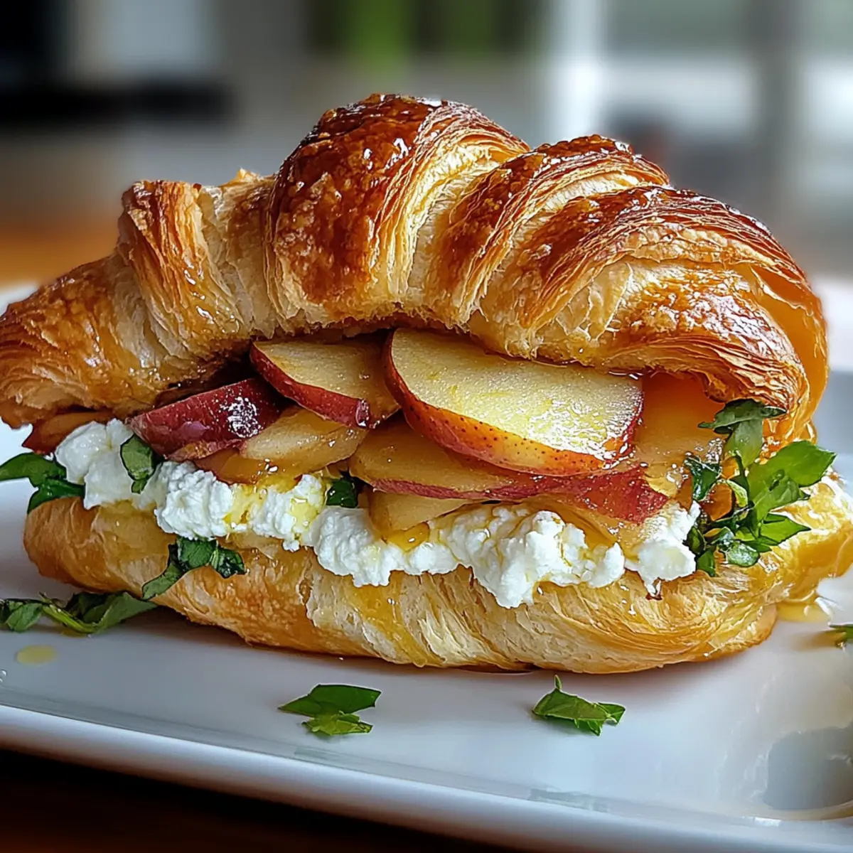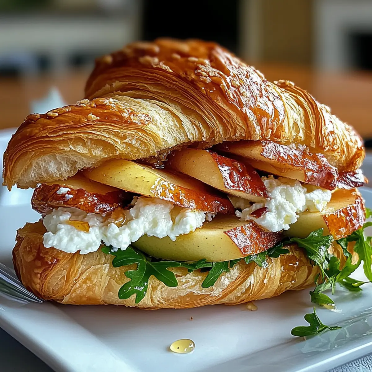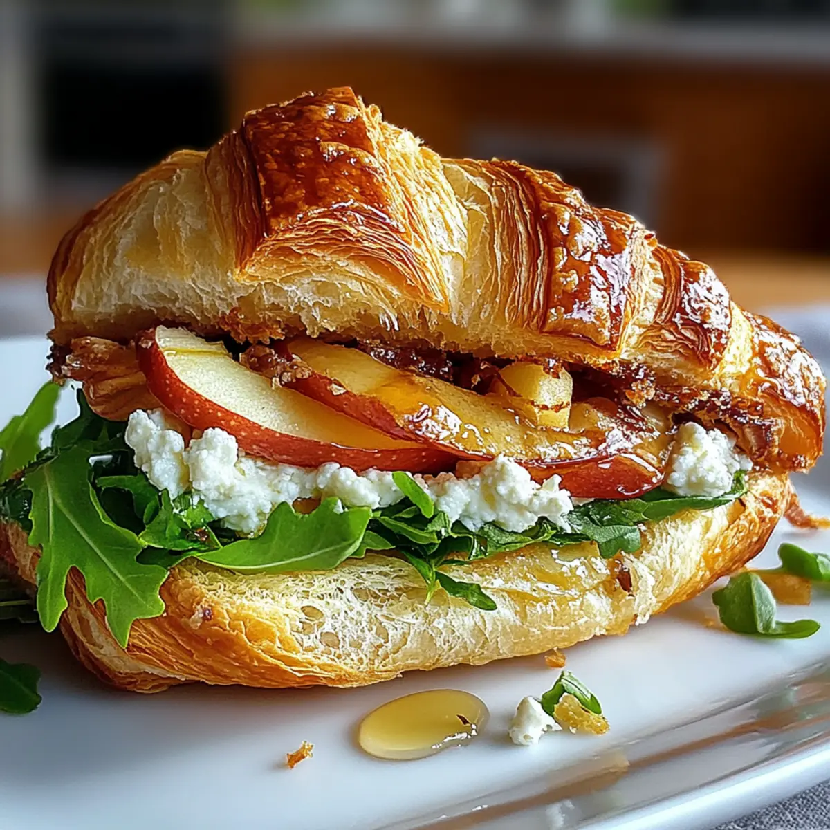 The first bite of a warm croissant can instantly transport you to a quaint Parisian café, but you don’t have to buy a plane ticket for that experience. My Apple & Goat Cheese Croissant Sandwich brings together the sweet crunch of fresh apples and the creamy tang of goat cheese, creating a comforting blend that’s perfect for breakfast or a light lunch. This quick meal is not only satisfying but also a delightful gourmet twist that will impress your family and friends. With the option to mix and match cheeses or even switch to gluten-free bread, you can customize it to suit your taste. Are you ready to elevate your snack game and indulge in this delicious fusion? Why is this sandwich so irresistible? Flaky Perfection: Freshly baked croissants create a warm base that melts in your mouth. Creamy Delight: The goat cheese filling brings a tangy creaminess, perfectly complemented by drizzle of honey. Flavor Contrast: Crisp, juicy apple slices add a refreshing crunch that elevates each bite. Quick & Easy: Whip it up in just minutes for a gourmet brunch or a satisfying lunch option. Customizable: Experiment with different cheeses, or swap for gluten-free bread without losing flavor. Crowd-Pleasing: Impress family and friends with this delightful twist on a classic sandwich that feels indulgent yet simple! Pair it with a side of fresh fruit or a light salad for a balanced meal, making it an excellent option for any gathering. Apple & Goat Cheese Croissant Sandwich Ingredients For the Sandwich • Croissants – the flaky foundation; opt for high-quality, fresh ones for the best texture. • Goat Cheese – the creamy tang that makes each bite delightful; substitute cream cheese or sharp cheddar if desired. • Honey – adds a touch of sweetness; adjust to your taste for a perfectly balanced filling. • Cinnamon – enhances the flavor of the goat cheese; just a pinch adds warmth to your sandwich. • Apples – adds a refreshing crunch; Honeycrisp or Granny Smith work beautifully for this Apple & Goat Cheese Croissant Sandwich. • Arugula – optional but recommended for a peppery kick and added freshness. Storage Tips • Goat Cheese Mixture – prepare this a day in advance; simply store in the fridge for easy assembly. Step‑by‑Step Instructions for Apple & Goat Cheese Croissant Sandwich Step 1: Preheat the Oven Start by preheating your oven to 350°F (175°C). This ensures that your Apple & Goat Cheese Croissant Sandwich will bake evenly and become perfectly warm and slightly toasted. Allow about 10 minutes for the oven to reach this temperature while you prepare the other ingredients. Step 2: Prepare the Croissants Carefully slice each croissant in half horizontally using a serrated knife. This will create a perfect pocket for filling. As you slice, aim for a clean cut to maintain the croissant’s flaky integrity. Set the croissant halves aside on a clean surface, ready to be filled with delicious ingredients. Step 3: Mix the Goat Cheese Filling In a mixing bowl, combine softened goat cheese, a drizzle of honey, and a pinch of cinnamon. Use a fork or mixer to blend until creamy and smooth. If the mixture seems too thick, thin it out with a splash of milk until it reaches a spreadable consistency. This will be the luxurious filling of your croissant sandwich. Step 4: Assemble the Sandwiches Spread a generous amount of the goat cheese mixture on the bottom half of each croissant. Layer with thin apple slices for that refreshing crunch. Make sure the apple slices are evenly distributed to create a delightful contrast with the creamy filling in your Apple & Goat Cheese Croissant Sandwich. Step 5: Add Fresh Arugula (Optional) For an added layer of flavor and freshness, sprinkle some arugula over the apple slices in each croissant. This optional step introduces a peppery kick that complements the sweetness of the apple and the tanginess of the goat cheese beautifully. Step 6: Bake the Sandwiches Place the assembled sandwiches on a baking sheet lined with parchment paper. Transfer them to your preheated oven and bake for about 5-7 minutes. Keep an eye on them, as you’re looking for a light golden color on the croissants and to ensure the filling is warmed through. Step 7: Serve Immediately Once your Apple & Goat Cheese Croissant Sandwiches are warm and slightly toasted, remove them from the oven. Let them cool briefly, then serve immediately. Pair them with a side of fresh fruit or salad for a balanced meal that showcases this delightful culinary fusion. Make Ahead Options These Apple & Goat Cheese Croissant Sandwiches are perfect for meal prep, saving you time on busy mornings! You can prepare the goat cheese filling and slice the apples up to 24 hours in advance. Simply store the goat cheese mixture in an airtight container in the refrigerator to maintain its creamy texture, and coat the apple slices with a sprinkle of lemon juice to prevent browning. When you’re ready to serve, slice the croissants, spread the filling, and layer on the apples and arugula if using. Pop the assembled sandwiches in the oven for about 5-7 minutes before serving for effortlessly gourmet results that are just as delicious as if you had made them fresh! Apple & Goat Cheese Croissant Sandwich Variations Feel free to let your culinary creativity shine as you explore exciting twists on this delicious recipe! Cream Cheese Twist: Swap goat cheese for cream cheese for a milder and creamier filling that’s still irresistibly tasty. Apple Variety: Use different apple types like Fuji or Braeburn for unique flavors and sweetness levels. Each variety can bring its own signature crunch and taste. Gluten-Free Alternative: Replace croissants with gluten-free bread for a gluten-free option that maintains flavor without compromise. It’s a great way to include everyone at the table! Extra Sweetness: Drizzle a touch more honey on top of the apple slices for an even sweeter bite that pairs wonderfully with the tangy che