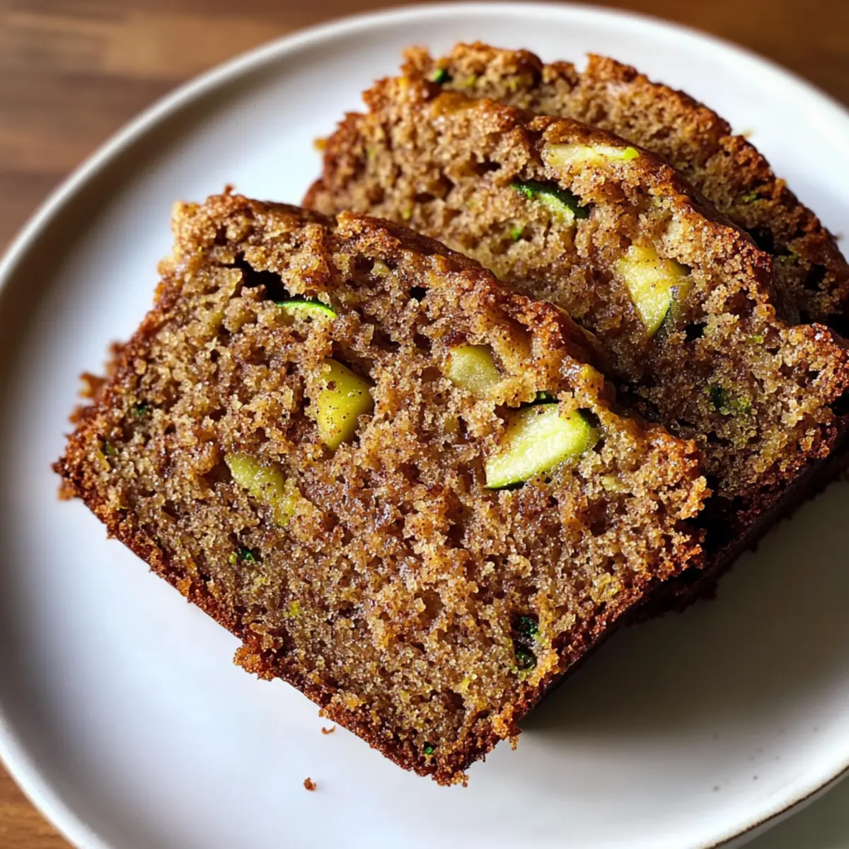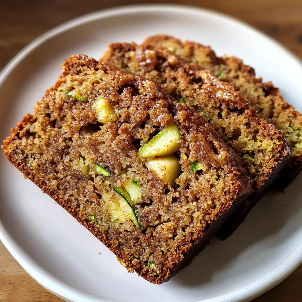 As the sweet aroma of cinnamon wafts through the kitchen, I find myself reminiscing about lazy mornings spent savoring delightful baked goods. Enter my Easy Apple Cinnamon Zucchini Bread—a charming twist on a classic that combines the crispness of fresh apples with the subtle earthiness of zucchini. This beginner-friendly recipe is not only a breeze to whip up in just 15 minutes of prep time, but it also delivers a delightful, moist loaf that’s perfect for breakfast or an afternoon snack. Plus, it’s incredibly versatile; you can easily customize it with your favorite nuts or spices! Curious about how to transform your kitchen into a cozy haven filled with the warmth of homemade goodness? Let’s dive into this scrumptious recipe! Why is This Recipe a Must-Try? Simplicity at Its Best: With just 15 minutes of prep time, this beginner-friendly bread makes baking stress-free and enjoyable. Balanced Flavors: The combination of sweet apples, warm cinnamon, and tender zucchini creates a mouthwatering flavor profile that appeals to everyone. Versatility: Modify the recipe by adding walnuts, chocolate chips, or swapping apples with your favorite fruits for a personal touch. Perfect for Any Occasion: Whether it’s a cozy breakfast or a delightful afternoon snack, this Apple Cinnamon Zucchini Bread is a crowd-pleaser that suits every moment. Quick and Easy Storage: Keep leftovers fresh in an airtight container for up to a week! Need more ideas? Pair it with cream cheese from my Cinnamon Roll Sugar Cookies for an irresistible treat! Apple Cinnamon Zucchini Bread Ingredients For the Batter • All-Purpose Flour – Provides the backbone for the bread’s structure, contributing to a tender yet sturdy crumb. • Baking Soda – Helps the bread rise, ensuring a soft, airy texture by reacting with acids in the batter. • Baking Powder – Works alongside baking soda to promote consistent rising throughout the loaf. • Salt – Balances sweetness and enhances the depth of flavors. • Ground Cinnamon – Adds a classic warming spice note that complements apple and zucchini beautifully. • Ground Nutmeg – Offers a subtle earthy undertone, enriching the spiced profile. • Vegetable Oil – Keeps the bread moist and tender without overpowering delicate flavors. • Granulated Sugar – Contributes sweetness and helps achieve a golden crust. • Light Brown Sugar – Adds a hint of molasses richness, enhancing overall sweetness. • Eggs – Bind ingredients together and help achieve a light, lifted texture. • Vanilla Extract – Infuses sweet aroma and elevates the flavors of apple and cinnamon. • Shredded Zucchini – Enhances moisture and provides a tender crumb without significantly altering flavor. • Diced Apple – Adds pockets of juicy sweetness and texture. • Chopped Walnuts or Pecans (optional) – Introduces a satisfying crunch and nutty flavor. Feel free to gather these ingredients and get ready to savor the delightful experience of baking your very own Apple Cinnamon Zucchini Bread! Step‑by‑Step Instructions for Apple Cinnamon Zucchini Bread Step 1: Preheat Oven Begin by preheating your oven to 350°F (175°C). Meanwhile, prepare a 9×5-inch loaf pan by greasing and flouring it, or line it with parchment paper for easy removal later. This step ensures your Apple Cinnamon Zucchini Bread will bake evenly and develop a beautiful, golden crust. Step 2: Prepare Dry Ingredients In a medium bowl, whisk together the all-purpose flour, baking soda, baking powder, salt, ground cinnamon, and nutmeg until well combined. This mixture forms the dry foundation for your Apple Cinnamon Zucchini Bread, so it’s crucial to blend these ingredients thoroughly. Set the bowl aside, allowing the flavors to mingle. Step 3: Mix Wet Ingredients In a large bowl, combine the vegetable oil with granulated sugar and light brown sugar. Beat these ingredients together until the mixture is smooth and creamy, which should take around 2-3 minutes. This step adds moisture and sweetness to your bread, making it indulgent and flavorful. Step 4: Add Eggs and Vanilla Crack in the eggs one at a time, mixing vigorously after each addition until fully incorporated. Then, pour in the vanilla extract, blending it into the mixture until everything is well combined. This will give your Apple Cinnamon Zucchini Bread a delightful aroma as it bakes! Step 5: Fold in Fruits Gently fold the shredded zucchini and diced apple into the wet mixture, ensuring they are evenly distributed without overmixing. The zucchini adds moisture, while the apple introduces sweet pockets of flavor, making each bite of your bread exceptionally enjoyable. Step 6: Combine Ingredients Gradually add the bowl of dry ingredients to the wet mixture, folding it in until just combined. Take care not to overmix, as this can affect the texture of your Apple Cinnamon Zucchini Bread; it’s perfect if there are a few small flour streaks remaining. Step 7: Add Nuts If you’re using nuts, now is the time to fold in the chopped walnuts or pecans. This optional step adds a crunchy texture and nutty flavor that complements the sweetness of the apples and zucchini beautifully. Be gentle during this process to keep your batter light. Step 8: Pour Batter Carefully transfer your batter into the prepared loaf pan, spreading it evenly across the surface. This ensures uniform baking, allowing your Apple Cinnamon Zucchini Bread to rise perfectly. Gently tap the pan on the counter to remove any air bubbles. Step 9: Bake Place the loaf pan in the preheated oven and bake for 50–60 minutes. Keep an eye on it, and check for doneness by inserting a toothpick into the center; it should come out clean when your bread is ready. A golden-brown crust will also signal that it’s time to take it out. Step 10: Cool Once baked, allow the Apple Cinnamon Zucchini Bread to cool in the pan for about 10 minutes. Then, gently transfer it to a wire rack to cool completely. This cooling 