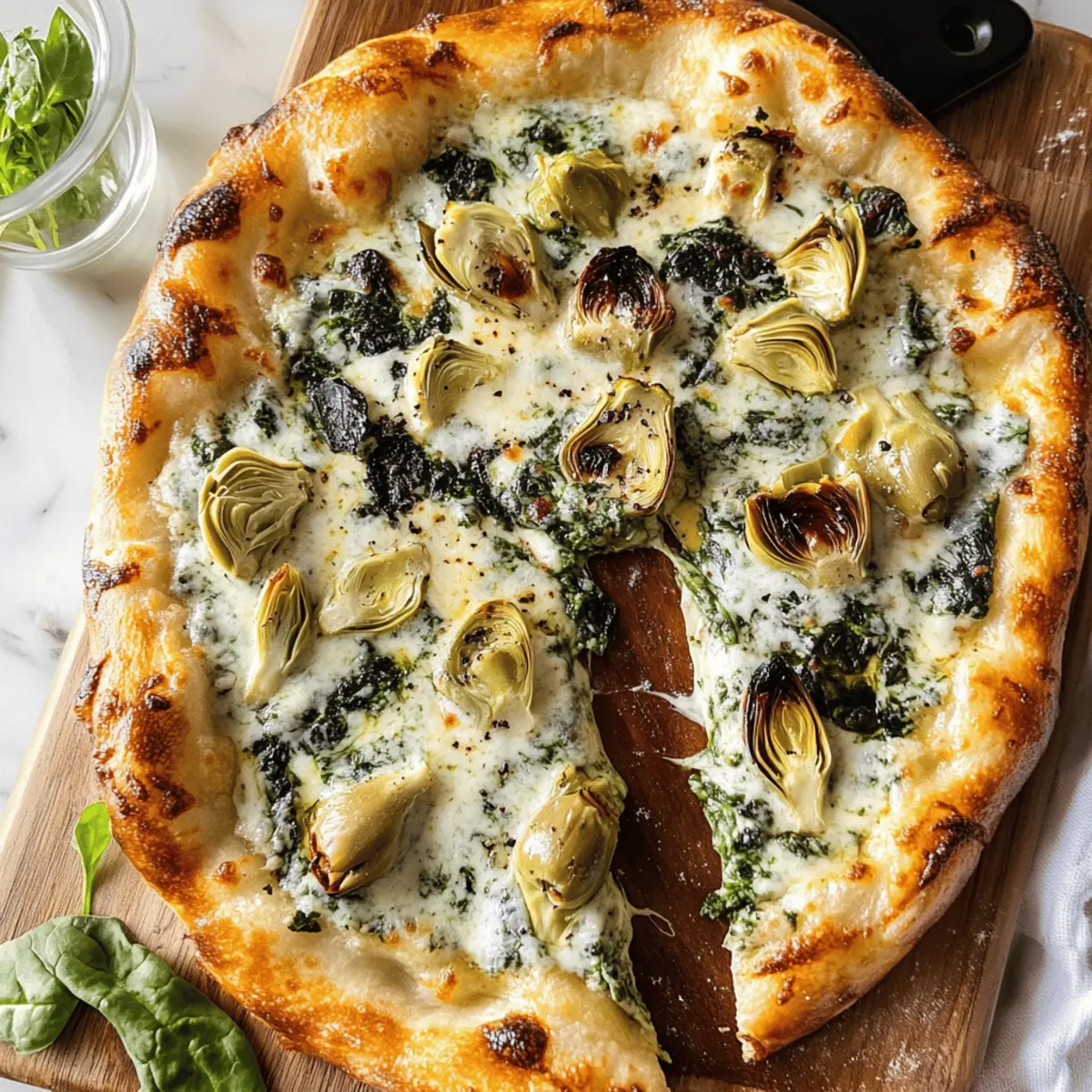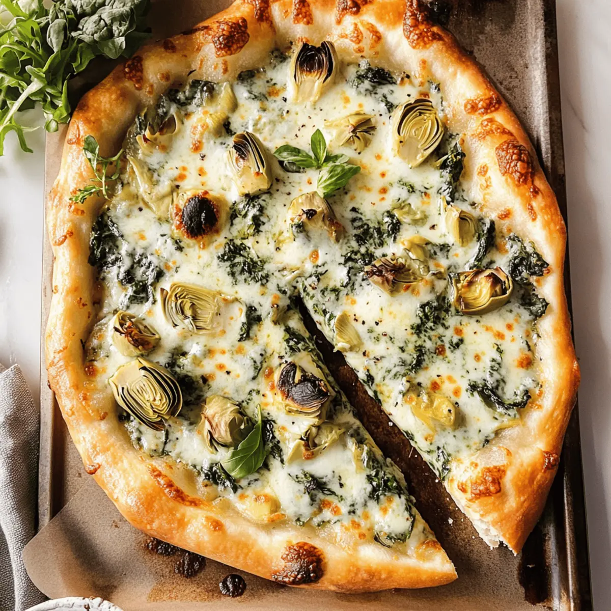 As I stood in my kitchen, the warm scent of toasted garlic wafted through the air, instantly whisking me away to a cozy Italian trattoria. This Creamy Spinach Artichoke Pizza with Parmesan Sauce is my go-to when I crave comfort food that’s both satisfying and a little luxurious. With a rich spinach sauce that marries perfectly with cheesy layers of mozzarella and tangy pecorino, it transforms a simple pizza night into a flavorful feast. Plus, not only is it vegetarian, but it also offers a healthier twist that’s bound to impress your family or friends. Each bite delivers a delightful crispy crust with a creamy topping that’s simply irresistible. Ready to melt some cheese and dive into this culinary adventure? Let’s get started! Why Is This Pizza So Special? Rich, Creamy Delight: The spinach parmesan cream sauce is a game changer, providing a luxurious base that elevates the dish. Savory, Melty Goodness: With layers of gooey mozzarella and salty pecorino, each mouthful is a burst of flavor. Perfect for Sharing: Whether it’s a family dinner or a gathering with friends, this artichoke pizza is sure to impress. Easy to Customize: Feel free to include extra toppings like roasted garlic or sun-dried tomatoes for a personal touch. Ready in about 30 minutes, it’s ideal for busy nights when you want a homemade meal without the hassle! If you’re a fan of effortless yet delicious dishes, you might also enjoy Garlic Parmesan Cheeseburger or Spinach Stuffed Chicken. Artichoke Pizza Ingredients Get ready to create a delicious artichoke pizza with spinach parmesan cream sauce that will have your taste buds dancing! For the Pizza Dough Pizza Dough – A high hydration, homemade recipe ensures a crispy and airy crust. For the Creamy Spinach Sauce Heavy Cream – This rich ingredient adds a luxurious texture; you can substitute with half-and-half for a lighter option. Garlic Clove – Fresh garlic infuses the sauce with aromatic flavor; don’t skimp on this essential! Fresh Baby Spinach – Adds both nutrition and fresh flavor; feel free to use thawed and drained frozen spinach if needed. Cream Cheese – Provides a luscious creaminess; ricotta is a lighter alternative if you prefer. Grated Parmesan Cheese – Enhances umami depth in the sauce; consider using Pecorino Romano for a sharper taste. For the Toppings Mozzarella Cheese – Melts beautifully for that gooey texture; fresh mozzarella offers a gourmet twist. Pecorino Romano – Adds a salty kick; if unavailable, simply increase the amount of parmesan cheese. Marinated Artichoke Hearts – These are the star of your pizza; choose high-quality ones to avoid sogginess and enhance flavor. Now that you have everything ready, you’re just a few steps away from a homemade pizza that’s rich in flavor and comfort! Step‑by‑Step Instructions for artichoke pizza with spinach parmesan cream sauce Step 1: Prepare the Creamy Spinach Sauce In a medium saucepan, combine 1 cup of heavy cream and 2 minced garlic cloves over medium heat. Stir continuously for about 5 minutes until the cream thickens slightly, releasing a fragrant aroma. Add 4 cups of fresh baby spinach and cook until wilted, about 2 minutes. Remove from heat, then mix in 4 ounces of cream cheese and ½ cup of grated Parmesan cheese until smooth, letting it cool while you prep the pizza dough. Step 2: Prepare the Pizza Dough On a lightly floured surface, roll out your homemade pizza dough to your desired thickness, making sure it’s around 12 inches in diameter for a perfect crust. Preheat your oven to 475°F (245°C) and place a pizza stone or baking sheet inside to heat. Aim for a slightly thicker edge for a nice crust, and remember to poke a few holes with a fork to prevent bubbling while baking. Step 3: Assemble the Pizza Once your dough is rolled out, carefully transfer it to a pizza peel or a parchment-lined baking sheet. Spread the creamy spinach parmesan sauce evenly over the dough, leaving a small border for the crust. Sprinkle 1 cup of shredded mozzarella cheese and ¼ cup of grated Pecorino Romano cheese generously over the top, then artfully layer the marinated artichoke hearts for their briny flavor. Step 4: Bake the Pizza Slide the assembled artichoke pizza onto the preheated pizza stone or baking sheet in the oven. Bake for 10-15 minutes until the crust is blistered and golden, and the cheese is bubbling and slightly browned. Keep an eye on it towards the end to avoid burning, and rotate halfway if your oven cooks unevenly for a perfectly baked pizza. Step 5: Serve Remove the pizza from the oven and let it cool for about 5 minutes on a wire rack before slicing. This allows the creamy sauce to set slightly and makes it easier to cut. Carefully slice the pizza into wedges and serve immediately, perhaps with a side salad or garlic bread to complement the rich flavors of the creamy spinach sauce and artichokes. Tips for the Best Artichoke Pizza Quality Ingredients: Use fresh, high-quality marinated artichokes to avoid a bland taste, greatly enhancing your artichoke pizza with spinach parmesan cream sauce. Dough Hydration: Ensure your pizza dough is high hydration for a perfectly airy, crispy crust. Avoid over-kneading, as this can toughen the texture. Monitoring Bake Time: Keep a close watch on your pizza while it bakes. Ovens vary, so rotate or flip halfway through to achieve even browning. Cheese Alternatives: Experiment with different cheese combinations, such as goat cheese or fontina, for unique flavor profiles that elevate your pizza experience. Prepping Spinach: If using frozen spinach, make sure to thaw and drain it well. Excess moisture can lead to a soggy pizza. Topping Variations: Feel free to add extras like roasted garlic or sun-dried tomatoes for an added flavor twist. What to Serve with Artichoke Pizza with Spinach Parmesan Cream Sauce The perfect companion to your rich and creamy pizza can elevate your meal from delightful to unforgettable. Garlic Bread