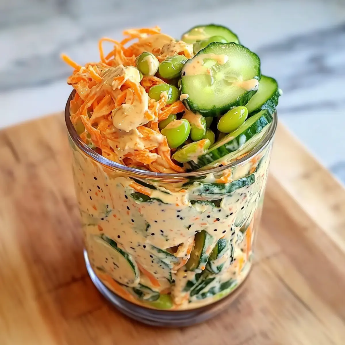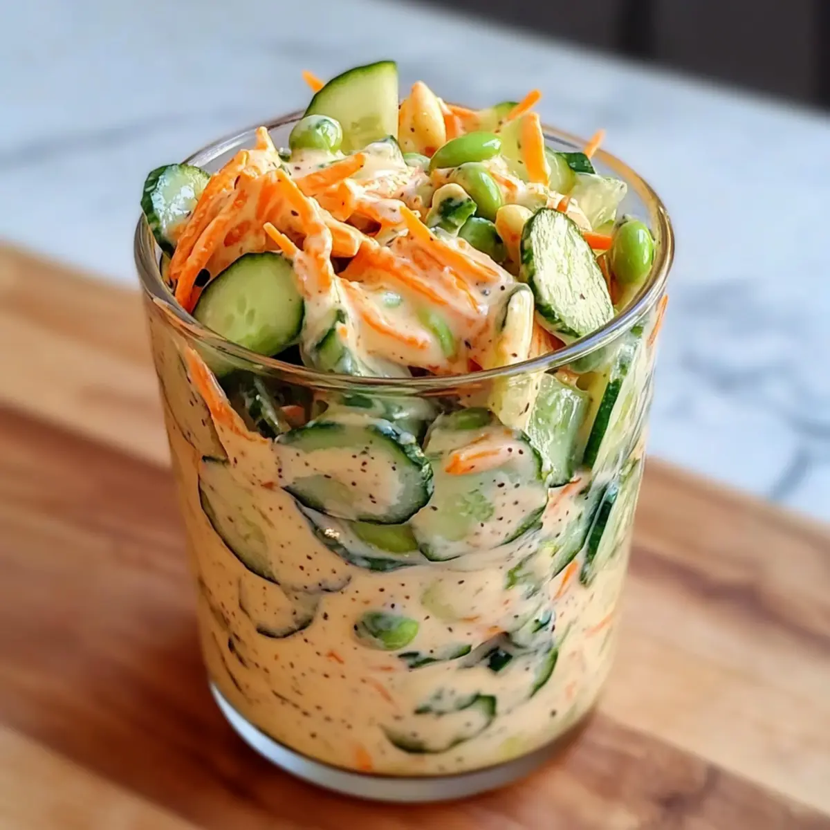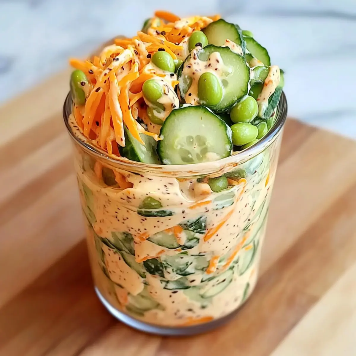 As I rummaged through my fridge, the vibrant colors of crisp cucumbers and fresh veggies practically sang to me, begging to be turned into something extraordinary. Enter the Creamy Asian Cucumber Salad Bowl—a quick, no-cook gem that effortlessly transforms these humble ingredients into a satisfying meal. Perfect for those busy weeknights or lazy weekends, this vegan delight is both refreshing and rich in flavor, making it an ideal choice for light lunches or delightful side dishes. With just a handful of ingredients and minimal prep time, you can whip this up in no time. Plus, the best part? It tastes even better after marinating overnight, allowing the flavors to mingle and dance. Are you ready to elevate your salad game? Why Is This Salad So Irresistible? Simplicity is key: With no-cook prep, this salad saves you time while still delivering a satisfying experience. Flavor Explosion: The rich, creamy dressing combined with fresh veggies creates a delightful contrast that your taste buds will love. Versatility shines through: Whether you’re vegan or not, you can easily swap ingredients to suit your preferences, like replacing tofu with grilled chicken. Meal Prep Friendly: Enjoy leftovers for an easy lunch, as it tastes even better the next day! Finally, crowd-pleasing appeal makes it perfect for gatherings—everyone will be going back for seconds! Pair it with a delicious Pesto Pasta Salad or Grilled Shrimp Bowl for a complete feast. Asian Cucumber Salad Bowl Ingredients • Elevate your meal with these delightful components! For the Salad Cucumber – Freshness and crunch, thinly sliced for a watery base. Onion – Adds sharpness; green onions provide a milder flavor option. Tofu – Offers protein and texture; swap with grilled chicken or tempeh if preferred. Edamame – Nutty flavor and protein source; can be replaced with green peas for variety. Carrot – Provides sweetness and crunch; bell peppers can be used for added color. Spring Onion – Enhances overall taste; feel free to omit for less sharpness. For the Dressing Vegan Cream Cheese – Creates a creamy texture; balance with mayo for an extra richness. Vegan Mayo – Acts as the base of the dressing for excellent creaminess; swap with any preferred vegan spread. Sriracha – Adds a spicy kick; adjust to taste or replace with chili paste for a different heat level. Chili Oil – Infuses the dressing with a nutty flavor; can be omitted if you prefer it milder. Soy Sauce – Introduces a salty umami richness; use tamari for a gluten-free option. For Garnish Sesame Seeds – Adds nuttiness; toast them for enhanced flavor depth. Nori Flakes – Optional ingredient for added umami and oceanic notes. Step‑by‑Step Instructions for Asian Cucumber Salad Bowl Step 1: Prepare Ingredients Begin by washing and thinly slicing 2 large cucumbers and dicing your choice of onion—green onions are milder! Next, shred a medium carrot, and dice 1 block of tofu into small cubes. Finally, if using fresh edamame (about a cup), cook it according to package instructions (usually 5 minutes in boiling water) before cooling it down. Step 2: Layer Vegetables In a large bowl or a jar, start layering your prepared ingredients. Begin with a generous layer of the sliced cucumbers at the bottom to create a watery base. Then, add the diced onion, tofu, edamame, shredded carrot, and sprinkle chopped spring onion on top. This method not only looks appealing but helps to keep your salad crisp and fresh. Step 3: Make Dressing In a mixing bowl, combine ½ cup of vegan cream cheese with ¼ cup of vegan mayo, 2 tablespoons of Sriracha, and 1 tablespoon of chili oil. Add 1 tablespoon of soy sauce to the mixture and whisk everything together until smooth and creamy. This dressing is what brings the Creamy Asian Cucumber Salad Bowl to life with its flavorful richness. Step 4: Assemble Bowl Once the dressing is ready, drizzle it generously over the layered vegetables in your bowl or jar. Toss gently to ensure that each ingredient is coated well with the creamy goodness. Finally, finish by sprinkling sesame seeds and optional nori flakes on top for added flavor and crunch, making your Asian Cucumber Salad Bowl visually delightful. Step 5: Refrigerate Securely screw on the lid if using a jar, or cover the bowl with plastic wrap. Place it in the refrigerator and let it chill for at least 30 minutes. However, for best results and maximum flavor infusion, leave it to marinate overnight. This helps the vibrant flavors meld beautifully, enhancing your delicious vegan salad. Step 6: Serve When ready to eat, give your Asian Cucumber Salad Bowl a good shake to mix the flavors. You can enjoy it right from the jar for a quick lunch or transfer it to a plate for a beautiful presentation. Dive into this refreshing, creamy salad and savor the blend of textures and taste in every bite! How to Store and Freeze Asian Cucumber Salad Bowl Fridge: Store in an airtight container for up to 2 days. This keeps the salad fresh and crunchy while allowing flavors to meld beautifully. Make-Ahead: You can prepare the salad up to a day in advance for optimal taste. Just remember to wait to add the dressing until you’re ready to serve for the best texture. Freezer: Avoid freezing the Asian Cucumber Salad Bowl. Ingredients like cucumbers can become mushy when thawed, ruining the dish’s delightful crunch. Reheating: This salad is best enjoyed cold. If you want to warm it slightly, allow it to come to room temperature, but it’s not necessary and won’t affect the flavor. Make Ahead Options These Creamy Asian Cucumber Salad Bowls are perfect for meal prep, helping you save time during your busy week! You can chop and layer the cucumbers, onions, carrots, tofu, and edamame up to 24 hours in advance, keeping them fresh in the refrigerator. To maintain that satisfying crunch, be sure to keep the dressing separate until just before serving. You can mix together the creamy dressing ingredients an