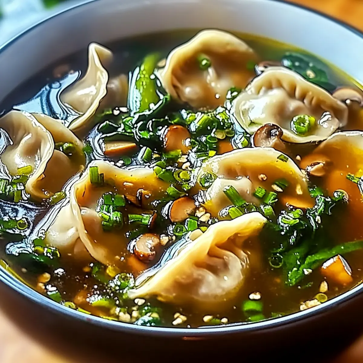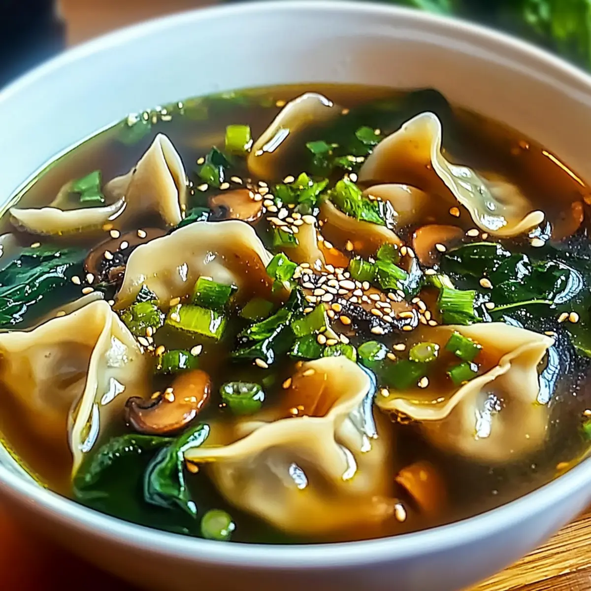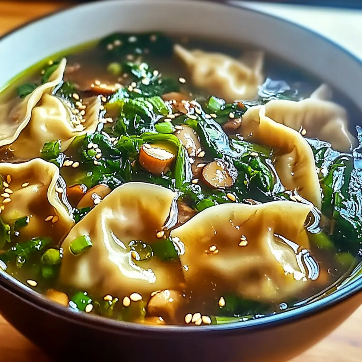 Once the dumplings are cooked, ladle the steaming soup into bowls. Top each serving with chopped green onions and a sprinkle of toasted sesame seeds for extra crunch and flair. Enjoy your delicious Easy Asian Dumpling Potsticker Soup while it’s hot, savoring every comforting spoonful!
