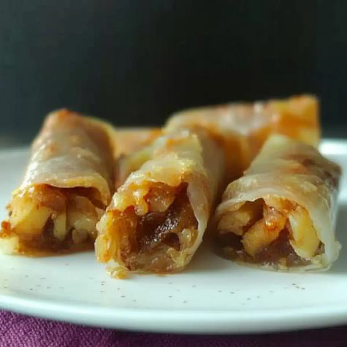 As the warm aroma of cinnamon and apples wafts through my kitchen, I can’t help but feel a surge of nostalgia. Who would have thought that a traditional dessert could take on such a refreshing twist? These 5-Ingredient Gluten-Free & Vegan Baked Apple Pie Rice Paper Rolls are incredibly simple to whip up, making them a perfect solution for those busy weeknights. Not only do they offer a satisfyingly crispy texture that rivals any classic pastry, but they’re also accommodating for various dietary preferences, inviting everyone to indulge without guilt. You’ll find that they are a delightful and healthier spin on the beloved apple pie! Want to discover how these easy rolls can transform your dessert game? Let’s dive into the recipe! Why Are These Rolls So Delicious? Unique Twist: These Baked Apple Pie Rice Paper Rolls reimagine a classic dessert, elevating the humble apple pie into a fun and crispy treat. Health-Conscious Indulgence: Perfect for gluten-free and vegan diets, they let everyone enjoy dessert without compromising their choices. Fast and Easy: With just five ingredients and straightforward steps, they’re a breeze to make, ideal for busy evenings. Crowd-Pleasing Appeal: Serve them warm for gatherings or family dinners; they’re sure to impress with their delightful crunch and sweet aroma. Versatile Options: Mix in different fruits or spices to customize each batch, keeping your dessert game exciting and fresh! Baked Apple Pie Rice Paper Rolls Ingredients For the Filling • Apples – Main filling, providing natural sweetness and moisture. Use any variety you have on hand, such as Gala or Granny Smith. • Brown Sugar – Sweetener that complements the apples’ tartness. Substitute with coconut sugar for a lower glycemic option or omit for a sugar-free version. • Cinnamon – Adds warmth and enhances the apple flavor. Can be replaced with nutmeg for a different spice profile. For the Wrap • Rice Paper – Wrap for the filling, creating a crispy exterior when baked. Make sure to not over-soak to maintain a bit of stiffness for rolling. • Cooking Oil – Helps to crisp the rolls and prevent sticking. Can use melted vegan butter or coconut oil as alternatives. Step‑by‑Step Instructions for Baked Apple Pie Rice Paper Rolls Step 1: Preheat the Oven Start by preheating your oven to 450°F (232°C). This high temperature will help achieve that golden, crispy exterior for your Baked Apple Pie Rice Paper Rolls. While the oven heats up, gather your baking sheet and line it with parchment paper or lightly grease it to prevent sticking. Step 2: Prepare the Apple Filling Peel and slice your apples into thin pieces, then combine them in a mixing bowl with brown sugar and cinnamon. Toss everything together until the apples are well-coated and the scent of cinnamon fills your kitchen. Set this sweet mixture aside while you prepare the rice paper. Step 3: Soak the Rice Paper Fill a large bowl with warm water and gently dip each rice paper sheet into the water. Soak it for about 10-15 seconds until it’s soft yet retains some structure for easy handling. This crucial step ensures that your rice paper is pliable enough to roll without tearing. Step 4: Assemble the Rolls Place a soaked rice paper sheet on a clean work surface and spoon 1-2 tablespoons of the apple mixture into the center. Carefully fold the bottom edge over the filling, tuck in the sides like an envelope, and roll it up tightly, sealing the top. Repeat this assembly until all your delicious filling is used. Step 5: Arrange and Brush the Rolls Arrange the rolled rice paper bundles on the prepared baking sheet, leaving a bit of space between each one. Brush the outer surface of each roll with cooking oil; this will promote browning and crispiness while baking. The oil provides a beautiful, appetizing shine to your Baked Apple Pie Rice Paper Rolls. Step 6: Bake the Rolls Transfer the baking sheet to your preheated oven and bake for 25-30 minutes. Keep an eye on them, turning occasionally for even browning. You want the rolls to achieve a lovely golden color and crispy texture. The anticipation of that apple goodness will fill your kitchen as they bake! Step 7: Cool and Serve Once baked to perfection, remove the Baked Apple Pie Rice Paper Rolls from the oven and allow them to cool for a few minutes. This cooling time helps the rolls firm up slightly, enhancing their crunch. Serve them warm, and consider pairing them with a scoop of dairy-free ice cream or a drizzle of caramel for an extra treat! Expert Tips for Baked Apple Pie Rice Paper Rolls Soaking Control: Avoid over-soaking the rice paper; it should remain slightly stiff to make rolling easier and prevent tearing. Sealing Success: Use a damp paper towel around the edges of the rice paper for a secure seal if needed, ensuring filling stays intact while baking. Even Crispness: Rotate the rolls halfway through baking to achieve uniform crispness, avoiding burnt edges. Baking Sheet Space: Do not overcrowd the baking sheet; this allows hot air to circulate, resulting in perfectly baked Baked Apple Pie Rice Paper Rolls. Fruit Flexibility: Experiment with various fruits in the filling for new flavor combinations—pears or mixed berries can elevate your dessert game! How to Store and Freeze Baked Apple Pie Rice Paper Rolls Fridge: Store the rolls in an airtight container for up to 2 days. This keeps them fresh while maintaining their delicious flavor. Freezer: For longer storage, freeze the rice paper rolls before baking. Place them on a baking sheet to freeze individually, then transfer to a freezer bag for up to 2 months. Reheating: To restore crispness after refrigeration, reheat the rolls in the oven at 350°F (175°C) for about 5-10 minutes. This step ensures your Baked Apple Pie Rice Paper Rolls remain enjoyable even after storage! What to Serve with Baked Apple Pie Rice Paper Rolls Create a memorable dining experience by pairing these delightful rolls with co