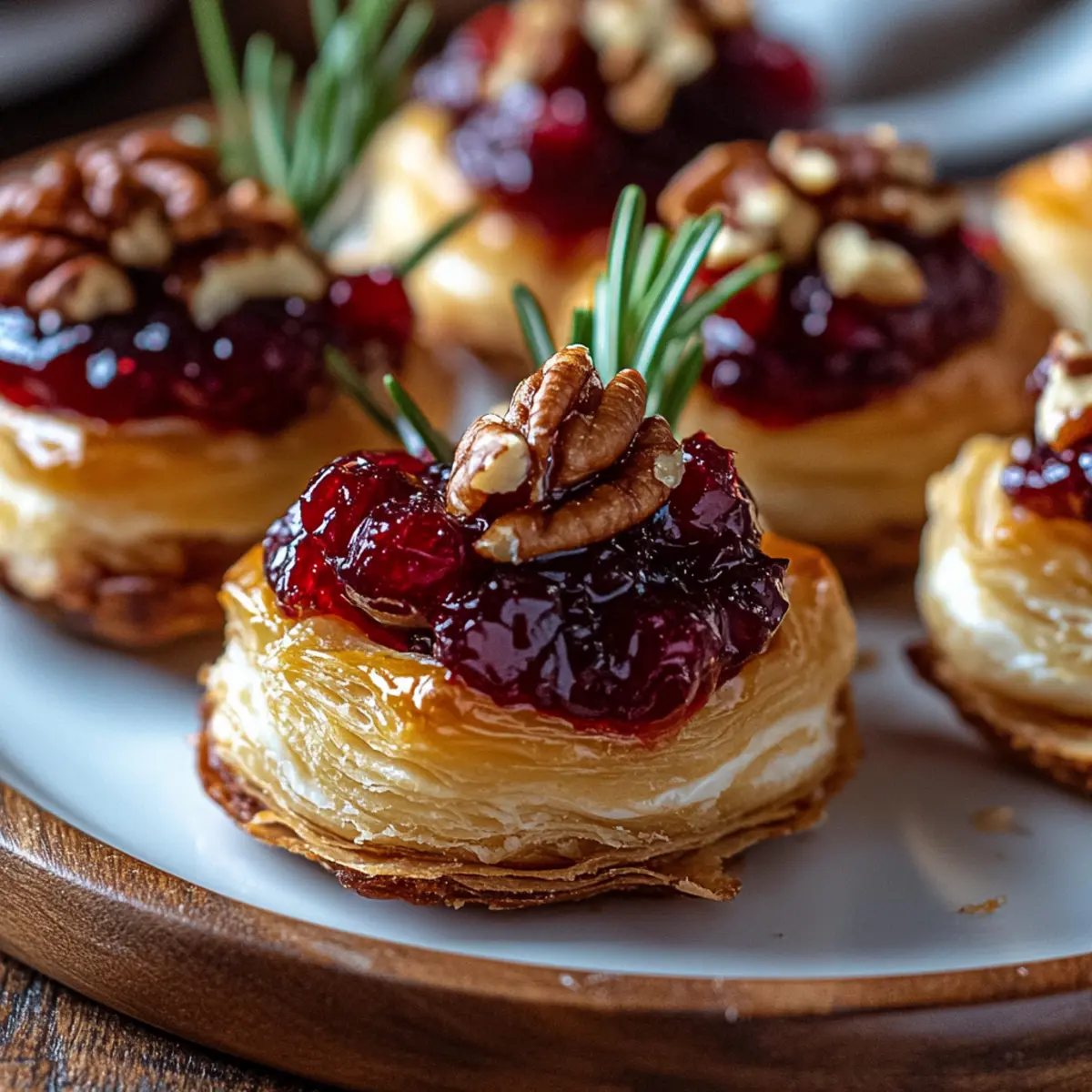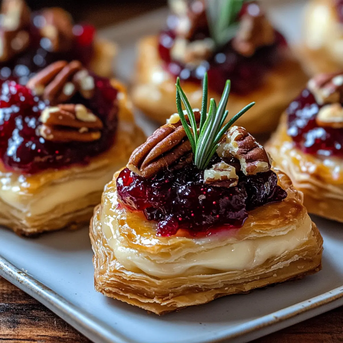 A warm, buttery aroma wafts through my kitchen as I unwrap a sheet of flaky puff pastry—the magic is about to begin. Baked Cranberry Brie Bites are not just an appetizer; they are a celebration of simple ingredients coming together to create something extraordinary. With just five components, these bites are perfect for busy holiday gatherings or cozy family dinners. The creamy brie combined with tangy cranberry sauce wrapped in irresistible puff pastry makes for an elegant yet incredibly easy treat. Plus, they’ll impress your guests without keeping you chained to the kitchen! Curious how to whip up this stunning crowd-pleaser? Let’s dive into the process of bringing these delightful bites to life! Why Are Baked Cranberry Brie Bites a Must-Try? Simplicity at Its Best: With just five ingredients, these bites are a breeze to make, allowing you to savor your time with guests instead of being stuck in the kitchen. Impressive Flavor Profile: The combination of creamy brie and sweet-tangy cranberry sauce delivers a sophisticated flavor that will wow even the pickiest eaters. Crowd-Pleasing Appeal: Perfect for any gathering, these bites are sure to be the star of the appetizer table, much like our Oven Baked Chicken Tenders. Versatile Ingredients: Feel free to get creative! Swap cranberry sauce for fig jam or try different cheeses like goat cheese for a unique twist. Perfect for Any Occasion: Whether it’s a holiday feast or a casual get-together, these Baked Cranberry Brie Bites are the ideal finger food to elevate your celebration. Baked Cranberry Brie Bites Ingredients Here’s everything you need to create these delightful bites! For the Pastry Puff Pastry – This flaky layer serves as the perfect base for your Baked Cranberry Brie Bites; choose store-bought for convenience or make your own if you’re feeling adventurous. For the Filling Brie Cheese – The star of the show, brie melts beautifully, creating a creamy goodness that pairs perfectly with the cranberry. You can substitute with soft cheese if brie isn’t available, but flavors will differ. Cranberry Sauce – Adds a delightful tangy sweetness; both store-bought and homemade versions work like a charm. Try adding a hint of orange zest for an extra zing! Optional Add-Ons Candied Pecans – These add a delightful crunch and extra sweetness! Feel free to omit or swap them for your favorite nuts based on your preference. Fresh Rosemary Sprigs – Garnish with rosemary for a pop of color and aromatic touch; alternatively, other herbs like thyme can also brighten up the dish. Step‑by‑Step Instructions for Baked Cranberry Brie Bites Step 1: Preheat the Oven Begin your delicious journey by preheating the oven to 375°F (190°C). While it’s heating up, grab your mini muffin tin and lightly grease each cup with cooking spray or butter. This will help your Baked Cranberry Brie Bites release easily once they’re golden and bubbly. Step 2: Prepare the Puff Pastry Take your thawed puff pastry and roll it out on a lightly floured surface. Cut the pastry into 12 equal squares, ensuring they are large enough to fill the muffin tins. Gently press each square into the greased muffin cups, making sure they cover the bottom and sides to hold in all the gooey goodness. Step 3: Add the Brie Now it’s time for the star ingredient! Place a cube of creamy brie cheese into each puff pastry cup. The brie should fit snugly, allowing it to melt beautifully as the bites bake. This layer sets the foundation for the delightful flavor combination that will make your Baked Cranberry Brie Bites irresistible. Step 4: Top with Cranberry Sauce Spoon a generous dollop of cranberry sauce over the brie in each cup, allowing it to seep into the melted cheese. This tangy layer complements the creamy brie perfectly and adds a splash of color. If you’re using candied pecans, sprinkle a few over the sauce for an added crunch and a hint of sweetness. Step 5: Bake the Bites Place the filled muffin tin in the preheated oven and bake for 15–18 minutes. Keep a close eye on them; you’ll know they’re ready when the pastry is golden brown and the cheese is bubbly. The irresistible aroma will fill your kitchen as they transform into beautiful Baked Cranberry Brie Bites. Step 6: Cool and Garnish Once they’re baked to perfection, remove the muffin tin from the oven and allow the bites to cool for about 5 minutes. This cooling time helps them set slightly, making them easier to remove. If desired, garnish your Baked Cranberry Brie Bites with fresh rosemary sprigs for a touch of festive flair before serving. Variations & Substitutions for Baked Cranberry Brie Bites Get your creative juices flowing and adapt these bites to your taste and pantry! Cheese Twist: Swap brie for goat cheese or cream cheese for a unique flavor experience. Each cheese brings its own delightful creaminess that can change the entire profile of this dish. Fruit Fusion: Replace cranberry sauce with fig jam or apricot preserves for unexpected sweetness. This change not only adds sweetness but a hint of sophistication to your bites. Nutty Variation: Use walnuts or almonds instead of candied pecans. This can offer a different crunch and flavor summary that still packs a delightful punch. Herbal Garnish: Try substituting fresh rosemary with thyme or even chives for a fragrant and flavorful touch that complements the other ingredients beautifully. Veggie Power: Add a layer of sautéed spinach or caramelized onions before the brie for a savory veggie twist that elevates the overall taste. Spicy Kick: If you like a little heat, add a pinch of crushed red pepper flakes on top of the cranberry sauce. This will add a fiery kick that pairs surprisingly well with the sweet and savory flavors. Mini Tart Variation: For an even fancier presentation, consider using phyllo dough cups instead of puff pastry. They will provide a delightful crunch and a slightly different texture. No matter how you choose to pe