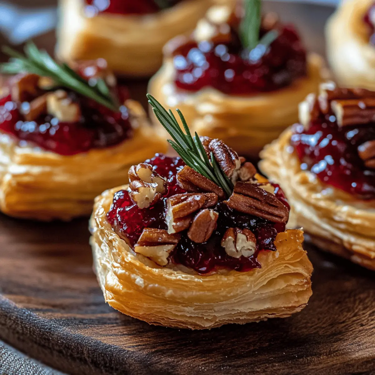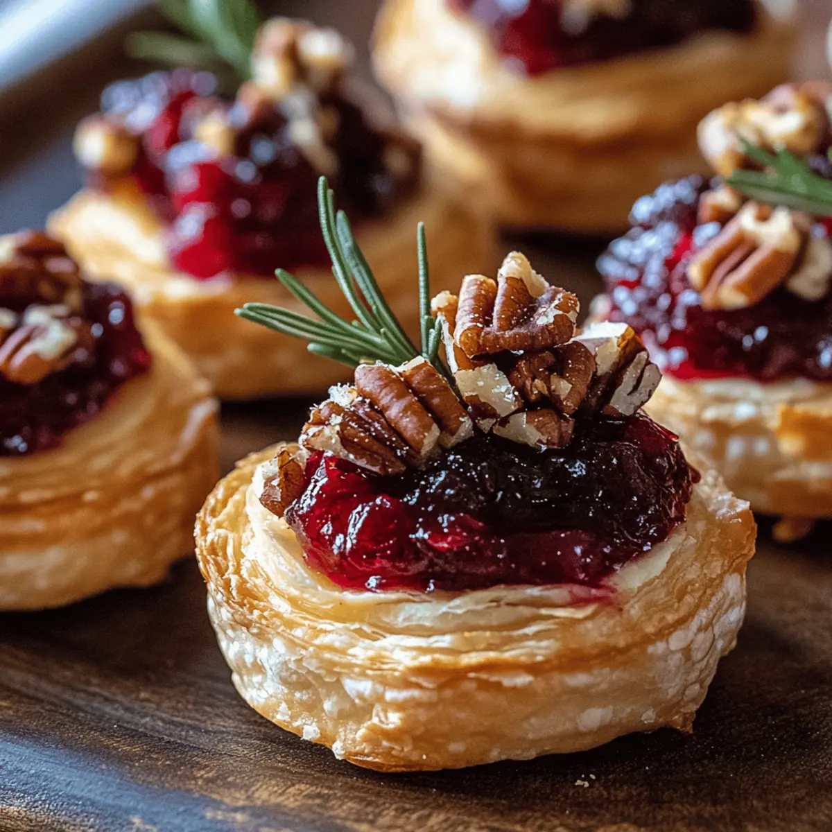 As the holiday season approaches, my kitchen transforms into a bustling hub of joyful anticipation. Discovering the delight of Baked Cranberry Brie Bites has turned into one of my favorite culinary treasures, bringing warmth and flavor to festive gatherings. This simple five-ingredient recipe combines flaky puff pastry, creamy brie, and tangy cranberry sauce—perfect for impressing guests without the fuss of complicated preparations. With just 10 minutes of prep time, you can create these poppable delights that are as lovely to present as they are to eat. Not only do they offer a sweet-and-savory experience, but they’re also a crowd-pleaser that’ll have everyone coming back for more. Ready to elevate your appetizer game this holiday season? Let’s dive into the magic of these irresistible bites! Why Are Baked Cranberry Brie Bites a Must-Try? Simplicity: With only five ingredients, this recipe is a breeze to make, perfect for busy holiday hosts. Decadent Flavor: The luscious combination of soft brie and tart cranberry sauce is a symphony of sweet and savory that will tantalize your taste buds. Versatile Options: Feel free to customize these bites by adding candied pecans for crunch or experimenting with different herbs like rosemary—just like in my Baked Lemon Butter Chicken. Time-Saving: Prep these bites in just 10 minutes and pop them in the oven, allowing you to focus on other holiday dishes or entertain guests without stress. Crowd-Pleaser: These delightful morsels will disappear quickly at any gathering, making them a surefire hit among family and friends. Add them to your holiday spread alongside options like Oven Baked Chicken and experience the joy they bring! Baked Cranberry Brie Bites Ingredients • The star of your holiday appetizer! For the Bites • Puff Pastry – Provides a flaky texture that perfectly cradles the delicious fillings; ensure it’s thawed and rolled out for best results. • Brie Cheese – Offers a creamy, rich flavor; cut into 12 cubes, leaving the rind on for simpler prep. • Cranberry Sauce – Adds a delightful tang and sweetness; you can use store-bought or whip up a homemade version. Optional Add-Ons • Candied Pecans – Introduces a lovely crunch and additional flavor; feel free to substitute with walnuts or leave them out entirely. • Fresh Rosemary Sprigs – Brings a festive touch for garnish; adds a beautiful aroma and enhances the presentation of your Baked Cranberry Brie Bites. Step‑by‑Step Instructions for Baked Cranberry Brie Bites Step 1: Preheat the Oven Begin by preheating your oven to 375°F (190°C). While the oven is heating, prepare a mini muffin tin by lightly greasing each cup with cooking spray or butter. This will ensure your Baked Cranberry Brie Bites release easily after baking and attain a lovely, golden-brown finish. Step 2: Prepare the Puff Pastry Roll out the thawed puff pastry on a lightly floured surface until it’s about 1/8 inch thick. Use a sharp knife or pizza cutter to cut the pastry into 12 equal squares. Gently press each square into the greased muffin cups, allowing the edges to rise slightly above the rim, creating little pastry cups ready to hold all the delicious fillings. Step 3: Add the Brie Cheese Take your brie cheese and cut it into 12 equal cubes. Place one cube of brie into each pastry cup, ensuring the cheese is centered nicely in each bite. The creamy brie will melt beautifully as the Baked Cranberry Brie Bites cook, enveloping the bites in rich flavor. Step 4: Spoon in the Cranberry Sauce Next, add a generous spoonful of cranberry sauce on top of the brie in each pastry cup. The sweet and tangy cranberry sauce perfectly complements the creamy cheese and flaky pastry, making each bite an explosion of festive flavor. Avoid overfilling, as this could cause the sauce to spill out while baking. Step 5: Optional Toppings If you’re using candied pecans, sprinkle a few on top of the cranberry layer in each cup for an added crunch and flavor depth. Alternatively, feel free to skip this step or substitute with walnuts if you prefer. This extra step elevates your Baked Cranberry Brie Bites to even greater heights of deliciousness. Step 6: Bake the Bites Place the muffin tin in your preheated oven and bake for 15-18 minutes. Keep a close eye on them; you’re looking for a delightful golden-brown color and bubbling cheese. The puff pastry should be puffy and flaky, creating an inviting aroma that fills your kitchen during the baking process. Step 7: Cool and Garnish After baking, remove the tin from the oven and allow the Baked Cranberry Brie Bites to cool for about 5 minutes. This will help them set slightly and be easier to handle. For that final touch, garnish each bite with a fresh rosemary sprig before serving, adding a festive and aromatic flair to your presentation. Make Ahead Options These delightful Baked Cranberry Brie Bites are perfect for meal prep enthusiasts! You can prepare the pastry cups with brie and cranberry sauce up to 24 hours in advance. Simply follow steps 1 through 4, then cover the muffin tin with plastic wrap and refrigerate. This keeps the pastry fresh and prevents sogginess. When you’re ready to serve, preheat your oven and bake directly from the fridge, adding a couple of extra minutes to the cooking time if needed. This approach not only saves you time on busy holiday evenings but ensures that each bite is just as delicious and flaky, making your gatherings stress-free and enjoyable! Baked Cranberry Brie Bites Variations Feel free to get creative and customize your Baked Cranberry Brie Bites with these tasty twists! Zesty Orange: Add a touch of orange zest to the cranberry sauce for a bright, citrusy flavor. This little twist elevates the bites and pairs beautifully with the creamy brie. Cheese Change-Up: Try substituting brie with goat cheese or cream cheese for a different creamy flavor. Goat cheese adds a delightful tanginess, while cream cheese offers a smoot