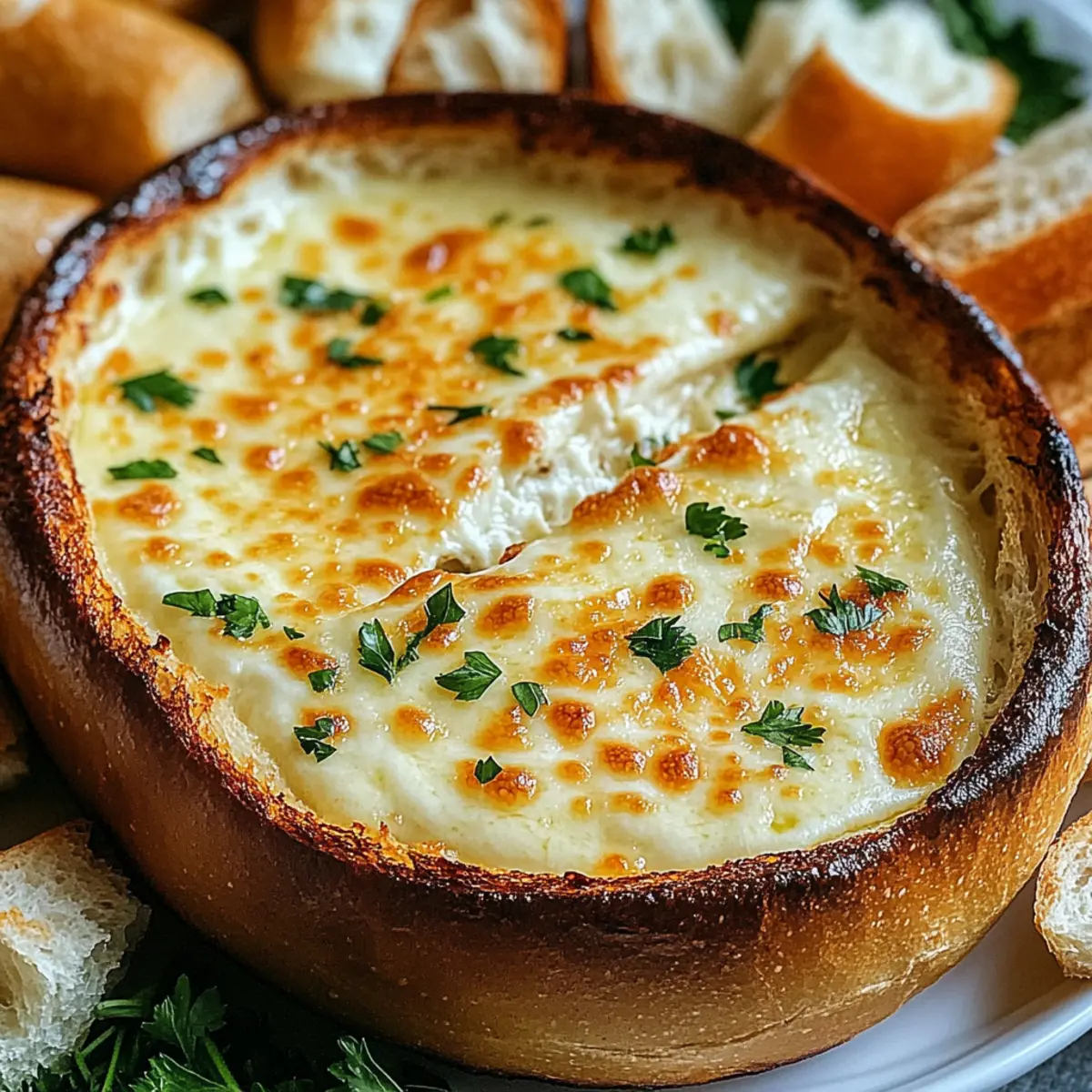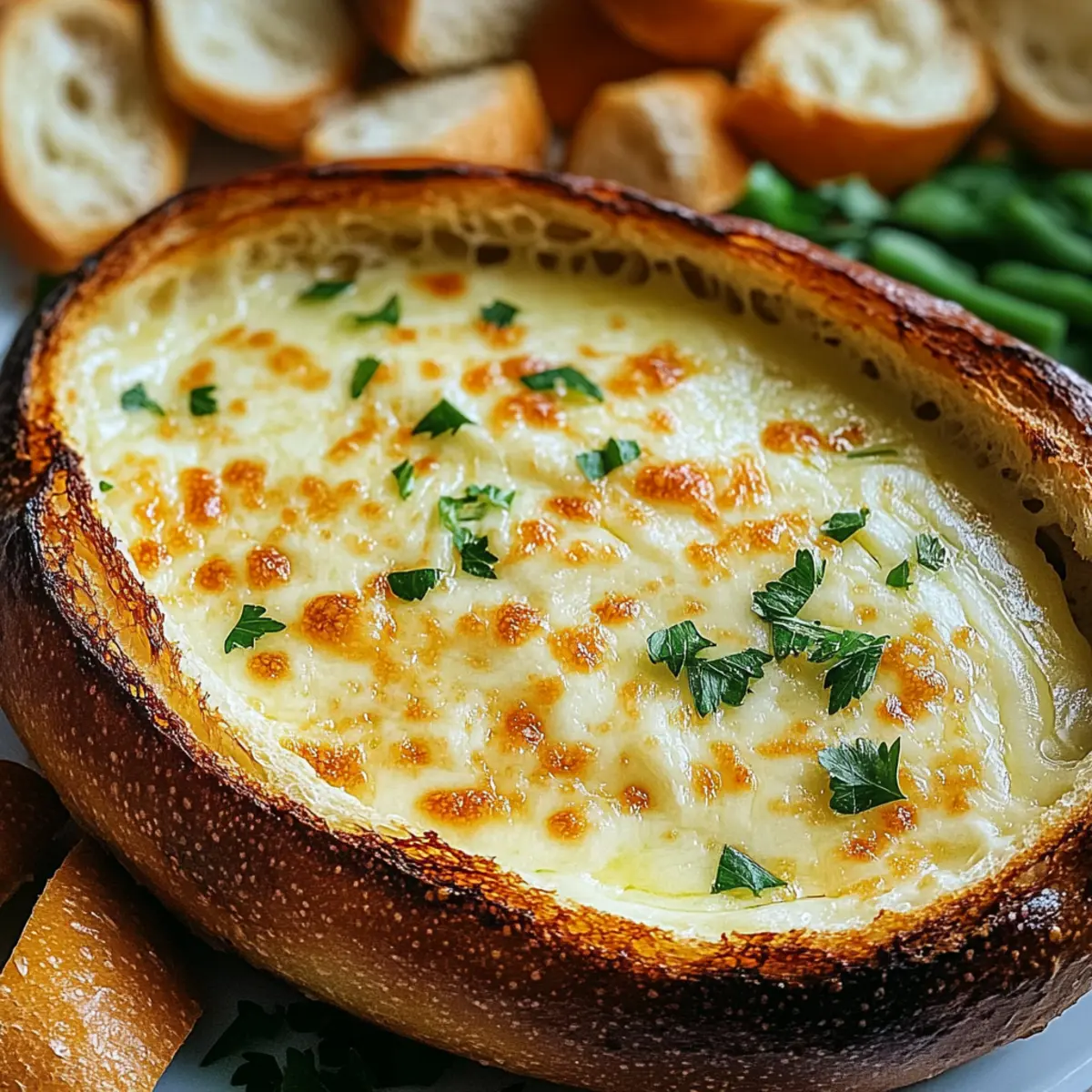 As I stood in my kitchen, the aroma of garlic began to weave its way through the air, instantly transporting me to my favorite Italian bistro. This is how my journey with the Ultimate Baked Garlic Bread Dip began—where creamy meets cheesy in a deliciously indulgent appetizer. Perfect for gatherings or cozy nights, this dip is a true crowd-pleaser that can easily be customized to suit your tastes. With its rich texture and inviting warmth, it’s a dish that not only fills the belly but also brings people together around the table. Whether you’re dipping crunchy veggies or crispy bread, you’ll find this flavorful creation a delightful upgrade from those usual fast-food snacks. Curious to learn how to whip up this cheesy goodness? Let’s dive in! Why is this dip unforgettable? Creamy, Cheesy Goodness: Dive into a blend of smooth cream cheese and rich mayonnaise that creates a luxuriously creamy dip perfect for any occasion. Customizable Delight: With options to swap cheeses or add veggies, you can tailor this dip to fit anyone’s palate. 🥕 Crowd-Pleaser: Whether at a party or family gathering, this dip never fails to impress and is always the first to disappear! Simplicity: Quick to prepare, this Baked Garlic Bread Dip takes minimal effort for maximum flavor, so you can spend more time enjoying with friends. Versatile dippers: Serve alongside a variety of options like crunchy veggies, crispy bread, or even chips, allowing everyone to find their favorite way to indulge. This is your ticket to turning bland snacks into something truly special! Baked Garlic Bread Dip Ingredients For the Dip Large French baguette – Forms the base of the dip, adding a delightful crunch. Cream cheese (1 cup, softened) – Gives the dip its rich and smooth texture; for a lighter option, consider Greek yogurt. Sour cream (1/2 cup) – Adds tanginess to balance the cream cheese; plain yogurt is a good substitute. Mayonnaise (1/2 cup) – Enhances creaminess and richness; try avocado for a healthier twist. Shredded mozzarella cheese (1 cup) – Provides that signature gooey stretch; substitute with cheddar or any melty cheese if desired. Grated Parmesan cheese (1 cup) – Contributes savory flavor and depth; freshly grated is preferred for the best taste. Garlic (4 cloves, minced) – Imparts the dip’s signature garlic flavor; using fresh garlic enhances the overall taste. Fresh parsley (1 tablespoon, chopped) – Adds color and freshness; consider basil or chives for a different herbal note. Dried oregano (1 teaspoon) – Enhances the savory profile; fresh oregano can provide an even bolder flavor. Red pepper flakes (1/2 teaspoon, optional) – Introduces a spicy kick; adjust based on your personal heat preference. Salt and black pepper – Simple yet effective seasonings to enhance overall flavors. Now you’re ready to create this Baked Garlic Bread Dip Flavorful masterpiece that will elevate any gathering! Step‑by‑Step Instructions for Baked Garlic Bread Dip Flavorful Step 1: Preheat your oven Begin by preheating your oven to 375°F (190°C). This ensures that when you’re ready to bake your Baked Garlic Bread Dip, it will reach the perfect temperature for a golden, bubbly finish. While the oven warms up, you can focus on preparing the baguette and dip mixture. Step 2: Prepare the baguette Slice the large French baguette in half lengthwise, revealing its soft interior. Carefully scoop out some of the soft bread from the inside, creating a well for your creamy dip. Reserve the scooped-out bread pieces, as they will serve as delightful dippers later on. Step 3: Mix the dip ingredients In a mixing bowl, combine 1 cup of softened cream cheese, ½ cup of sour cream, and ½ cup of mayonnaise; mix them together until you achieve a smooth and creamy consistency. This base is essential for your Baked Garlic Bread Dip Flavorful, providing that rich and indulgent texture everyone loves. Step 4: Add flavor to the mixture Stir in the minced garlic, 1 cup of shredded mozzarella cheese, 1 cup of grated Parmesan cheese, and 1 tablespoon of chopped fresh parsley into the cream mixture. Don’t forget to sprinkle in 1 teaspoon of dried oregano and ½ teaspoon of optional red pepper flakes. Mix until all ingredients are well combined and season with salt and black pepper to taste. Step 5: Fill the baguette halves Carefully fill the hollowed-out baguette halves with the creamy dip mixture, pressing down to pack it tightly. Ensure the filling is heaped generously, as this will create a beautifully thick dip that oozes with cheesiness once baked. Step 6: Bake until golden Place the filled baguette halves onto a lined baking sheet, making sure they are secure and won’t tip over. Bake in the preheated oven for 25-30 minutes, or until the dip is golden brown and bubbly. You can visually check for doneness—the dip should be softly bubbling, with a slight crispy edge. Step 7: Cool and serve Once baked, remove the Baked Garlic Bread Dip from the oven and allow it to cool for a few minutes. As it cools, slice the baguette into bite-sized pieces, ensuring everyone can enjoy this cheesy delight easily. Serve warm alongside your reserved bread pieces and crunchy vegetable sticks for dipping! What to Serve with Ultimate Baked Garlic Bread Dip? Warm, inviting, and full of flavor, this dip can transform any gathering into a delightful culinary experience. Crunchy Vegetable Sticks: Fresh carrots, bell peppers, and cucumbers add a crisp contrast, making each bite refreshing and light. Tortilla Chips: These offer an enjoyable crunch and delicious flavor that perfectly complements the rich, cheesy dip. Garlic Bread Slices: For a double dose of garlic goodness, serve alongside extra garlic bread for those who can’t get enough of that classic flavor! Crackers: Choose a variety of textures, from buttery to whole grain, to provide your guests with a selection they can enjoy alongside that creamy dip. Red Wine: A glass of red pai