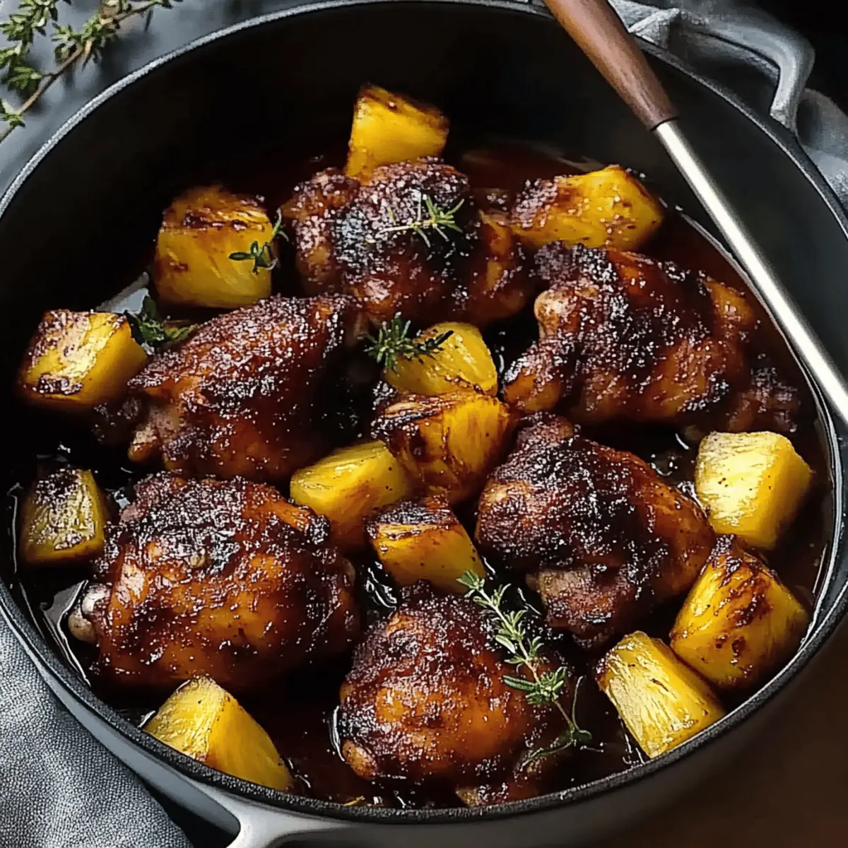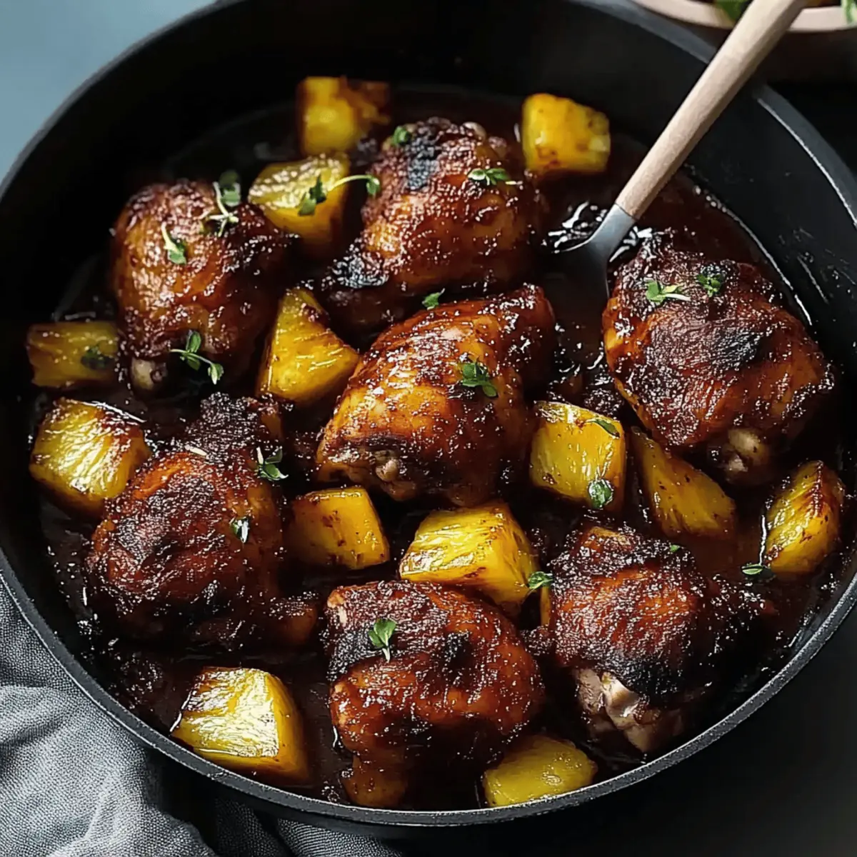 As I stood in my kitchen, the enticing scent of marinated chicken wafting through the air instantly transported me to the sun-drenched shores of Jamaica. This Baked Jamaican Pineapple Jerk Chicken is a crowd-pleaser that offers a delightful escape from mundane weeknight dinners. The combination of juicy pineapple and spicy jerk seasoning creates an explosion of tropical flavors that will captivate your taste buds! With its easy preparation and gluten-free ingredients, this dish is not only perfect for busy evenings but also a fantastic way to bring your family or friends together. So, whether you’re looking to impress your loved ones or simply treat yourself to something delicious, you’ll want to keep scrolling for the step-by-step guide to making this flavorful family meal! Why is This Chicken Recipe a Must-Try? Tropical Escape: Each bite brings you the essence of Jamaica with a perfect dance between sweet pineapple and spicy jerk seasoning. Effortless Preparation: This recipe shines with its simplicity, making it a breeze for any home cook! Versatile Serving Options: Pair it with options like steamed rice or quinoa to soak up every last drop of flavorful juices. Family Favorite: This dish is bound to impress! Its vibrant flavors are perfect for gatherings, ensuring smiles around the table. Healthy Twist: Using lean chicken thighs keeps meals guilt-free, while the gluten-free ingredients cater to dietary needs. Experience a delightful Caribbean adventure right in your home! Baked Jamaican Pineapple Jerk Chicken Ingredients For the Chicken Chicken Thighs – Skinless cuts ensure a leaner, protein-packed dish that absorbs the marinade beautifully. Garlic – Fresh garlic is best for that aromatic kick; feel free to substitute with garlic powder if you’re in a hurry. Medium Onion – Adds a touch of sweetness and depth when caramelized during cooking. For the Marinade Jerk Seasoning – This essential blend of spices provides the authentic, zesty flavor you crave; use store-bought or homemade for a personal touch. Soy Sauce – Enhances umami flavor and tenderizes the chicken; swap it for tamari to make the recipe gluten-free. Honey – It brings out natural sweetness and aids in caramelization; maple syrup is a great alternative if preferred. Olive Oil – Perfect for marinating and roasting; consider avocado oil as a delicious substitute. For the Brightness Juice of 1 Lime – This adds a bright, zesty flavor while helping to tenderize the chicken; lemon juice can work as a substitute in a pinch. Salt and Pepper – Essential for enhancing the overall flavor; adjust to taste based on your preferences. For the Sweetness and Garnish Pineapple Chunks – Adds tropical sweetness and juiciness; fresh is preferred, but canned can be used if you need a quick fix. Fresh Cilantro or Parsley – Optional for a fresh garnish that adds a pop of color and flavor to your dish. With these simple ingredients laid out for your Baked Jamaican Pineapple Jerk Chicken, you’re set to take your taste buds on a tropical adventure without leaving the comfort of your home! Step‑by‑Step Instructions for Baked Jamaican Pineapple Jerk Chicken Step 1: Marinate Chicken In a large mixing bowl, combine jerk seasoning, soy sauce, honey, olive oil, lime juice, minced garlic, and chopped onion. Whisk until well blended, creating a fragrant marinade. Add your skinless chicken thighs, ensuring they are generously coated. Cover the bowl with plastic wrap and let it marinate in the refrigerator for at least 15 minutes, or preferably overnight for deeper flavor. Step 2: Preheat Oven Preheat your oven to 400°F (200°C) while the chicken marinates. This temperature ensures even cooking and helps develop a beautiful caramelization on your Baked Jamaican Pineapple Jerk Chicken. Set out a 9×13 inch baking dish to prepare for the next step, making sure it is clean and ready for the delicious chicken. Step 3: Arrange Chicken Once marinated, take the chicken thighs and arrange them in the prepared baking dish, ensuring they are evenly spaced. Pour the remaining marinade over the chicken, allowing it to soak into the meat. At this point, the enticing aroma of the jerk seasoning should fill your kitchen, promising a delightful meal ahead. Step 4: Add Pineapple Distribute the pineapple chunks around the chicken in the baking dish. This not only adds a tropical sweetness to your Baked Jamaican Pineapple Jerk Chicken but also helps to keep the chicken moist while baking. Make sure the pineapple is well mixed into the dish, allowing the flavors to intermingle beautifully. Step 5: Bake Chicken Cover the baking dish with aluminum foil, sealing in moisture, and place it in the preheated oven. Bake for 25 minutes. After this time, carefully remove the foil and continue baking for an additional 20-25 minutes, until the chicken reaches an internal temperature of at least 165°F (75°C) and is golden brown. Step 6: Broil (Optional) If you desire a crispy skin, switch your oven to broil and cook the chicken for an additional 2-3 minutes, watching closely to ensure it doesn’t burn. This finishing touch adds a delightful crunch to the tender meat, enhancing the overall texture of the Baked Jamaican Pineapple Jerk Chicken. Step 7: Garnish and Serve Once the chicken is cooked through, remove it from the oven and let it rest for about 5 minutes. This allows the juices to redistribute for maximum flavor. Garnish with fresh cilantro or parsley before serving, adding a pop of color and a burst of freshness to your plate. Enjoy this juicy, flavor-packed chicken alongside your favorite sides! How to Store and Freeze Baked Jamaican Pineapple Jerk Chicken Fridge: Store leftovers in an airtight container for up to 3 days to keep the chicken tender and flavorful. Freezer: If you want to freeze, place the cooled chicken in a freezer-safe container or bag, ensuring it’s well-wrapped to avoid freezer burn. It can be frozen for up to 3 months. Thawi