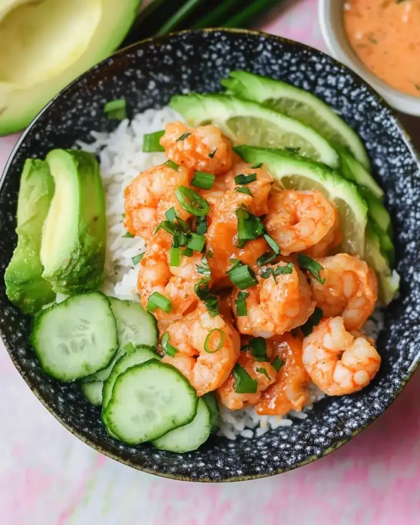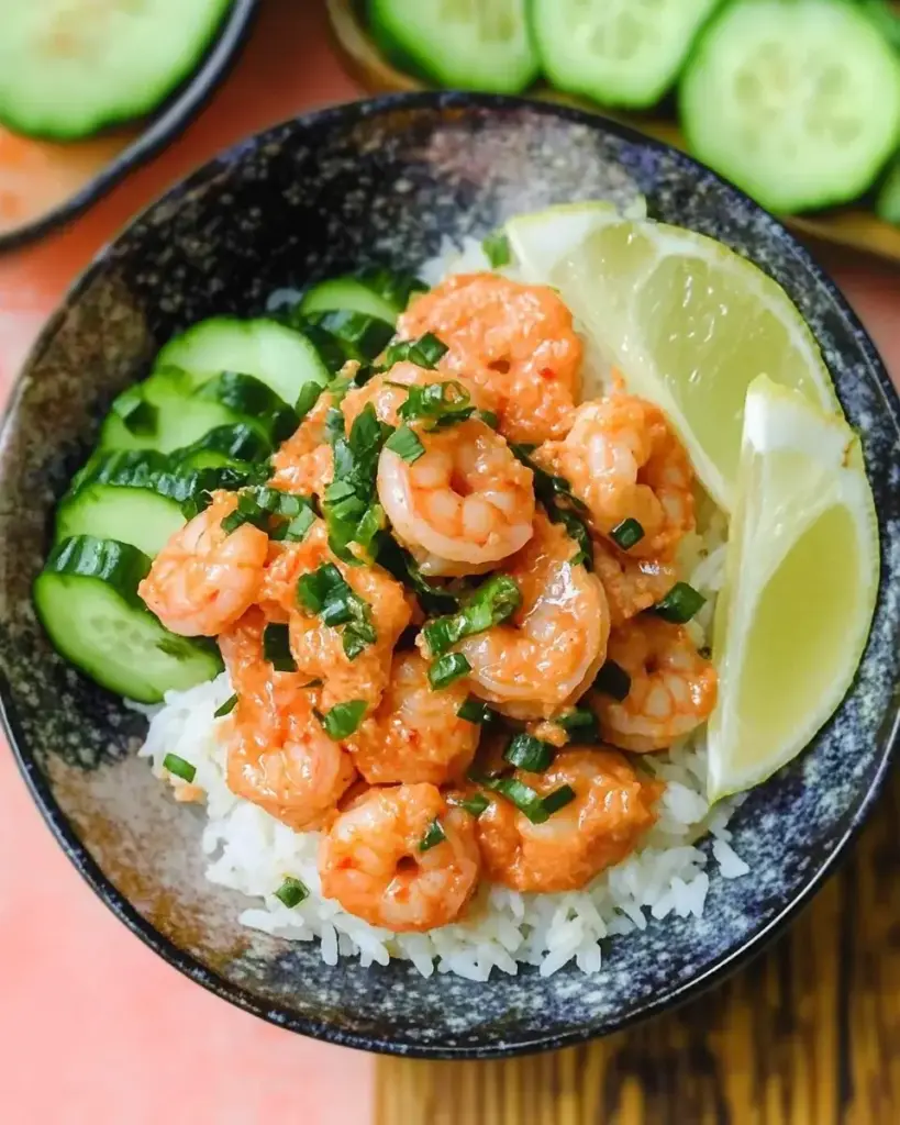 Introduction to Bangbang Shrimp Bowl If you love bold, spicy flavors combined with fresh, wholesome ingredients, the Bangbang shrimp bowl is a must-try. Crispy shrimp coated in a creamy, tangy bangbang sauce are served atop a bed of rice and fresh vegetables, creating a perfect balance of heat, crunch, and freshness. This dish is quick to prepare and delivers vibrant, satisfying flavors in every bite—ideal for a weeknight dinner or meal prep. Why You’ll Love This Bangbang Shrimp Bowl Bold and Spicy: The signature bangbang sauce adds a creamy kick that wakes up your taste buds. Crispy Shrimp: Lightly battered shrimp provide satisfying texture and flavor. Fresh and Balanced: Served with rice and crisp vegetables for a complete, nutritious meal. Quick and Easy: Ready in under 30 minutes, perfect for busy evenings. Versatile: Customize with your favorite veggies or swap shrimp for chicken or tofu. This Bangbang shrimp bowl offers a delicious fusion of flavors that’s as exciting as it is easy to make. Ingredients for Bangbang Shrimp Bowl Get ready for a flavor explosion—these ingredients bring the perfect bang to your shrimp bowl! Here’s what you’ll need: Shrimp: Large, peeled, and deveined shrimp are the stars of this dish. They cook quickly and soak up flavors beautifully. Jasmine Rice: This fragrant rice serves as the perfect base. Its fluffy texture complements the crispy shrimp and creamy sauce. Mayonnaise: Adds creaminess to the sauce. For a healthier twist, consider using Greek yogurt instead. Sweet Chili Sauce: This sauce brings a delightful sweetness and a hint of heat, balancing the flavors perfectly. Sriracha: A dash of this spicy sauce elevates the heat level. Adjust it to your taste for a milder or spicier kick. Lime Juice: Fresh lime juice brightens the dish and adds a zesty flavor that cuts through the richness. Cornstarch: This is used to coat the shrimp, giving them that crispy texture when cooked. Salt and Black Pepper: Essential seasonings that enhance the overall flavor of the shrimp. Green Onions: Chopped green onions add a fresh crunch and a pop of color to your bowl. Shredded Carrots: These provide a sweet crunch and vibrant color, making your dish visually appealing. Cilantro: Fresh cilantro adds a burst of flavor and freshness. If you’re not a fan, feel free to skip it. Vegetable Oil: Used for frying the shrimp, it helps achieve that golden, crispy exterior. For exact measurements, check the bottom of the article where you can find everything listed for easy printing. Enjoy the process of gathering these ingredients, as each one plays a vital role in creating your flavorful Bangbang Shrimp Bowl! How to Make Bangbang Shrimp Bowl Creating your Bangbang Shrimp Bowl is a breeze! Follow these simple steps, and you’ll have a delicious meal ready in no time. Let’s dive in! Step 1: Prepare the Sauce Start by whisking together the mayonnaise, sweet chili sauce, sriracha, and lime juice in a medium bowl. Mix until smooth and creamy. This sauce is the heart of your dish, so taste it! Adjust the sriracha if you want more heat. Set the sauce aside while you prep the shrimp. Step 2: Coat the Shrimp In another bowl, toss the peeled and deveined shrimp with cornstarch, salt, and black pepper. Make sure each shrimp is evenly coated. This step is crucial for achieving that crispy texture when cooked. The cornstarch creates a delightful crunch that pairs perfectly with the creamy sauce. Step 3: Cook the Shrimp Heat vegetable oil in a large skillet over medium-high heat. Once the oil is hot, add the shrimp in a single layer. Cook for about 2-3 minutes on each side, or until they turn pink and opaque. Avoid overcrowding the pan; you want them to fry, not steam. If your skillet is small, cook in batches! Step 4: Toss with Sauce Once the shrimp are cooked, remove them from the heat. In a large bowl, toss the hot shrimp with the prepared sauce until they are well coated. The heat from the shrimp will warm the sauce, making it even more delicious. This is where the magic happens—each bite will be bursting with flavor! Step 5: Assemble the Bowls To assemble your Bangbang Shrimp Bowl, divide the cooked jasmine rice among four bowls. Top each bowl with the saucy shrimp. Finally, garnish with chopped green onions, shredded carrots, and cilantro for a fresh touch. Serve immediately and enjoy the explosion of flavors! Tips for Success Prep all ingredients before you start cooking to streamline the process. Don’t skip the cornstarch; it’s key for that crispy shrimp texture. Adjust the sriracha to your heat preference—start small and add more if needed. For extra flavor, marinate the shrimp in lime juice for 15 minutes before coating. Serve immediately for the best texture and taste! Equipment Needed Large Skillet: A non-stick skillet works best for frying the shrimp. If you don’t have one, any heavy-bottomed pan will do. Medium Bowls: You’ll need a couple for mixing the sauce and coating the shrimp. Whisk: A whisk is ideal for blending the sauce, but a fork can work in a pinch. Spatula: Use a spatula to toss the shrimp and sauce together. Variations Spicy Bangbang Shrimp: Add more sriracha or a pinch of cayenne pepper to the sauce for an extra kick. Vegetarian Option: Substitute shrimp with crispy tofu or tempeh for a plant-based twist. Low-Carb Version: Serve the shrimp over cauliflower rice instead of jasmine rice for a lighter meal. Asian-Inspired Additions: Toss in some snap peas or bell peppers for added crunch and color. Herb Variations: Experiment with fresh herbs like basil or mint instead of cilantro for a different flavor profile. Serving Suggestions Side Dishes: Pair your Bangbang Shrimp Bowl with a light cucumber salad or steamed broccoli for a refreshing contrast. Drinks: A cold Asian lager or a zesty limeade complements the flavors beautifully. Presentation: Serve in colorful bowls and sprinkle extra cilantro on top for a vibrant look. FAQs about Bangbang 