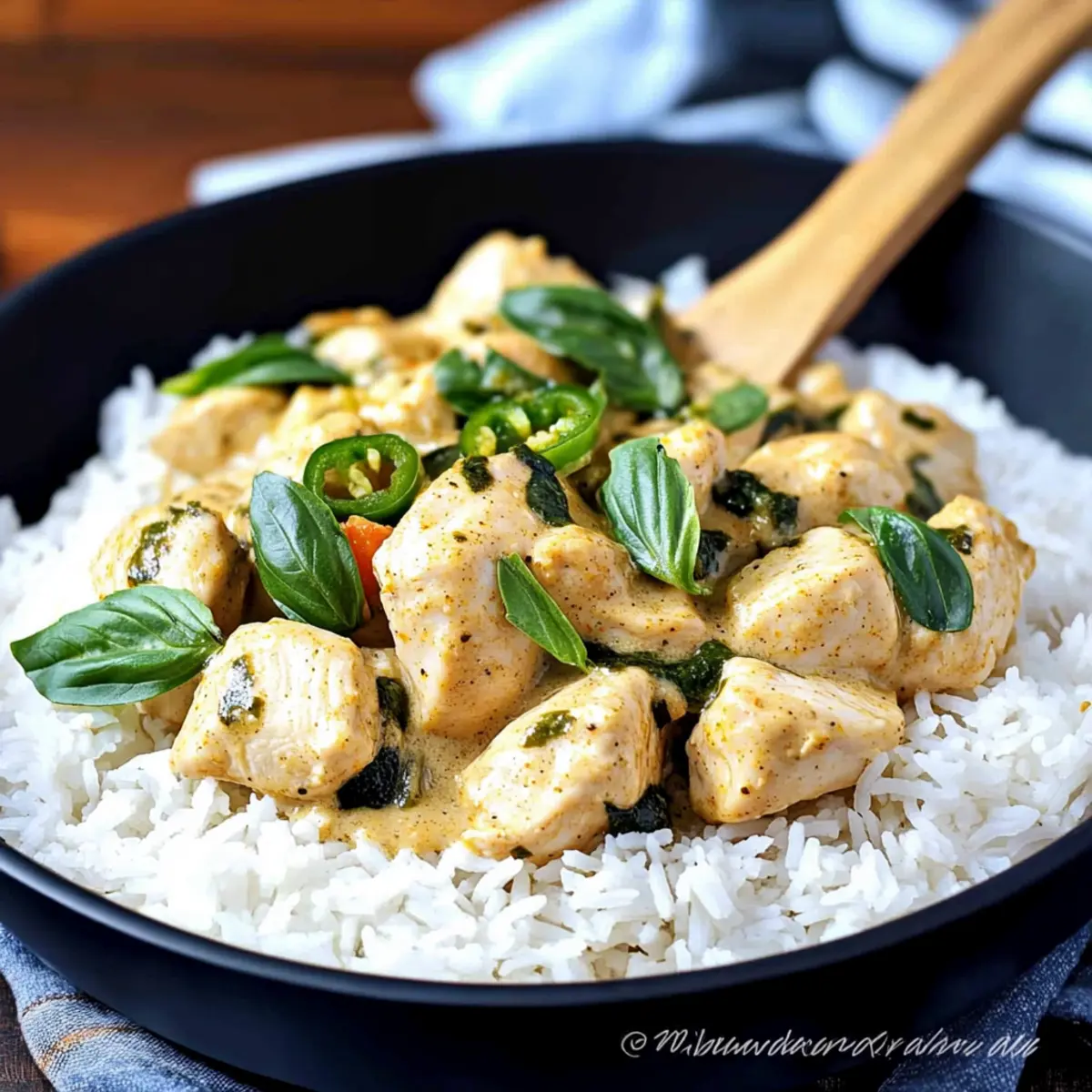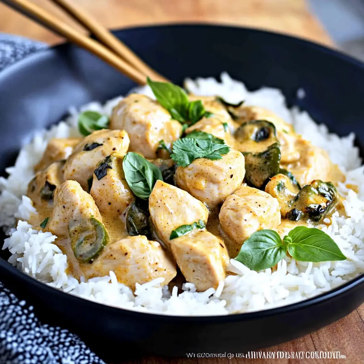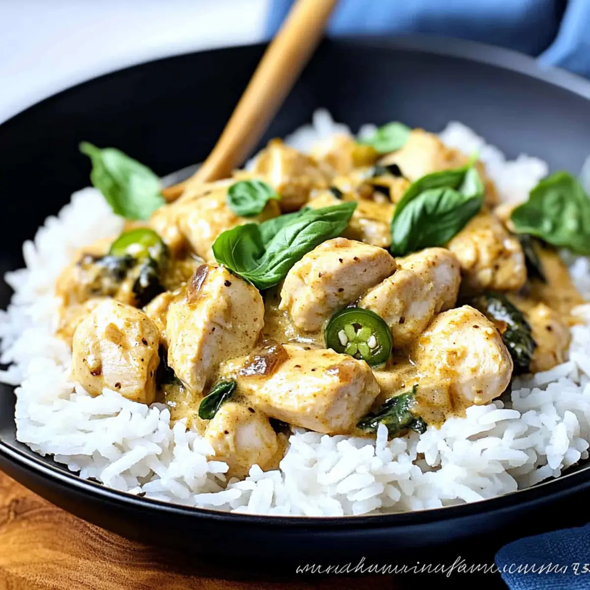 Delightful Flavor Fusion: The creamy coconut curry sauce pairs beautifully with tender chicken, creating a dish that sings with aromatic spices and fresh basil.