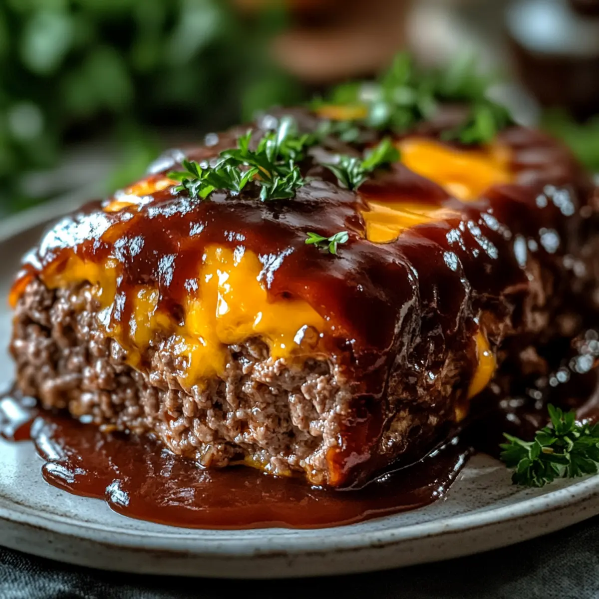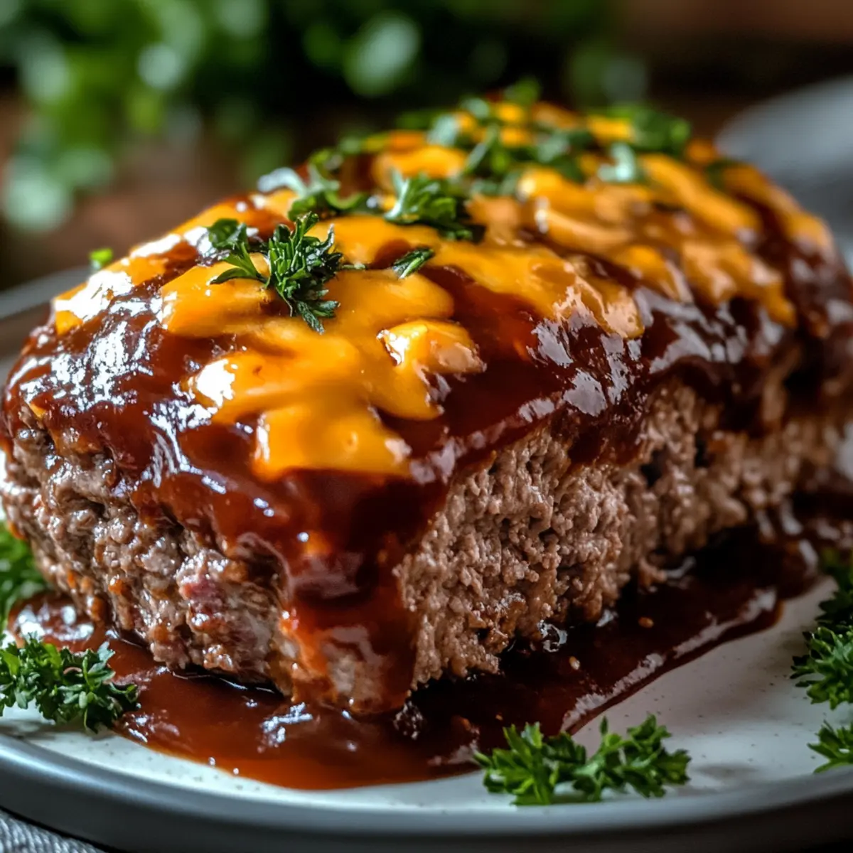 As I stood in my kitchen, the alluring scent of smoky barbecue wafted through the air, instantly transporting me to summer cookouts filled with laughter and family. If you’re in search of a cozy comfort food that bridges the gap between casual gatherings and hearty family dinners, look no further than my BBQ Cheddar Meatloaf. This delightful dish offers an easy preparation while delivering a juicy, cheesy experience that everyone will love. It’s not only a crowd-pleaser for busy weeknights but also makes for scrumptious leftovers, perfect for meal planning. Imagine transforming your dinner table into a warm, inviting space where every bite feels like a hug! Are you ready to dive into a recipe that will soon become a staple in your household? Why is BBQ Cheddar Meatloaf Essential? Comforting, Wholesome Goodness: This BBQ Cheddar Meatloaf promises a warm embrace with each bite, blending the rich flavors of tangy BBQ and melty cheddar cheese. Quick and Easy: Made with simple ingredients, this recipe requires little prep time, making it perfect for busy weeknights or spontaneous gatherings. Versatile Delight: Customize your meatloaf by mixing in veggies or swapping cheeses; smoked gouda or pepper jack will elevate the flavors even further! Family-Friendly: Kids and adults alike will be raving about this dish, turning every meal into a festive occasion, just like my Honey BBQ Chicken. Ideal for Meal Prep: Prepare a double batch for leftovers that provide delicious lunches during the week, similar to a cozy bowl of Broccoli Cheddar Soup – wholesome and satisfying! BBQ Cheddar Meatloaf Ingredients • Perfectly crafted for a deliciously simple recipe. For the Meatloaf Ground Beef – Main protein source providing moisture and flavor; can substitute with ground turkey or chicken for a leaner option. Breadcrumbs – Adds structure and helps bind the meatloaf; use panko for a lighter texture. Shredded Cheddar Cheese – Adds creaminess and flavor; swap for pepper jack for a spicy kick. BBQ Sauce – Gives the meatloaf its signature tangy glaze; substitute with homemade BBQ sauce or try a honey-infused version for added sweetness. Milk – Moisture enhancer; can be replaced with any plant-based milk. Egg – Acts as a binder to hold the loaf together; use a flaxseed egg for a vegan alternative. Garlic Powder – Provides a savory base flavor; fresh garlic can be used instead for a stronger taste. Onion Powder – Adds depth of flavor; substitute with finely chopped onions if preferred. Salt and Pepper – Essential for seasoning; adjust based on taste preference. Step‑by‑Step Instructions for BBQ Cheddar Meatloaf Step 1: Preheat and Prepare Begin by preheating your oven to 375°F (190°C). While the oven warms up, prepare a loaf pan by greasing it with cooking spray or lining it with parchment paper. This ensures that your BBQ Cheddar Meatloaf releases easily after baking and offers a nice presentation. Step 2: Mix the Ingredients In a large mixing bowl, combine the ground beef, breadcrumbs, shredded cheddar cheese, BBQ sauce, milk, and the beaten egg. Season the mixture with garlic powder, onion powder, salt, and pepper, then gently mix everything until just combined. Be cautious not to overwork the meat to keep the meatloaf tender and juicy. Step 3: Shape the Meatloaf Once your ingredients are well mixed, transfer the meat mixture onto a clean surface. Shape it into a loaf, roughly about 9 inches long, making sure to form it evenly. Carefully place it in your prepared loaf pan, arranging it so that it has ample space on all sides to cook evenly. Step 4: Add the BBQ Glaze With the shaped BBQ Cheddar Meatloaf nestled in the pan, it’s time to glaze the top. Generously spread an additional layer of BBQ sauce over the loaf, ensuring it covers the surface evenly. This layer will create a flavorful, caramelized crust that enhances the overall taste of your meatloaf. Step 5: Bake to Perfection Slide the loaf pan into the preheated oven and bake for 40-45 minutes. Keep an eye on the meatloaf as it cooks; it’s done when the internal temperature reaches 160°F (70°C) and the exterior looks nicely browned. A meat thermometer is the best way to ensure it’s perfectly cooked while remaining moist. Step 6: Rest and Serve Once the BBQ Cheddar Meatloaf is baked, remove it from the oven and let it rest for 5 minutes. This time allows the juices to redistribute, making the meatloaf easier to slice. After resting, slice the meatloaf into thick portions and serve warm, enjoying that cozy, delicious flavor with your favorite sides. Make Ahead Options These BBQ Cheddar Meatloaf preparations are perfect for busy home cooks looking to save time during the week! You can mix the meatloaf ingredients up to 24 hours in advance and refrigerate the mixture in an airtight container, preventing any browning and preserving flavor. You can also shape the meatloaf and store it, covered, for an easy oven-ready meal. If stored properly, it can last up to 3 days before cooking. When you’re ready to bake, just uncover it, spread an additional layer of BBQ sauce on top, and bake it fresh. With these make-ahead tips, you’ll enjoy delicious, homemade BBQ Cheddar Meatloaf with minimal effort, providing hearty comfort for those busy nights! Helpful Tricks for BBQ Cheddar Meatloaf Avoid Overmixing: Keeping the meat mixture just combined helps retain moisture. Overmixing can lead to a dry texture in your BBQ Cheddar Meatloaf. Use a Meat Thermometer: It ensures your meatloaf reaches 160°F (70°C) for safe consumption. This prevents undercooking while keeping it juicy. Resting Time Matters: Allowing the meatloaf to rest for 5 minutes before slicing helps juices redistribute, improving flavor and texture. Customize the Glaze: Stirring in a bit of honey or maple syrup to your BBQ sauce creates a beautifully caramelized crust and an unexpected twist! Storage Savvy: For optimal freshness, store leftovers in an airtight containe
