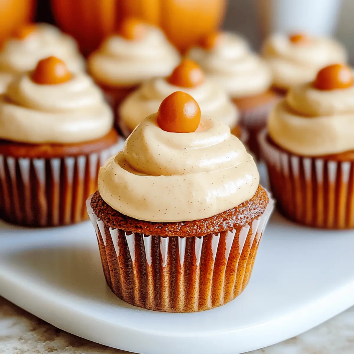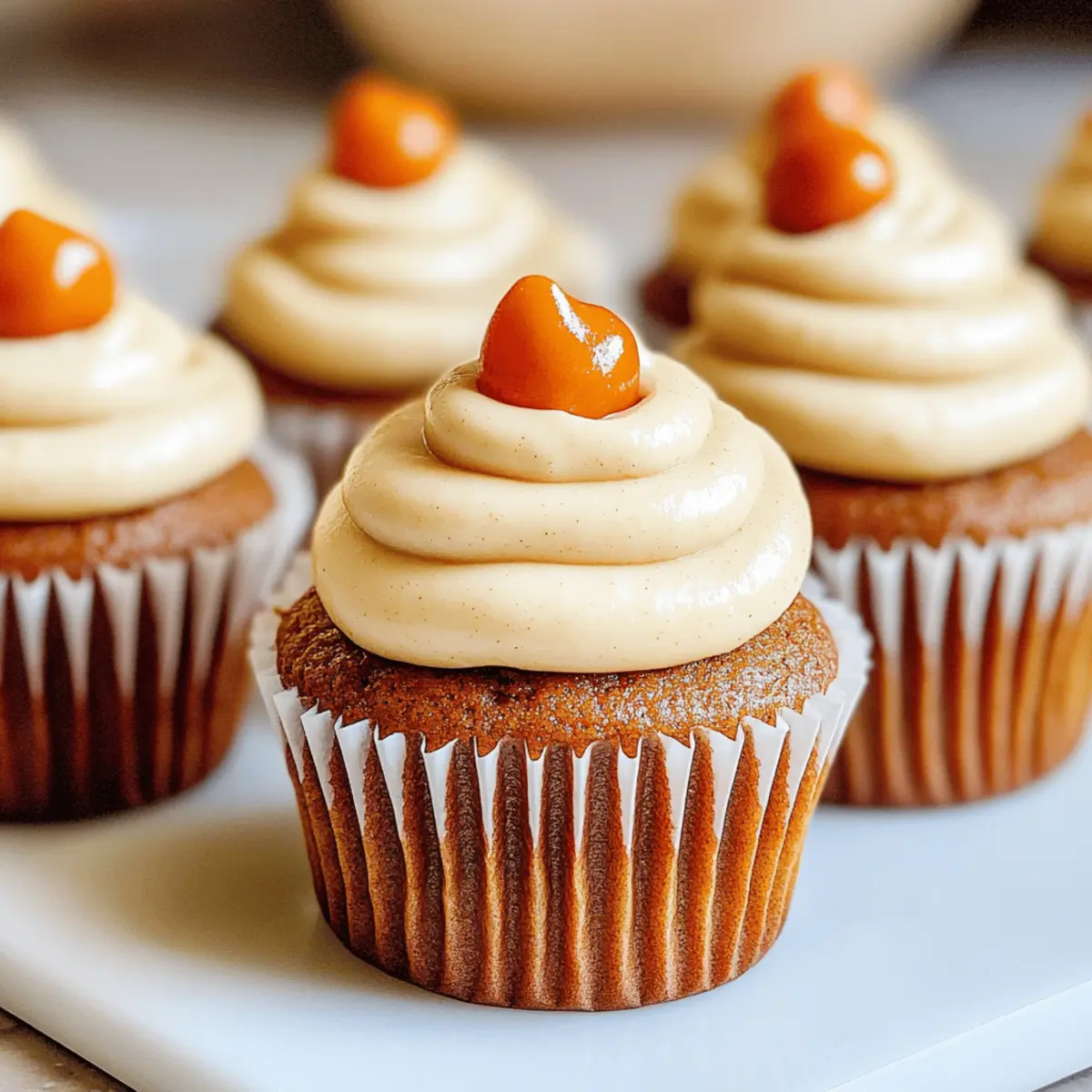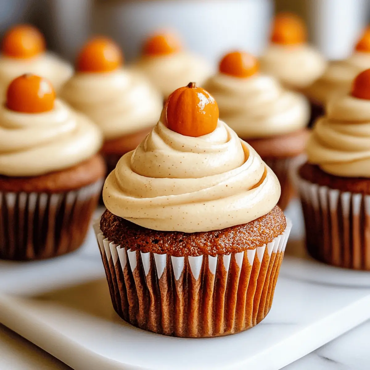 As I wandered through the local farmers’ market, the scent of freshly baked goods danced through the air, pulling me towards stalls brimming with autumn’s bounty. That’s when I stumbled upon a vibrant display of pumpkins, their rich orange hue whispering promises of cozy fall treats. This inspired me to whip up the Best Pumpkin Cupcakes, where each bite captures the essence of the season. These cupcakes are not only incredibly easy to make, but they also elevate any gathering with their soft, moist texture and a heavenly brown sugar cream cheese frosting. You’ll find that they blend the warm flavors of pumpkin spice and the sweetness of cream cheese perfectly, making them the ultimate fall dessert. Curious about how to create this delightful treat? Let’s dive into the recipe! Why Are These Pumpkin Cupcakes Special? Deliciously Moist: With a simple process that yields soft, fluffy cupcakes, they embody the essence of fall. Heavenly Frosting: The brown sugar cream cheese frosting adds a decadent finish that complements the pumpkin flavor beautifully. Perfect for Any Occasion: Whether it’s a holiday gathering or a cozy night in, these cupcakes are sure to impress friends and family. Customizable Fun: Feel free to enhance your cupcakes with chocolate chips or nuts for extra flair! For more inspiration, check out my delicious Chicken Nuggets Homemade. Quick to Make: Bake these treats in under an hour with minimal fuss—they’re perfect for surprising guests or satisfying your fall cravings. Best Pumpkin Cupcake Ingredients For the Cupcakes All-Purpose Flour – Provides structure and tenderness; can be substituted with gluten-free flour for a delightful alternative. Baking Powder – Acts as a leavening agent to help the cupcakes rise; always check for freshness! Baking Soda – Works harmoniously with acidic ingredients like pumpkin to create a light texture. Salt – Elevates flavor and balances sweetness; don’t skip it if you want the best taste. Pumpkin Spice – Infuses warmth and a cozy flavor; use a premixed blend or create your own for that authentic touch! Dark Brown Sugar – Contributes moisture and a rich caramel taste; can be swapped with light brown sugar if needed. Pumpkin Purée – The star ingredient that gives these cupcakes their signature flavor; make your own or buy it canned for convenience. Vegetable Oil – Keeps cupcakes moist and tender; melted butter works great, too, for extra richness. Eggs – Help bind ingredients together; ensure they’re at room temperature for better mixing. Vanilla Extract – Enhances the overall flavor profile; opt for pure vanilla for the best results. For the Frosting Butter – Adds richness to the frosting and should be at room temperature for easy mixing. Cream Cheese – The creamy base of the frosting; let it warm up for a smooth consistency. Powdered Sugar – Sweetens the frosting and provides a silky texture; sift it to avoid lumps for a flawless finish. These Best Pumpkin Cupcake Ingredients are sure to transform your fall baking into a warm and inviting experience! Step‑by‑Step Instructions for Best Pumpkin Cupcakes Step 1: Preheat Your Oven Begin by preheating your oven to 160ºC (320ºF). Meanwhile, prepare a standard 12-cup muffin tray by lining each cup with cupcake liners. This will make it easier to remove the cupcakes after baking and add a cheerful touch to your presentation. Step 2: Combine Dry Ingredients In a large mixing bowl, whisk together the all-purpose flour, baking powder, baking soda, pumpkin spice, and salt until evenly combined. This dry mixture forms the backbone of your Best Pumpkin Cupcakes, providing the right balance of structure and flavor. Ensure there are no lumps for a smooth batter. Step 3: Mix Wet Ingredients In a separate bowl, combine the pumpkin purée, vegetable oil, eggs, and vanilla extract. Whisk these ingredients together until they are well blended and smooth. The vibrant color and creamy texture of the mixture will signal that you’re on the right path to delicious pumpkin cupcakes. Step 4: Combine Mixtures Pour the wet ingredients into the bowl containing your dry mixture. Gently stir the batter with a spatula or wooden spoon until just combined. Be careful not to overmix, as this can lead to dense cupcakes. Your mixture should be slightly lumpy, indicating it is ready for the next step. Step 5: Fill Cupcake Liners Using a scoop or a spoon, evenly distribute the batter among the prepared cupcake liners, filling each about two-thirds full. This will give your cupcakes room to rise beautifully in the oven. Place the tray in the preheated oven and bake for 23-24 minutes, or until a toothpick inserted into the center comes out clean. Step 6: Cool the Cupcakes Once baked, remove the tray from the oven and let the cupcakes cool in the tin for about 5 minutes. Afterward, carefully transfer the cupcakes to a wire rack to cool completely. This cooling process is essential before frosting, as it prevents the cream cheese frosting from melting away. Step 7: Create the Frosting While the cupcakes cool, prepare your frosting. In a large bowl, beat the room-temperature butter and dark brown sugar together until creamy and fluffy. This mixture should become light in color, indicating it’s well combined and ready for the addition of cream cheese. Step 8: Mix in Cream Cheese Add the softened cream cheese and vanilla extract to your fluffy butter and sugar mixture. Continue beating until smooth and well incorporated. The frosting should be creamy and spreadable, showcasing that rich, decadent flavor perfect for topping your Best Pumpkin Cupcakes. Step 9: Add Powdered Sugar Gradually mix in the sifted powdered sugar, about one cup at a time, ensuring each addition is blended smoothly before adding the next. Continue mixing until the frosting reaches a silky, thick consistency that holds its shape beautifully for piping onto your cupcakes. Step 10: Frost Cupcakes Once the cupcakes