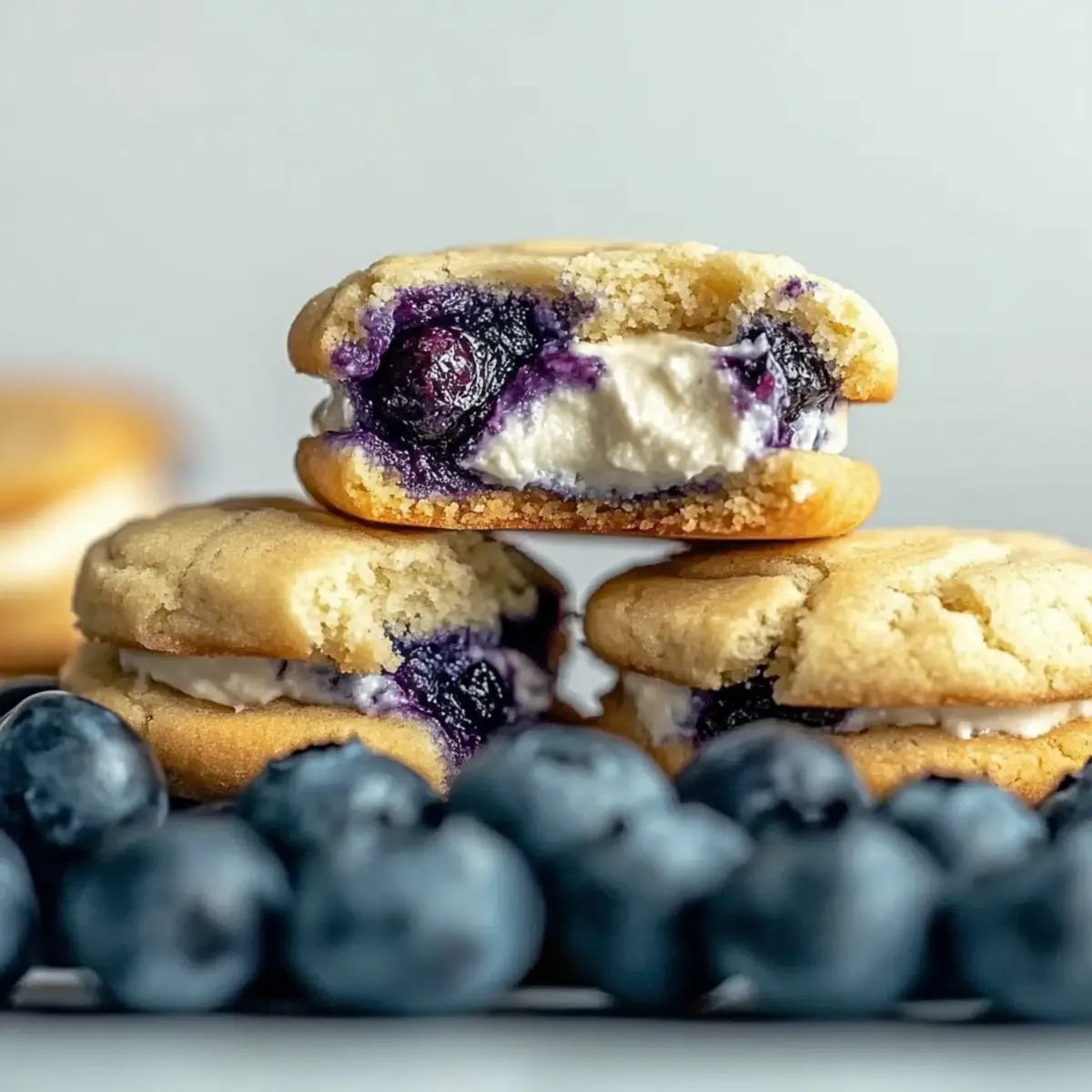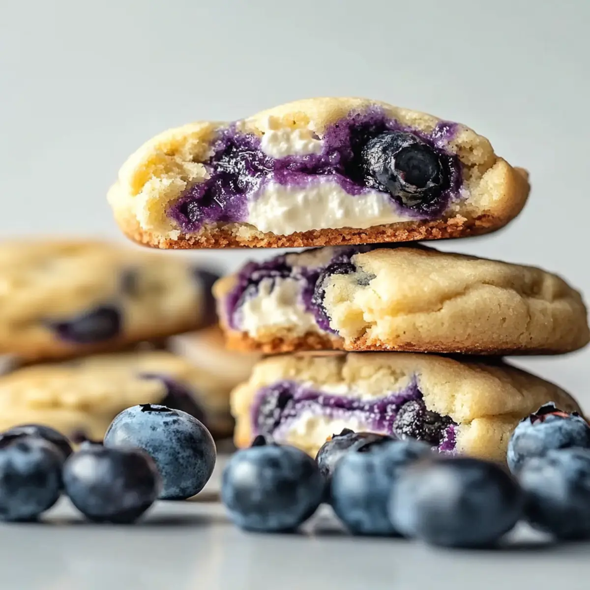 As I stood in my kitchen, the aroma of baking cookies filled the air, transporting me back to sunlit summer days spent picking blueberries. Those sweet, juicy gems inspired this delightful recipe for Blueberry Cheesecake Cookies. Imagine the joy of biting into a soft, chewy cookie, only to find a luscious cream cheese filling bursting with fruit goodness inside. Not only are these cookies a unique twist on a classic dessert, they bring the perfect balance of flavor and texture to the table, making them a sure crowd-pleaser. With just a few simple ingredients and quick prep, you can indulge your sweet tooth without the hassle of traditional baking. Curious to learn how to recreate this mouthwatering treat? Let’s dive into the recipe! Why Are Blueberry Cheesecake Cookies Irresistible? Luscious Flavor: The combination of sweet blueberries and creamy cheesecake creates a heavenly taste that’s hard to resist. Unique Twist: These cookies offer a delightful variation on a familiar dessert, perfect for impressing friends and family. Easy to Make: With simple ingredients and a straightforward process, even novice bakers can achieve delicious results. Perfect Texture: Soft and chewy with a smooth filling, they melt in your mouth, making every bite a joy. Versatile Enjoyment: Serve them warm with a cup of coffee or as a sweet snack any time of the day. Don’t forget to check out other berry-infused delights like Banana Oatmeal Cookies for more inspiration! Blueberry Cheesecake Cookies Ingredients Curious about what you’ll need? Here’s your complete list! For the Cookie Base All-Purpose Flour – Provides structure to the cookies; no substitutions required, but gluten-free options may alter texture. Baking Soda – Acts as a leavening agent for a tender texture; ensure freshness for optimal results. Cornstarch – Enhances chewiness; substitution with additional flour may change texture. Salt – Balances sweetness and enhances flavor; essential for an overall delicious taste. Unsalted Butter – Adds richness and moisture; can be substituted with margarine or coconut oil for a dairy-free option. Granulated Sugar – Provides sweetness and contributes to cookie texture; brown sugar can enhance chewiness if increased. Brown Sugar – Delivers moisture and a slight caramel flavor; can completely replace white sugar, if desired. Large Egg – Binds ingredients and adds moisture; for egg-free options, use a flaxseed or chia seed substitute. Vanilla Extract – Infuses flavor into the dough; you can use almond extract for a nutty twist. Lemon Zest – Brightens the flavor profile; orange zest can be used for a citrusy note. Blueberries – Provides fruity bursts in cookies, can be fresh or frozen; toss frozen blueberries in flour to prevent color bleeding. For the Cheesecake Filling Cream Cheese – Contributes to the creaminess of both filling and cookies; mascarpone can substitute for a richer flavor. Powdered Sugar – Sweetens and thickens the cheesecake filling; not easily substitutable for other types of sugar. With these ingredients, you’re on your way to creating delightful Blueberry Cheesecake Cookies that will melt in your mouth! Step‑by‑Step Instructions for Blueberry Cheesecake Cookies Step 1: Make the Cheesecake Filling In a medium bowl, beat together 8 oz of cream cheese, 1 cup of powdered sugar, and 1 tsp of vanilla extract until the mixture is smooth and creamy. Scoop small portions (about 1 tablespoon) onto a parchment-lined plate and freeze them for 30 minutes. This will allow the filling to firm up, making it easier to incorporate later into your Blueberry Cheesecake Cookies. Step 2: Prepare the Cookie Dough In a separate medium bowl, whisk together 2 cups of all-purpose flour, 1 tsp of baking soda, 2 tsp of cornstarch, and ½ tsp of salt until well combined. In a larger bowl, cream together ½ cup of softened unsalted butter, 4 oz of softened cream cheese, ½ cup of granulated sugar, and ½ cup of brown sugar until light and fluffy. This step gives your cookies a soft texture. Step 3: Add Wet Ingredients Next, beat in 1 large egg, 1 tsp of vanilla extract, and the zest of 1 lemon to the creamed mixture until fully incorporated. You should have a well-mixed, creamy dough at this point. Gradually add the dry mixture to the wet mix, folding it together gently to maintain the lightness of the dough for your Blueberry Cheesecake Cookies. Step 4: Incorporate Blueberries Gently fold in 1 cup of fresh or frozen blueberries, ensuring you don’t crush them in the process. This is crucial as it keeps the blueberries intact for delicious bursts of flavor in your cookies. Be careful not to overmix; you want the blueberries to be evenly distributed in the dough without losing their shape. Step 5: Assemble and Bake Preheat your oven to 350°F (175°C) and line baking sheets with parchment paper. Scoop out portions of your cookie dough (about 2 tablespoons each) and flatten them slightly in your hand. Place a frozen cheesecake filling portion in the center, cover with more dough, and roll into a ball. Make sure to seal the filling inside the dough completely. Step 6: Bake the Cookies Arrange the cookie balls on the prepared baking sheets, leaving about 2 inches between each one for spreading. Bake in the preheated oven for 11-13 minutes until the edges are golden brown but the centers remain soft. When done, the Blueberry Cheesecake Cookies should look slightly puffy and lightly golden. Step 7: Cool and Enjoy Allow the cookies to cool on the baking sheet for 5 minutes before transferring them to a wire rack to cool completely. This step helps them set up perfectly. Once cooled, savor the chewy texture and creamy filling of your delicious Blueberry Cheesecake Cookies! How to Store and Freeze Blueberry Cheesecake Cookies Airtight Container: Store your Blueberry Cheesecake Cookies in an airtight container at room temperature for up to 5 days, keeping them fresh and chewy. Freezer: For lo