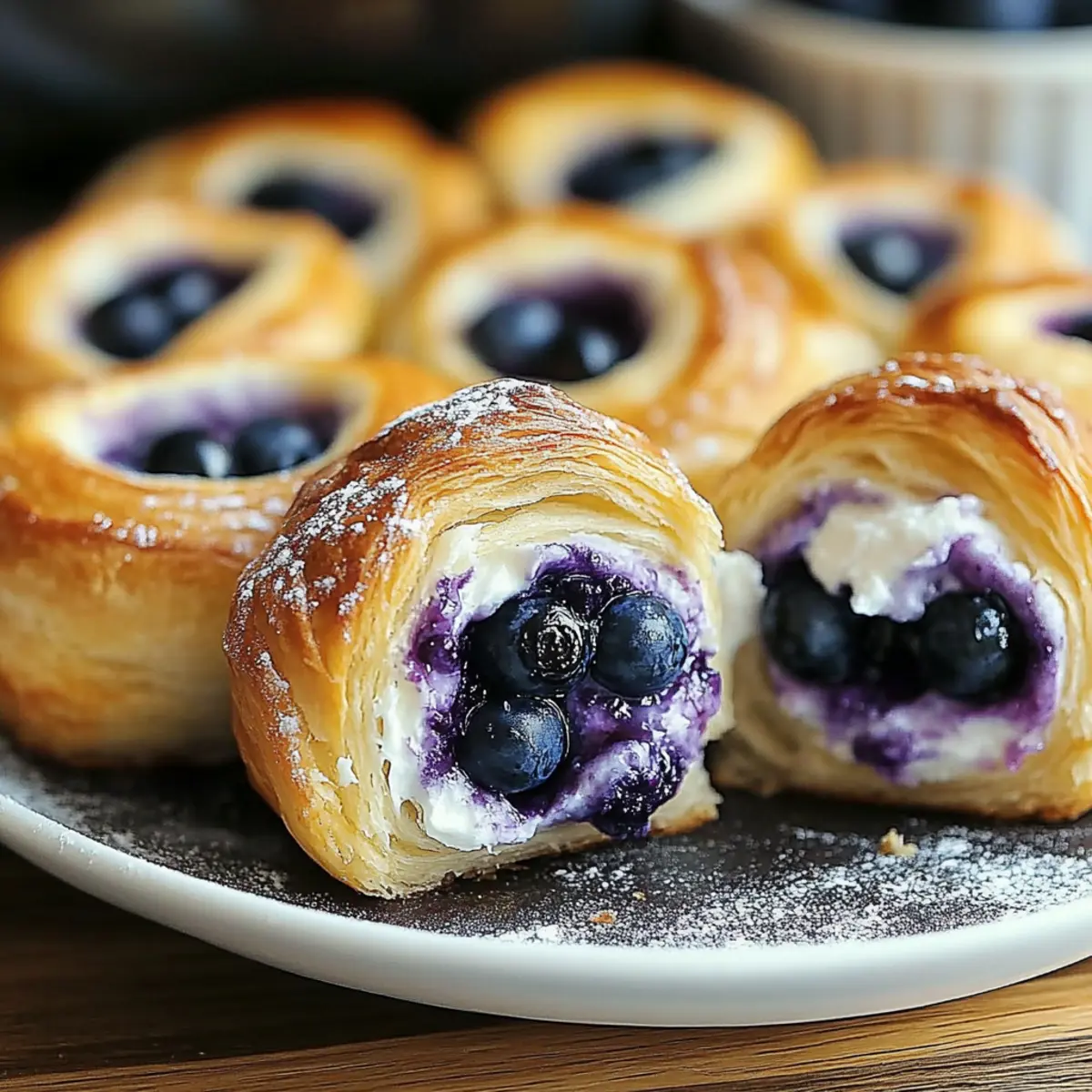 A gentle whiff of warm, buttery pastry wafts through my kitchen, instantly igniting cravings for something sweet and comforting. Enter my Quick and Easy Blueberry Cheesecake Rolls—a delightful fusion of flavors that brings you the best of both worlds: the creaminess of cheesecake and the tartness of juicy blueberries. What I love most about these rolls is how simple they are to whip up, making them an ideal choice for busy mornings or spontaneous brunches with friends. They’re not just tasty; they offer a gourmet touch without the fuss, making it easy to impress your loved ones. Ready to roll with me in the kitchen? Let’s uncover the secrets to creating these beautiful treats! Why are Blueberry Cheesecake Rolls a must-try? Simplicity at Its Finest: With just a handful of ingredients and minimal prep time, these rolls are perfect for even novice bakers. Irresistible Flavor Fusion: The combination of a flaky pastry and creamy cheesecake filling paired with sweet blueberries is a match made in dessert heaven. Quick to Make: In under 30 minutes, you can have these delightful treats prepared and baked, making them an excellent option for unexpected guests. Versatile Delight: Feel free to swap blueberries for other fruits like raspberries or strawberries, ensuring there’s something for everyone! If you’re a fan of fruit desserts, be sure to check out my Apple Crumble Cheesecake for another delicious option! Crowd-Pleasing Treats: These rolls are not only tasty but look gorgeous on a serving platter, making them a hit at brunches, breakfast gatherings, or special occasions. Blueberry Cheesecake Rolls Ingredients • You won’t believe how simple these are! For the Rolls Crescent Roll Dough – A convenient base; use store-bought for quick assembly. Cream Cheese – Adds richness and a creamy texture; make sure it’s softened for easy mixing. Blueberries – Fresh or frozen work wonders; if using frozen, skip thawing to keep their shape. For the Sweet Filling Sugar – Sweetens the filling; feel free to adjust according to your taste preferences. Vanilla Extract – Enhances the flavor; substitute with almond extract for a unique twist. With these simple ingredients, you’ll soon be diving into the irresistible world of Blueberry Cheesecake Rolls! Step‑by‑Step Instructions for Blueberry Cheesecake Rolls Step 1: Prepare the Filling In a mixing bowl, combine 8 ounces of softened cream cheese, 1/4 cup of sugar, and 1 teaspoon of vanilla extract. Using a hand mixer, beat the ingredients together for about 2-3 minutes until the mixture is completely smooth and creamy. This delightful cream cheese filling will add richness to your Blueberry Cheesecake Rolls, so ensure there are no lumps and everything is well incorporated. Step 2: Assemble the Rolls Preheat your oven to 375°F (190°C) and line a baking sheet with parchment paper. Unroll a can of refrigerated crescent roll dough onto a clean surface, separating it into triangles. At the wider end of each triangle, place a generous spoonful of the cream cheese mixture and scatter a few fresh or frozen blueberries on top. Carefully roll the dough up tightly, starting from the wider end to the point, ensuring the filling is tucked inside. Step 3: Bake the Rolls Arrange the rolled pastries on the prepared baking sheet, making sure to leave space between them for expansion. Place the pan in the preheated oven and bake for about 12-15 minutes, or until the rolls are puffed up and golden brown. Keep an eye on them towards the end, as you want your Blueberry Cheesecake Rolls to have that beautiful golden hue while retaining their flaky texture. Step 4: Cool and Serve Once baked, remove the baking sheet from the oven and allow the Blueberry Cheesecake Rolls to cool for about 5 minutes. This resting time will help enhance the flavors and textures. You can serve them warm on a beautiful platter, perhaps with a dusting of powdered sugar for an extra touch of sweetness, or a dollop of whipped cream for that added indulgence. Expert Tips for Blueberry Cheesecake Rolls Soften Cream Cheese: Always ensure the cream cheese is softened for easy mixing. This prevents lumps and creates a silky filling. Avoid Overfilling: Be mindful not to overfill the rolls. Too much filling can cause overflow during baking and make a mess. Frozen Blueberries Best Practices: If using frozen blueberries, avoid thawing them before adding. This helps maintain their shape and prevents excess moisture in the rolls. Check Doneness: Keep an eye on the rolls while baking; you want them golden brown and flaky. Overbaking can lead to dryness. Serving Warm: For the best experience, serve your Blueberry Cheesecake Rolls warm. The creamy filling tastes divine when freshly baked. What to Serve with Blueberry Cheesecake Rolls A lovely array of delightful sides will elevate your Blueberry Cheesecake Rolls into a full brunch spread that’s simply irresistible. Fresh Fruit Salad: A bright mix of seasonal fruits adds a refreshing crunch, balancing the creamy sweetness of the rolls. Fluffy Scrambled Eggs: Soft, buttery eggs pair beautifully with sweet pastries, creating a comforting and satisfying breakfast experience. Imagine spoiling your guests by serving gently scrambled eggs alongside; the savory flavors complement the richness of the rolls, making every bite an indulgent delight. Maple Syrup Drizzle: A beautiful drizzle of rich maple syrup offers an extra touch of sweetness, enhancing the overall flavor experience. Crispy Bacon Strips: The salty, savory crunch of bacon provides a wonderful contrast to the sweetness of the rolls, adding texture. Serve the bacon alongside, letting your guests dip crispy strips into bacon grease for an unexpected culinary twist! Herbal Tea or Coffee: A warm cup of herbal tea or freshly brewed coffee will enhance your treats and create the perfect morning ritual. Cinnamon Sugar Dusting: A light sprinkle of cinnamon sugar on top of your rolls before servin