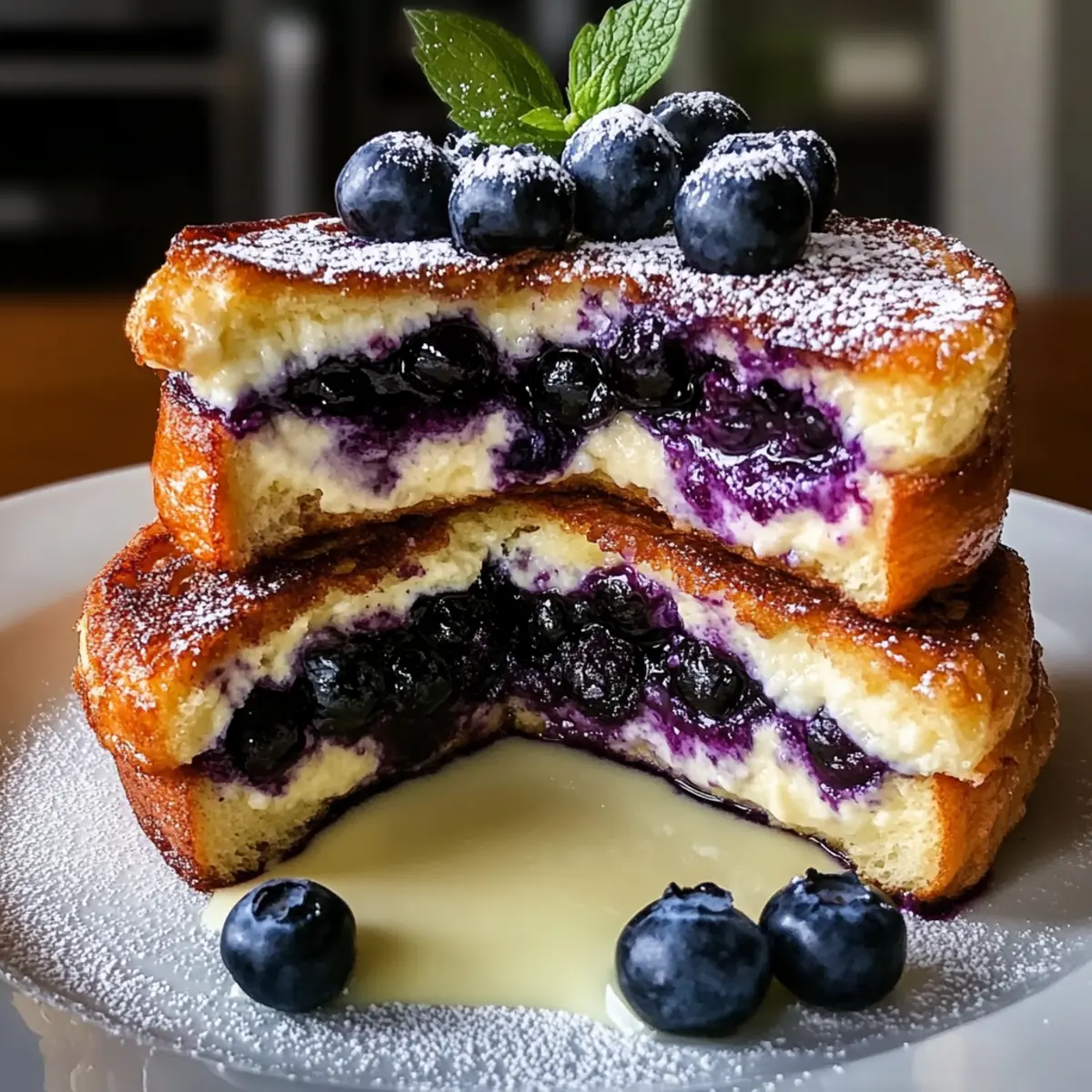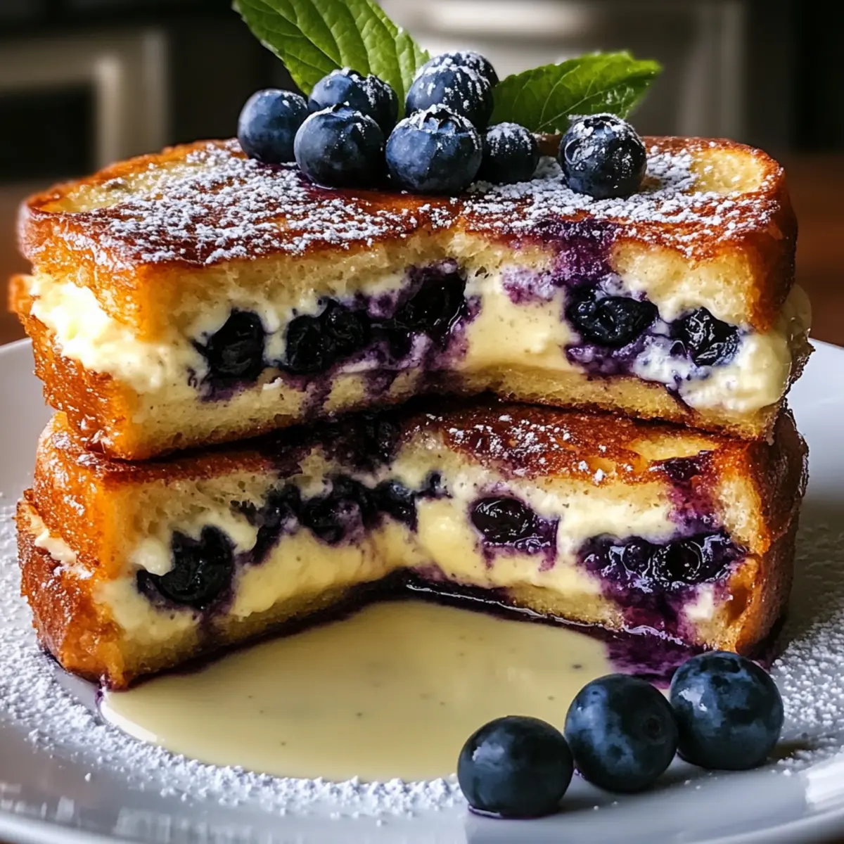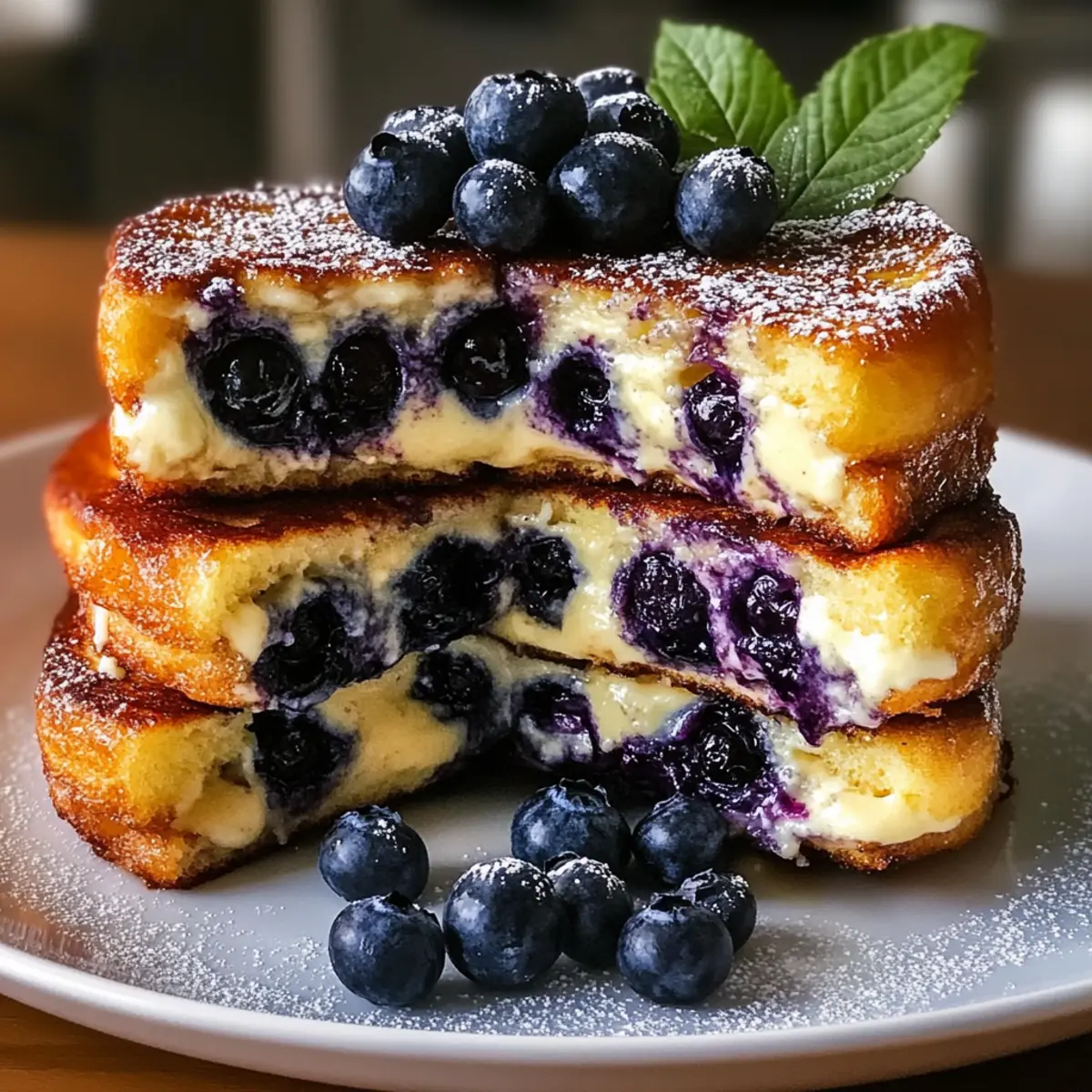 As I stood in the kitchen, the sweet aroma of blueberries and warm brioche filled the air, instantly making my mouth water. This Blueberry Cheesecake Stuffed French Toast is my secret weapon for turning any ordinary breakfast into a moment to savor. Not only does it beautifully merge the creamy indulgence of cheesecake with the comforting texture of French toast, but it also comes together quickly, making it a perfect pick for busy mornings or special brunch gatherings. Plus, it’s endlessly customizable—whether you fancy adding strawberries or even nutella, this dish invites you to get creative. Are you ready to elevate your breakfast game and impress your loved ones? Let’s dive into this delightful recipe! Why Will You Love This Recipe? Indulgent Delight: Imagine savoring fluffy brioche filled with creamy cheesecake and bursting blueberries—it’s heaven on a plate! Ease of Preparation: This recipe is simple to follow, perfect for both novice cooks and seasoned chefs. You’ll have a gourmet breakfast ready in no time! Endless Variations: Whether you’re in the mood for Strawberry Cheesecake or a Nutella & Banana twist, this recipe allows you to mix it up just the way you like! Perfect for Gatherings: Impress your brunch guests with a dish that not only looks stunning but tastes incredible. They’ll be coming back for seconds (and thirds)! Make-Ahead Friendly: Prepare it the night before for a stress-free morning! You can have this beautiful dish baked and ready to enjoy in just minutes. Positively Addictive: With every bite, you’ll find yourself craving more. It’s the kind of breakfast you’ll want on repeat! Blueberry Cheesecake Stuffed French Toast Ingredients For the Filling • 150g cream cheese (softened) – Provides the creamy cheesecake filling; avoid low-fat versions for optimal texture. • 2 tbsp caster sugar – Adds sweetness that dissolves easily for a smooth blend. • 1 tsp vanilla extract – Enhances the overall flavor of the filling. • ½ cup blueberries (fresh or thawed if frozen) – Adds flavor and nutrients; enriches the filling with bursts of sweetness. For the Toast • Brioche loaf (day-old) – Key ingredient for structure; soaks up custard beautifully without falling apart. Can substitute with challah or Texas toast. • 1 egg – Binds the custard mixture for that perfect texture. • ½ cup milk + ½ cup cream – Creates a rich custard base, elevating the creaminess of the dish. • 1 tsp cinnamon – Adds warmth and aromatic flavor that complements the fruit and cream. • Butter (for frying) – Used for cooking; unsalted is preferred for better flavor control. Optional Toppings • Maple syrup – Drizzle over the top for that extra touch of sweetness. • Extra blueberries – Use as a fresh topping for added flavor and visual appeal. • Icing sugar – Dust over the top for a beautiful finish. Let’s get cooking with this Blueberry Cheesecake Stuffed French Toast and turn your breakfast into an unforgettable experience! Step‑by‑Step Instructions for Blueberry Cheesecake Stuffed French Toast Step 1: Prepare the Filling In a mixing bowl, combine 150g of softened cream cheese, 2 tablespoons of caster sugar, and 1 teaspoon of vanilla extract. Use a hand mixer or a spatula to mix until smooth and creamy, ensuring there are no lumps. Gently fold in ½ cup of fresh or thawed blueberries, taking care not to crush them. Set this delightful filling aside while you prepare the bread. Step 2: Prepare the Bread Slice a day-old brioche loaf into thick pieces, approximately 1.5 inches wide. Next, using a sharp knife, create deep pockets in each slice by cutting a slit along the side, being careful not to cut all the way through. This will allow you to stuff each piece with the creamy blueberry cheesecake filling later. Step 3: Stuff the Toast Take 1 to 2 tablespoons of the cheesecake filling and carefully spoon it into each pocket of the brioche slices. Gently press the edges together to seal the filling inside, ensuring none escapes during cooking. Arrange the stuffed slices on a plate, ready for the custard dip. Step 4: Make the Egg Custard In a shallow bowl, whisk together 1 egg, ½ cup of milk, ½ cup of cream, and 1 teaspoon of cinnamon until fully combined. This rich custard will soak into the brioche, adding flavor and creaminess. Make sure the mixture is smooth and homogenous for the best results. Step 5: Dip and Fry Heat a skillet over medium heat and add a generous tablespoon of butter, allowing it to melt and coat the bottom. Dip each stuffed brioche slice into the custard mixture, coating both sides evenly but not overly soaking them. Place the dipped slices in the skillet, cooking for 3-4 minutes on each side until they turn golden brown and crispy. Step 6: Serve and Enjoy Once cooked, transfer the Blueberry Cheesecake Stuffed French Toast to a serving plate. Optionally, dust with icing sugar and serve with a drizzle of maple syrup and additional fresh blueberries. This indulgent breakfast is best enjoyed warm, offering a delightful treat for your morning! Make Ahead Options These Blueberry Cheesecake Stuffed French Toast are perfect for meal prep enthusiasts! You can prepare the cheesecake filling and stuff the brioche slices up to 24 hours in advance, storing them tightly covered in the refrigerator. This way, you’ll have a delicious, ready-to-cook breakfast waiting for you. Make sure to keep the dipped slices covered to prevent drying out. When you’re ready to enjoy, simply dip them in the custard mixture and fry as directed for a warm, indulgent breakfast that tastes just as fresh. By prepping ahead, you’ll save precious time on busy mornings while still delivering a gourmet meal to your table! Blueberry Cheesecake Stuffed French Toast Variations Customize your morning delight with these enticing twists that will keep your breakfast exciting and delicious! Strawberry Cheesecake: Swap blueberries for fresh, sliced strawb