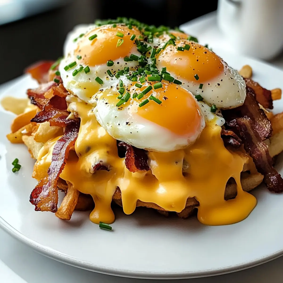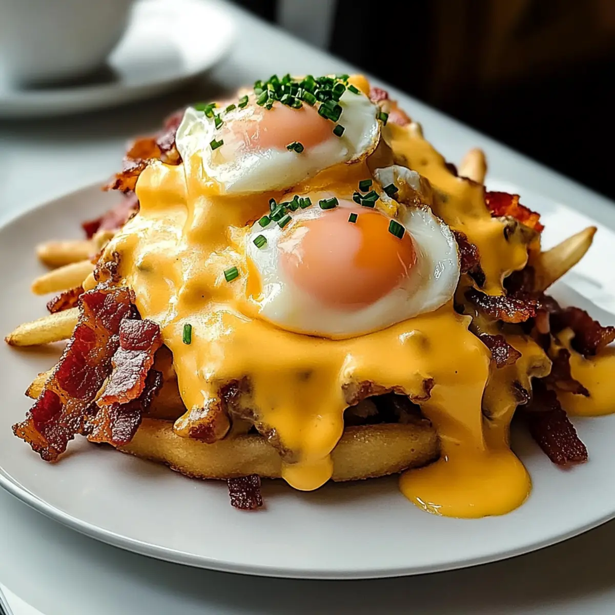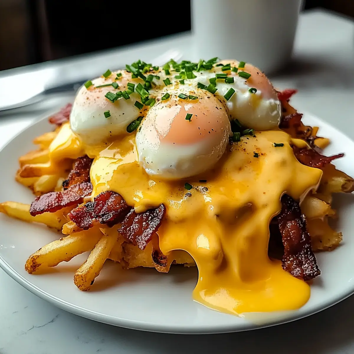 The sun peeked through the curtains, and as I stood in my kitchen, the aroma of sizzling beef bacon and toasty hash browns filled the air. It was time to elevate my breakfast game with this Ultimate Breakfast Poutine with Creamy Hollandaise Sauce—a dish that seamlessly combines the comfort of hearty morning staples into one dazzling plate. This recipe not only brings a sophisticated flair to your brunch table but also allows for delightful customization to suit your taste. With quick prep and enough indulgence to satisfy even the pickiest eaters, it’s the perfect way to kick-start your day or impress guests during lazy weekend mornings. Are you ready to embark on this delicious adventure? Let’s dive in! Why Is This Poutine So Special? Indulgent Experience: This Ultimate Breakfast Poutine takes breakfast to the next level, combining crispy hash browns and savory beef bacon in a single dish that’s sure to impress. Velvety Hollandaise: The rich, creamy Hollandaise sauce adds a layer of sophistication that elevates this comfort food beyond ordinary brunch fare. Customizable: Feel free to get creative! Substitute ingredients or add toppings like sautéed mushrooms or smoked salmon to make it your own. Quick and Convenient: Prep doesn’t take long, making it perfect for busy mornings or last-minute brunch gatherings. Crowd Pleaser: With its delightful combination of flavors and textures, this dish satisfies everyone—from foodies to fussy eaters. Pair it with a refreshing side of fruit or a classic coffee for the ultimate brunch experience! Breakfast Poutine Ingredients Get ready to whip up this mouthwatering Breakfast Poutine with Creamy Hollandaise Sauce! For the Hash Browns Frozen Hash Browns – The base for crispy goodness; fresh parboiled potatoes can also shine here. Olive Oil – Helps achieve that golden crispiness when baking or frying. Salt – Essential for enhancing the overall flavor; season to your liking. Black Pepper – Adds a hint of warmth; adjust based on your taste preference. For the Toppings Beef Bacon – Savory and smoky; swap it out for turkey bacon or sausage for a twist. Shredded Cheddar Cheese – Offers a rich, melty texture; Monterrey Jack works wonderfully too! Shredded Mozzarella Cheese – Gives that gooey stretch; try substituting with fontina if desired. Gravy – Provides moisture and depth; store-bought or homemade will do the trick. Large Eggs – Perfect for poaching, adding richness to each bite. For the Hollandaise Sauce Unsalted Butter – A key player for that creamy consistency; warm it up before mixing. Egg Yolks – Create the luxurious base for this quintessential sauce. Dijon Mustard – Infuses depth and a hint of sharpness into the Hollandaise. Apple Cider Vinegar & Lemon Juice – Adds needed acidity; fresh lemon juice elevates the flavor even more. Cayenne Pepper – Just a pinch adds a lovely kick; adjust for your spice tolerance. Fresh Chives or Parsley – A pop of color and freshness to finish off your dish. Now, you’re all set to dive into creating the ultimate breakfast sensation! Step‑by‑Step Instructions for Ultimate Breakfast Poutine with Creamy Hollandaise Sauce Step 1: Prepare Hash Browns Preheat your oven to 425°F (220°C). Toss frozen hash browns with olive oil, salt, and black pepper in a bowl until evenly coated. Spread the seasoned hash browns on a baking sheet in a single layer. Bake for 20-30 minutes, flipping halfway through, until they are golden brown and crispy. For a quicker option, you can pan-fry them in a skillet over medium heat until crispy. Step 2: Cook Beef Bacon While the hash browns are baking, arrange pieces of beef bacon on a foil-lined baking sheet. Place it in the oven (you can do this at the same time as the hash browns) and bake at 400-425°F (200-220°C) for 15-20 minutes, or until the bacon reaches your desired level of crispiness. Once cooked, remove from the oven, let it cool briefly, and then crumble it into smaller pieces. Step 3: Make Hollandaise Sauce In a double boiler, combine egg yolks, Dijon mustard, apple cider vinegar, and fresh lemon juice. Whisk these ingredients continuously for about 3-5 minutes until they thicken slightly and increase in volume. Gradually drizzle in the warm melted unsalted butter while whisking vigorously until the sauce becomes glossy and smooth. Stir in a pinch of cayenne pepper and a dash of salt for flavor. Step 4: Poach Eggs Fill a pot with water and bring it to a gentle simmer, adding a splash of vinegar to help the eggs keep their shape. Carefully slide in the eggs, two at a time, ensuring not to crowd the pot. Poach the eggs for 3-4 minutes until the whites are set but the yolks remain runny. Use a slotted spoon to gently remove the eggs from the water and set them on a paper towel to drain. Step 5: Assemble Poutine To create your Ultimate Breakfast Poutine, divide the crispy hash browns among serving dishes. Top each portion generously with shredded cheddar and mozzarella cheese, allowing them to melt slightly. Ladle warm gravy over the cheese, followed by the crumbled beef bacon. Finally, place a poached egg on each serving and drizzle with the creamy Hollandaise sauce. Garnish with fresh chives or parsley before serving hot. Make Ahead Options These Ultimate Breakfast Poutine with Creamy Hollandaise Sauce is perfect for busy home cooks who appreciate meal prep! You can prep the hash browns and beef bacon up to 24 hours in advance. Simply bake the hash browns and let them cool completely before storing them in an airtight container in the refrigerator. Cook the beef bacon, crumble it, and refrigerate it as well. For the Hollandaise sauce, it’s best to make it fresh; however, you can whisk together the dry ingredients (egg yolks, mustard, vinegar, and lemon juice) and refrigerate them up to 3 days ahead. When ready to serve, reheat the hash browns and bacon in the oven or skillet until hot, then quickly poach your eggs and assemble for a d