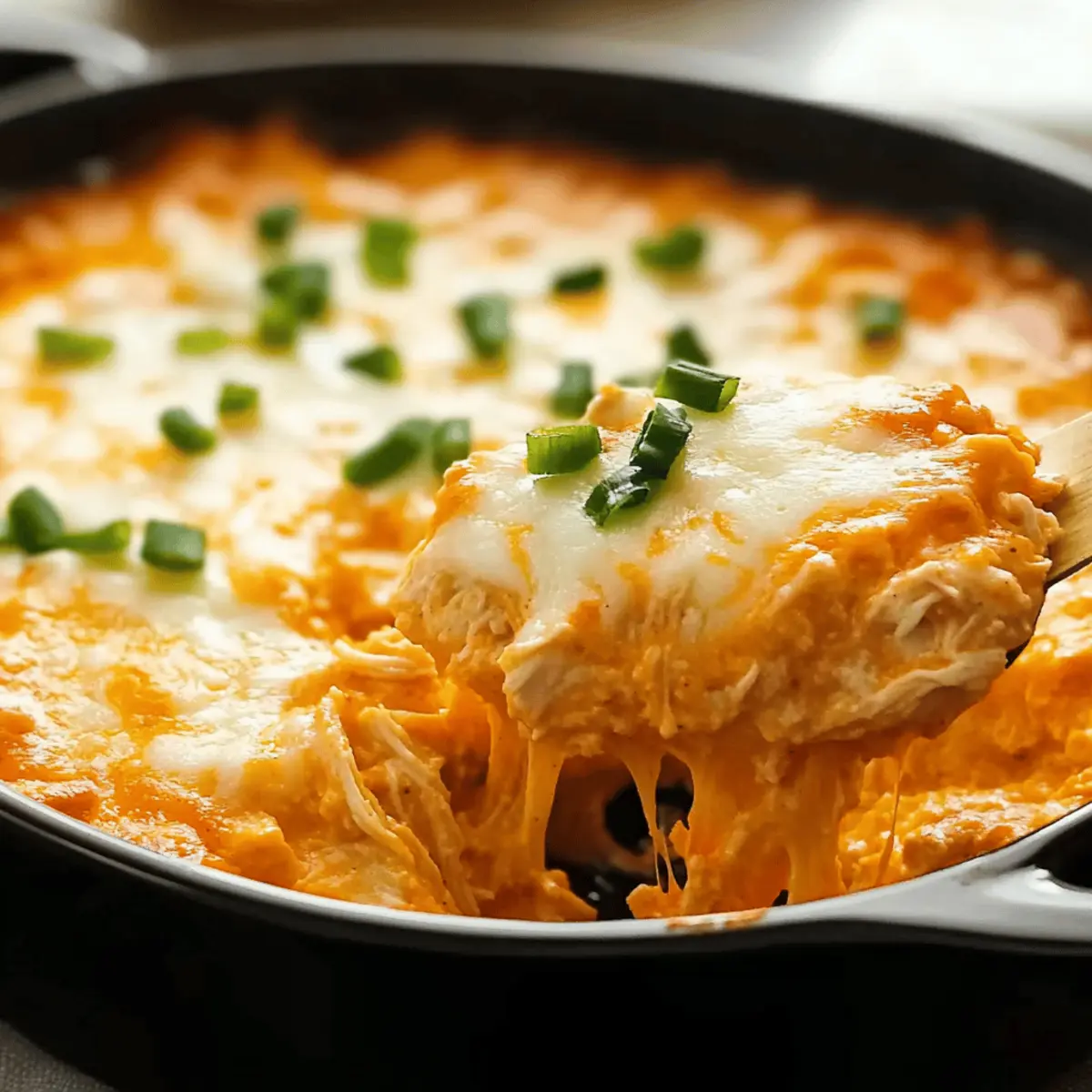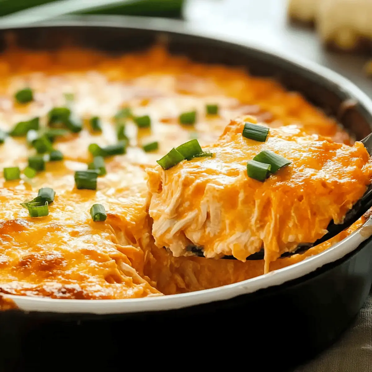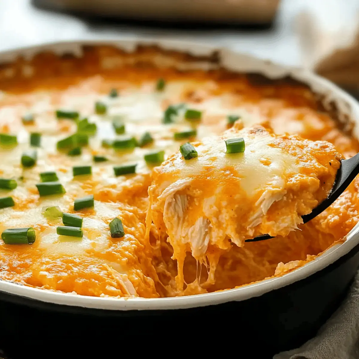 As the crowd roars in excitement, the perfect dish to satisfy every craving comes to mind: Buffalo Chicken Dip. This game-day favorite combines creamy goodness with just the right amount of spice, captivating taste buds and creating unforgettable moments. What I love most about this indulgent appetizer is its incredible versatility—you can easily customize it to fit your preferences, whether you’re in the mood for extra heat or a lighter version using Greek yogurt. Plus, it’s a breeze to whip up, making it a lifesaver for impromptu gatherings or busy weeknights. How do you like to enjoy your Buffalo Chicken Dip? Let’s dive into this delicious recipe that will surely steal the show! Why is Buffalo Chicken Dip a Must-Try? Crowd-Pleasing Flavor: This Buffalo Chicken Dip is a savory explosion of creamy and spicy goodness that will make your taste buds dance. Endless Customization: Whether you prefer it mild with ranch or fiery with additional hot sauce, this dip adapts to fit every palate. Quick & Easy Preparation: With just a few simple steps, you can have this showstopper ready to serve in under 30 minutes, making it perfect for spontaneous gatherings. Perfect Game-Day Snack: It’s a popular choice for game days, ensuring your guests will keep coming back for more. Delicious Dipping Options: Serve it alongside crunchy tortilla chips or fresh veggies for a delightful contrast in textures. This is a dip that’s bound to wow your friends, just like my Cheesy Chicken Enchiladas or Mango Chicken Stir Fry! Buffalo Chicken Dip Ingredients • To create this creamy, spicy delight, gather the following essentials: For the Base Cream Cheese – Provides a rich, creamy foundation; substitute with Greek yogurt for a lighter Buffalo Chicken Dip. Ranch Dressing or Blue Cheese Dressing – Adds tang and depth to the flavor; opt for homemade for extra freshness. For the Filling Shredded Chicken – Boosts protein content and heartiness; consider using rotisserie chicken for convenience. Hot Sauce – Delivers the spice; customize the amount to suit your heat preference. For the Cheesy Goodness Shredded Cheddar Cheese – Offers a delightful cheesy texture; mix in other cheeses like mozzarella for variety. For Garnishing Chopped Green Onions – Brings a pop of color and a mild onion flavor; feel free to omit for a simpler upgrade. Step‑by‑Step Instructions for Buffalo Chicken Dip Step 1: Preheat the Oven Begin by preheating your oven to 350°F (175°C). This temperature is perfect for achieving that bubbly, golden top on your Buffalo Chicken Dip. While the oven warms up, prepare your baking dish; a 9×9-inch dish works wonderfully for this recipe. Step 2: Mix the Base In a large mixing bowl, combine softened cream cheese with ranch dressing or blue cheese dressing, blending together until the mixture is smooth and creamy. Use a hand mixer or a spatula for easy incorporation. Take a moment to admire this luscious base before moving on! Step 3: Add the Chicken and Sauce Next, fold in the shredded chicken, ensuring it’s well mixed with the creamy base. Drizzle in your desired amount of hot sauce, adjusting the heat level to your liking. Stir until evenly combined, creating a beautiful blend of flavors for your Buffalo Chicken Dip. Step 4: Incorporate the Cheese Now, add the shredded cheddar cheese to the mixture. Gently stir this in to achieve a uniform cheesy goodness throughout the dip. The melted cheese will add a delightful texture that makes this appetizer so irresistible! Step 5: Transfer to Baking Dish Carefully transfer the dip mixture into your prepared baking dish. Spread it out evenly using a spatula, ensuring every corner is filled. This step is key to achieving that perfect bubbly bake in the oven. Step 6: Bake to Perfection Place your baking dish into the preheated oven and bake for 20 to 25 minutes. You’ll know it’s done when the edges are bubbly and the top has turned a lovely golden brown. The aroma will fill your kitchen, signaling that your Buffalo Chicken Dip is almost ready! Step 7: Garnish and Serve Once baked, remove the dish from the oven and let it cool for a few minutes. If desired, sprinkle chopped green onions on top for added color and freshness. Serve warm with crunchy tortilla chips or fresh veggies, and watch as everyone devours this creamy, spicy delight! Expert Tips for Buffalo Chicken Dip Pre-Prep Perfection: Mix the ingredients in advance and refrigerate for a few hours or overnight to let the flavors meld beautifully before baking your Buffalo Chicken Dip. Slow Cooker Option: For easy hosting, consider using a slow cooker on low for 2-3 hours. This keeps your dip warm and gooey throughout the gathering. Customize Heat Levels: Adjust the spiciness of the dip by varying the hot sauce. If you’re unsure, start with a small amount and taste as you go to find your perfect heat! Smooth Reheating: If your dip thickens after cooling, simply stir in a splash of milk before reheating. This will help restore that creamy texture everyone loves. Freshness Matters: Using homemade ranch or blue cheese dressing enhances the overall flavor. It’s a simple swap that truly makes a difference! What to Serve with Buffalo Chicken Dip? Elevate your game-day experience by pairing this scrumptious dip with an array of delightful sides that will leave everyone wanting more. Crunchy Tortilla Chips: The perfect vehicle for dipping, these provide a satisfying crunch that complements the creamy texture of the dip. Fresh Veggie Sticks: Carrots, celery, and bell peppers not only add color but also bring refreshing crispness—perfect for balancing the dip’s spiciness. Mini Naan or Pita Bread: Soft and chewy, these provide a unique alternative for dipping, letting you scoop up every delicious morsel with ease. Creamy Coleslaw: A cool and tangy slaw can enhance each bite, offering a delightful contrast to the spicy, warm dip. Loaded Potato Skins: These hearty bites filled with melt