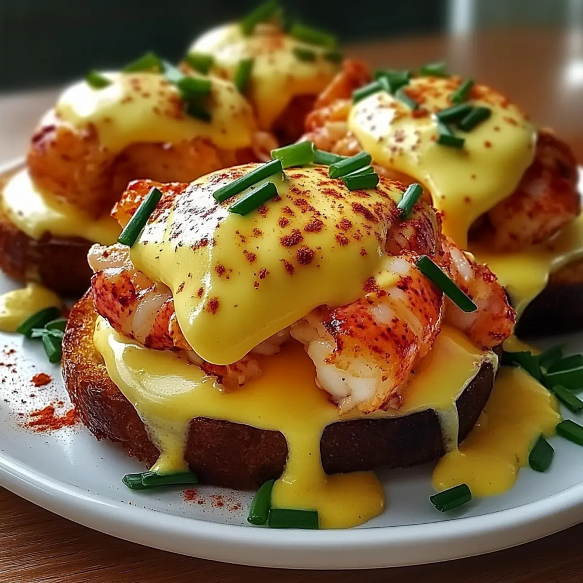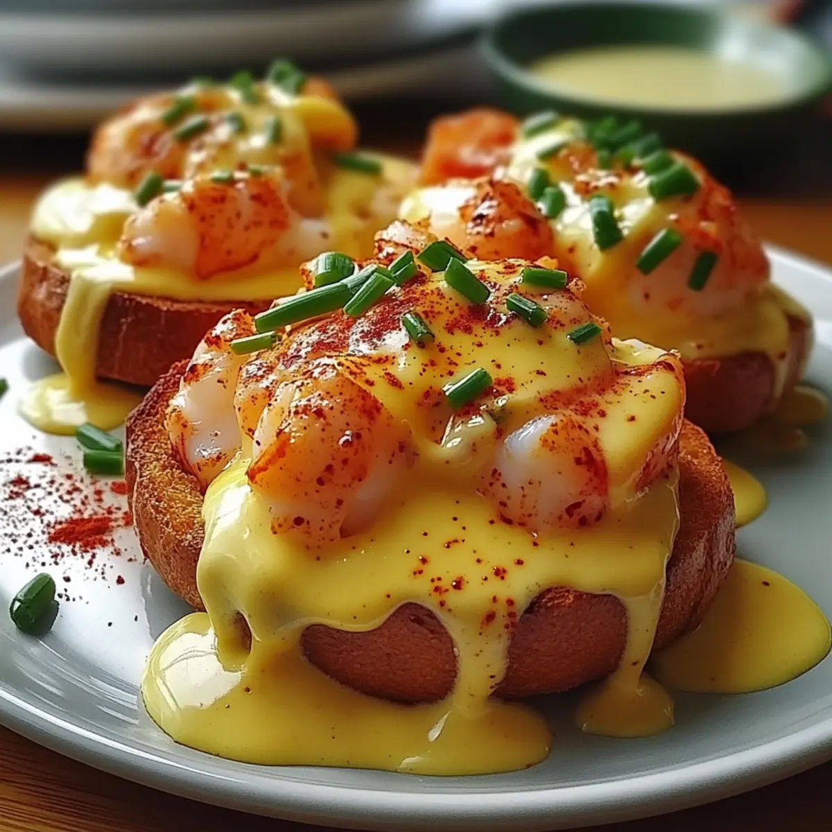 With the weekend approaching, it’s the perfect time to elevate your brunch game. Enter my Cajun Lobster Eggs Benedict with Spicy Hollandaise—a luxurious twist on the beloved classic that transforms your breakfast into a culinary celebration. Picture sweet, succulent lobster nestled atop perfectly poached eggs, all resting on golden toasted brioche, crowned with a zesty hollandaise that packs just the right amount of heat. Not only is this dish a true crowd-pleaser, but it’s also surprisingly easy to whip up in your kitchen! Whether you’re impressing guests or treating yourself, this indulgent meal is sure to become a cherished favorite. Are you ready to dive into this flavorful fusion? Why is this recipe a must-try? Luxurious Elegance: Impress your guests with your culinary skills through this stunning dish that elevates classic brunch flavors. Easy to Make: With straightforward steps, you’ll have a gourmet meal in no time, making it perfect for both novice and seasoned cooks. Flavor Fusion: The combination of sweet lobster and zesty Cajun-spiced hollandaise creates a unique taste experience that’s truly unforgettable. Crowd Pleaser: Whether it’s a holiday gathering or a casual weekend brunch, this Cajun Lobster Eggs Benedict will undoubtedly wow your family and friends. Customizable: Feel free to swap in crab or shrimp for the lobster, or add toppings like avocado for an added twist! You can also check out other delightful seafood options like Cajun Shrimp Boil for more inspiration. Cajun Lobster Eggs Benedict Ingredients For the Lobster • Lobster Tail Meat – Sweetness and richness. Frozen lobster tails can be used if fully thawed. For the Eggs • Eggs – Structure and creaminess for poaching. Fresh eggs are ideal for poaching consistency. • White Vinegar – Helps coagulate egg whites when poaching. Essential for optimal poaching results. For the Base • Brioche Buns/Slices – Base for the dish, providing a buttery texture. Can substitute with English muffins or sourdough for sturdiness. For the Hollandaise Sauce • Egg Yolks – Core component of hollandaise, providing richness. • Lemon Juice – Adds acidity to balance flavors in hollandaise. • Unsalted Butter – Core ingredient for rich hollandaise; creates creaminess. • Cajun Seasoning – Adds spice and depth to hollandaise. Adjust quantity to control heat. For Garnish • Chopped Fresh Chives – For garnish, adds flavor and color. • Cayenne Pepper – Optional heat for garnish. Use according to taste preference. Step‑by‑Step Instructions for Cajun Lobster Eggs Benedict with Spicy Hollandaise Step 1: Cook Lobster Begin by bringing a large pot of salted water to a boil. Add the lobster tails and cook for about 5-7 minutes until the shells turn bright red and the meat is opaque and tender. Carefully remove the tails, allowing them to cool slightly before chopping the meat into bite-sized chunks. Set aside while you prepare the rest of your Cajun Lobster Eggs Benedict. Step 2: Prepare Brioche Slice the brioche into thick pieces and heat a skillet over medium heat. Add a generous pat of butter and toast each side of the brioche until golden brown and crispy, about 2-3 minutes per side. Keep the toasted brioche warm on a plate covered with a kitchen towel, ready to support the delicious layers of your eggs benedict. Step 3: Poach Eggs In a separate pot, bring water to a gentle simmer and add a splash of white vinegar. Crack one egg into a small bowl, then carefully slide it into the simmering water. Poach for about 3-4 minutes until the whites are set, yet the yolk remains soft. Use a slotted spoon to gently lift out the poached egg, allowing excess water to drain off. Repeat this process until you have poached all the eggs for your Cajun Lobster Eggs Benedict. Step 4: Make Hollandaise Set up a double boiler or a heatproof bowl over a pot of simmering water. In the bowl, whisk together the egg yolks and lemon juice until thick and creamy, about 5 minutes. Gradually drizzle in the melted unsalted butter while whisking continuously to create a smooth hollandaise sauce. Add Cajun seasoning to taste, and whisk until fully combined. Remove the sauce from heat, keeping it warm. Step 5: Assemble To assemble your Cajun Lobster Eggs Benedict, take a slice of toasted brioche and layer it with generous spoonfuls of the lobster chunks. Gently place a poached egg on top. Spoon the spicy hollandaise generously over the eggs, allowing it to cascade down the sides, creating a beautiful presentation. Step 6: Garnish and Serve Finish off your magical dish by sprinkling chopped fresh chives and a pinch of cayenne pepper for an extra kick. Serve your Cajun Lobster Eggs Benedict immediately while everything is warm and delicious, perfect for impressing your family or guests at brunch. Expert Tips for Cajun Lobster Eggs Benedict • Fresh Ingredients: Use fresh lobster and eggs for the best flavor. Thaw frozen lobster fully before cooking to ensure a tender result. • Poaching Perfection: Always add vinegar to your poaching water; it helps the egg whites coagulate properly while keeping your eggs beautifully shaped. • Constant Whisking: When making hollandaise, whisk continuously to prevent it from curdling—the sauce should be creamy and smooth. • Prep Ahead: Consider poaching eggs in advance—store them in cold water in the fridge. Reheat in hot water for a quick assembly later. • Personalize Flavor: Adjust the Cajun seasoning in your hollandaise to suit your taste; add less for a milder flavor or more for a spicier kick! Cajun Lobster Eggs Benedict Variations Embrace the joy of cooking by making this dish your own with fun and delicious twists! Seafood Swap: Replace lobster with crab meat or shrimp for a delightful change. Both options maintain the luxurious feel! Bread Options: Use sourdough rolls or even bagels instead of brioche for a different texture that still holds up beautifully. Spice it Up: Add sm