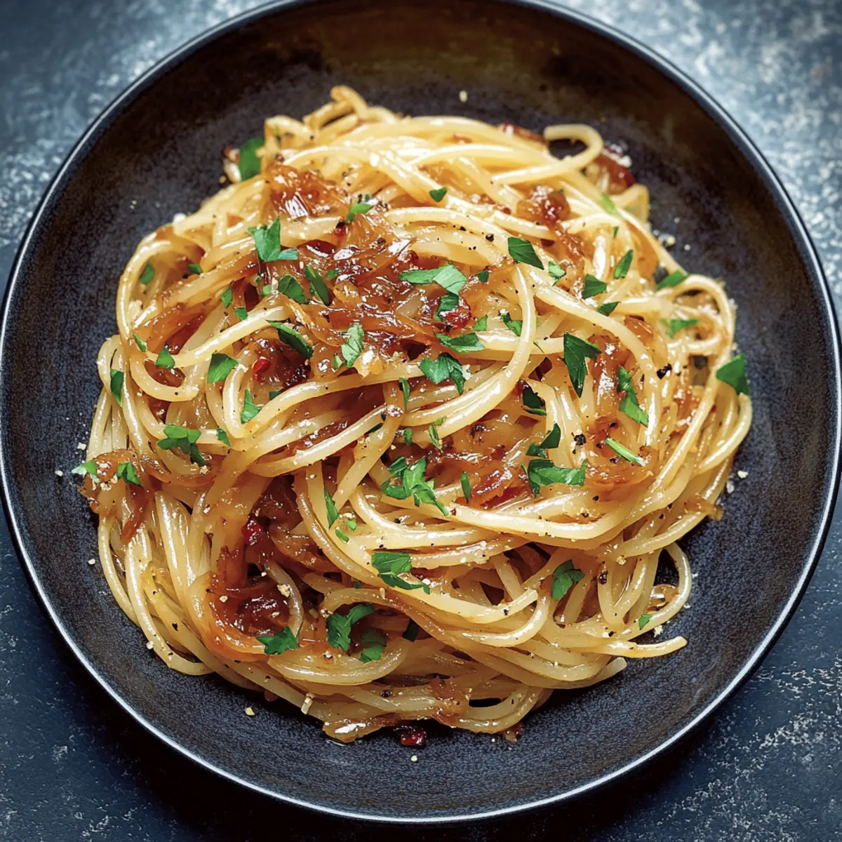As I flicked through my favorite cookbooks, a page caught my eye: the ultimate comfort dish, Caramelized Onion Pasta with Chilli Oil. This delightful creation blends the sweet richness of caramelized onions with a spicy kick from homemade chili oil, offering a cozy embrace that both warms the heart and tantalizes the taste buds. Designed to impress yet easy enough for a quick weeknight dinner, this vegetarian-friendly recipe allows you to adjust the heat to your liking. Perfect for those evenings when you crave something simple yet sophisticated, let’s dive in and discover how this dish can transform a regular meal into something extraordinary. Are you ready to elevate your pasta game? Why is this pasta recipe a must-try? Simplicity: This recipe offers straightforward steps, making it ideal for both novice cooks and professional chefs alike. Rich Flavor: The deep, sweet notes from the caramelized onions combined with the spicy warmth of homemade chilli oil create a symphony of flavors that will leave your taste buds dancing. Crowd-Pleasing: Perfect for gatherings, this dish is sure to impress family and friends, making you the star of any dinner table. Customizable: Adjust the spice level to fit your preference; whether you like it mild or fiery, this recipe has you covered. Quick Prep Time: With just a handful of ingredients and about 30 minutes to make, it’s an easy weeknight dinner option that doesn’t skimp on flavor—like a delightful combo of our Tomato Bacon Pasta and the Chilli Chicken Master. This Caramelized Onion Pasta with Chilli Oil is not just a meal; it’s an experience waiting to happen! Caramelized Onion Pasta with Chilli Oil Ingredients For the Pasta • Olive Oil – Adds richness and depth; feel free to substitute with any neutral vegetable oil if needed. • Butter – Used for flavor and texture; can be omitted for a vegan version or swapped with a vegan butter alternative. • Pasta – The base of the dish; long pasta like spaghetti or fettuccine works nicely, while short shapes like penne are also great. For the Caramelized Onions • Onions – The star ingredient that caramelizes into sweetness; yellow or sweet onions like Vidalia are preferred. • Salt – Enhances flavors and aids in caramelization, ensuring those onions get that lovely golden hue. • Sugar (optional) – Speeds up the caramelization process; can be omitted if you prefer a natural sweetness. For the Chilli Oil • Garlic – Adds aromatic flavor to the chilli oil; fresh garlic is best, but dried can work in a pinch. • Chili Flakes – Provides the spicy kick in the dish; adjust the amount based on your desired heat level, removing seeds for milder oil. • Smoked Paprika (optional) – Adds depth and smokiness to the chilli oil; can be left out if you prefer a milder flavor. For Serving • Grated Parmesan Cheese (optional) – Adds nutty flavor and richness; omit for a vegan dish or use plant-based alternatives. • Fresh Parsley – A lovely garnish that adds a pop of color and fresh flavor to the dish. This Caramelized Onion Pasta with Chilli Oil is simple yet delightful, promising a comforting meal that you’ll want to enjoy again and again! Step‑by‑Step Instructions for Caramelized Onion Pasta with Chilli Oil Step 1: Caramelize the Onions In a large skillet, heat 2 tablespoons of olive oil and 1 tablespoon of butter over medium heat. Once melted and shimmering, add 2 finely sliced yellow onions along with a pinch of salt. Cook slowly for 25-30 minutes, stirring occasionally, until the onions turn golden brown and achieve a jam-like consistency. Step 2: Enhance Caramelization To deepen the flavor of your Caramelized Onion Pasta with Chilli Oil, stir the onions every 5-7 minutes, allowing them to develop their sweetness without burning. If desired, sprinkle 1 teaspoon of sugar to speed up the caramelization process, and season with additional salt and pepper to taste. Step 3: Prepare Chilli Oil While the onions are caramelizing, grab a small saucepan and pour in 1/4 cup of olive oil. Heat over low flame and add 3 minced garlic cloves, sautéing until fragrant—about 2 minutes. Carefully stir in 1 teaspoon of chili flakes and 1/2 teaspoon of smoked paprika, allowing the oil to infuse its flavors as it cools. Step 4: Cook the Pasta In a large pot, bring salted water to a rolling boil, then add 12 ounces of long pasta such as spaghetti or fettuccine. Cook according to package instructions until al dente, about 8-10 minutes, then reserve 1 cup of pasta water before draining the remaining water. Step 5: Combine Ingredients In the skillet with the caramelized onions, add the drained pasta and toss together over medium heat. Gradually mix in the reserved pasta water, a bit at a time, until the pasta reaches a silky consistency that clings to the caramelized onions. Step 6: Incorporate Chilli Oil Drizzle the fragrant chilli oil over the pasta, tossing to evenly distribute the spice. Taste and adjust the seasoning with salt and pepper as needed, ensuring each bite of your Caramelized Onion Pasta with Chilli Oil is packed with flavor. Step 7: Serve Plate your delicious Caramelized Onion Pasta with Chilli Oil and garnish with freshly chopped parsley and a sprinkle of grated Parmesan cheese, if desired. Serve immediately, allowing guests to add extra chilli oil on the side for an added kick! What to Serve with Ultimate Caramelized Onion Pasta with Chilli Oil Create a delightful dining experience with these comforting side dishes and drink pairings that balance the rich flavors of this pasta. Garlic Bread: Crispy on the outside and warm on the inside, garlic bread is a classic that complements the sweetness of the caramelized onions beautifully. Its buttery garlicky flavor adds an additional layer of comfort. Mixed Green Salad: A light and fresh salad with a tangy vinaigrette contrasts the savory pasta, providing a refreshing crunch. Incorporate seasonal veggies for texture and vibrant