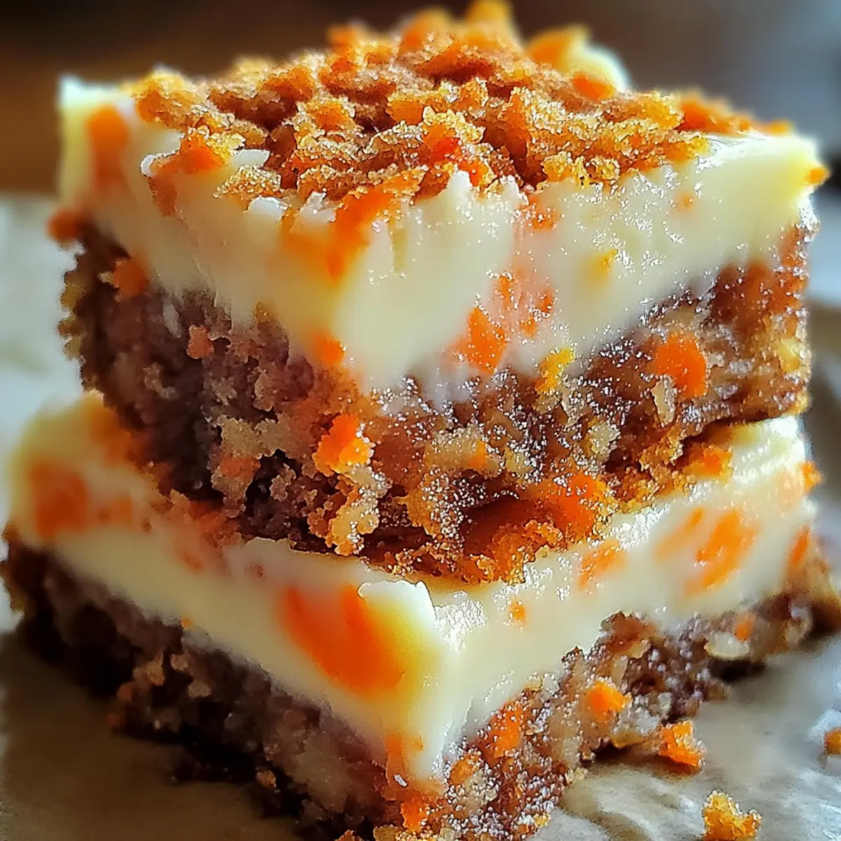 Very! If your Carrot Cake Cream Cheese Bars turn out dense, it’s often due to overmixing the batter. Make sure to gently fold the ingredients until just combined. Also, check that you’re using fresh ingredients, especially the carrots, for the best moisture. If you find it’s too dry, add a touch more butter or a splash of milk next time.