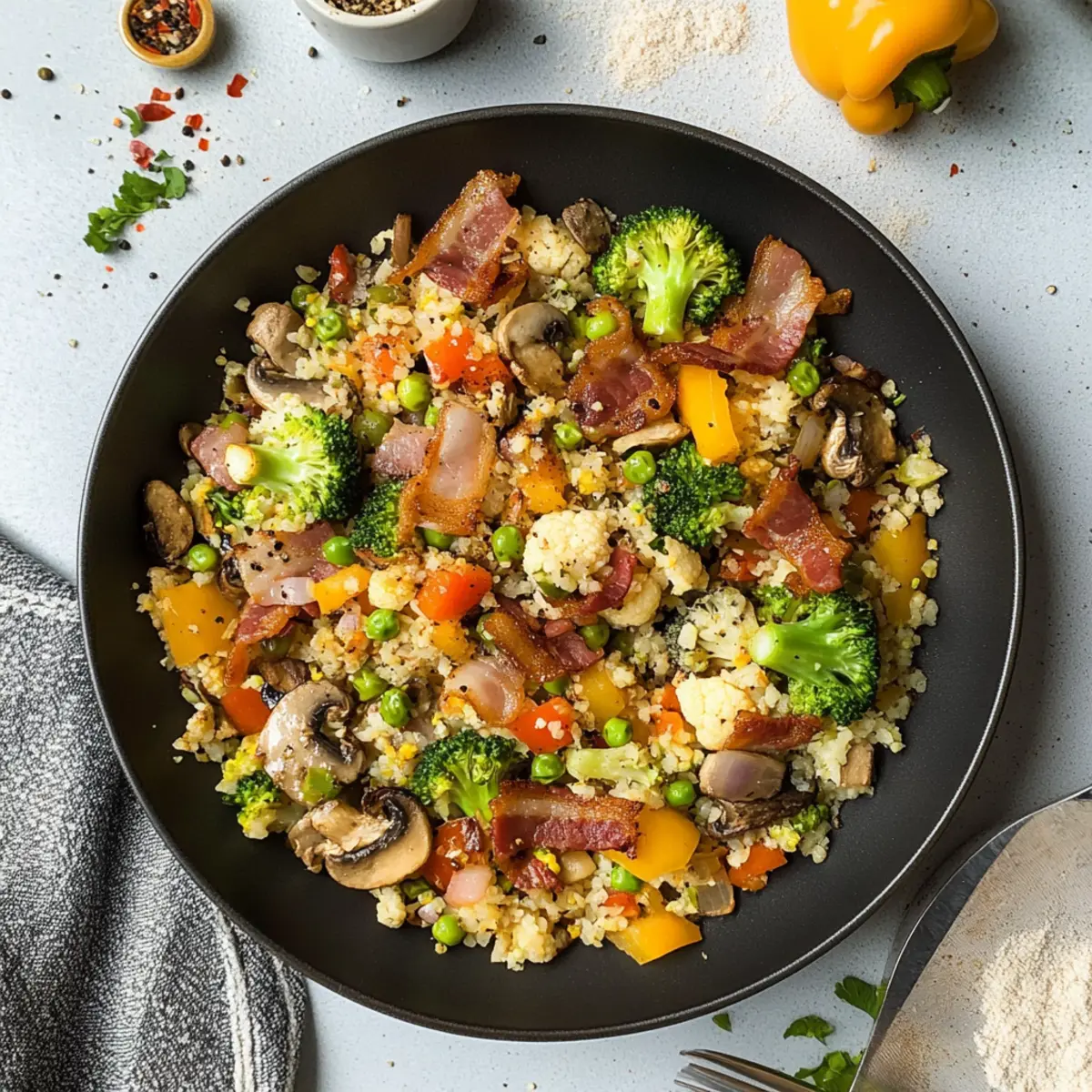Absolutely! To make this dish vegan, simply omit the bacon and the eggs. Instead, consider adding plant-based proteins like tofu or chickpeas for extra substance. You can also up the vegetables to add more nutrients and flavor. Cooking with olive or coconut oil will keep it deliciously satisfying!