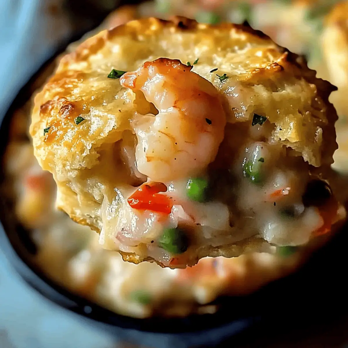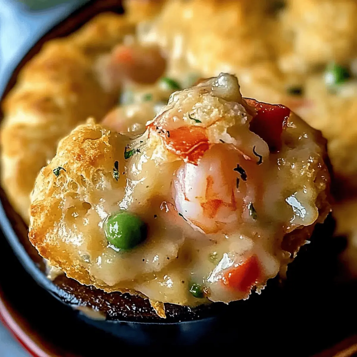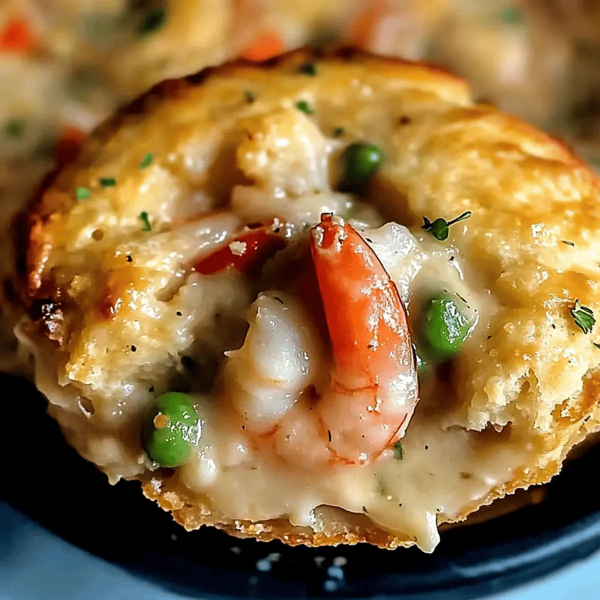 As I stood in my kitchen, the tantalizing aroma of baking biscuits reached me, delivering a comforting wave of nostalgia. It’s that magical moment when Cheddar Bay biscuits meet a creamy seafood filling, creating the irresistible Cheddar Bay Biscuit Seafood Pot Pie. This cozy dish is not just about comfort food; it’s a quick meal to throw together on those busy weeknights when you crave something satisfying yet effortless. With just a handful of ingredients, you can whip up a homemade feast that all your family and friends will adore. Get ready to dig into a warm, flaky pot pie that perfectly blends rich flavors and delightful textures. So grab your rolling pin and stay tuned—your next favorite meal is just a few steps away! Why is this pot pie a must-try? Comforting Combination: The marriage of Cheddar Bay biscuits and a creamy seafood filling creates a warm embrace for your taste buds. Quick and Easy: Perfect for busy weeknights, this recipe comes together in no time, making it an ideal choice for spontaneous dinners. Crowd-Pleasing Flavor: It’s the ultimate comfort food that even picky eaters will love, turning any meal into a special occasion. Versatile Ingredients: Feel free to mix it up with different seafood or even vegetables, making it your own unique dish. Pair it with a refreshing side like a simple green salad or try it alongside a comforting Crock Pot Teriyaki Chicken for a delightful feast! Cheddar Bay Biscuit Seafood Pot Pie Ingredients For the Seafood Filling • 1 cup cooked shrimp – Provides protein and seafood flavor; you can also substitute with cooked scallops for a delightful twist. • 1 cup crab meat – Adds sweetness and richness; consider using canned crab for easy preparation. • 1 cup frozen peas and carrots blend – Offers color and nutrition; fresh vegetables can be used for a fresher taste, just note they’ll need extra cooking time. • 1/2 cup diced celery – Contributes a nice crunch; feel free to swap with diced bell pepper for a sweeter flavor. • 1/4 cup diced onion – Enhances the overall flavor profile; shallots can be used if you prefer a milder taste. • 2 tablespoons butter – Used for sautéing vegetables; olive oil serves as a great dairy-free alternative. • 3 tablespoons all-purpose flour – Essential for thickening your sauce; gluten-free flour can be a suitable substitute. • 1 cup seafood broth – Adds depth of flavor; chicken broth works well if seafood isn’t on hand. • 1 cup heavy cream – Ensures a rich and creamy filling; half and half can lighten it up if desired. • 1 teaspoon garlic powder – Enhances the overall flavor; you could replace it with 1 clove of fresh minced garlic for more freshness. • 1 teaspoon Old Bay seasoning – A classic seafood seasoning; consider a mix of paprika and cayenne for an exciting flavor change. • Salt and pepper to taste – Critical for seasoning your dish. For the Biscuit Topping • 1 box of refrigerated Cheddar Bay Biscuits – The star of the pot pie; homemade biscuit dough can also be used if you’re feeling adventurous. • 1 cup shredded cheddar cheese – Adds melting goodness; swap for a dairy-free cheese if necessary. Step‑by‑Step Instructions for Cheddar Bay Biscuit Seafood Pot Pie Step 1: Preheat Oven Begin by preheating your oven to 375°F (190°C) to prepare for baking the Cheddar Bay Biscuit Seafood Pot Pie. This initial step ensures your pot pie cooks evenly, giving the biscuits a golden-brown top. While the oven heats, you can get started on the filling. Step 2: Sauté Vegetables In a skillet over medium heat, melt 2 tablespoons of butter. Once the butter is bubbling, add 1/4 cup diced onion and 1/2 cup diced celery, sautéing until they are soft and translucent, about 5 minutes. This will create a fragrant base for the creamy filling. Step 3: Make Roux Sprinkle 3 tablespoons of all-purpose flour over the sautéed vegetables, stirring constantly for 1-2 minutes until combined. This roux will help thicken your filling. You’ll know it’s ready when the mixture forms a paste and turns a light golden color. Step 4: Add Liquids Gradually whisk in 1 cup of seafood broth followed by 1 cup of heavy cream, stirring continuously until the sauce is smooth and thickens, about 3-5 minutes. The mixture will start to bubble gently, indicating it’s ready for seasoning. Step 5: Season Filling Stir in 1 teaspoon of garlic powder, 1 teaspoon of Old Bay seasoning, and adjust with salt and pepper to taste. Allow the filling to simmer for another 2 minutes so the flavors meld beautifully, transforming your pot pie into a comforting seafood delight. Step 6: Incorporate Seafood Fold in 1 cup of cooked shrimp, 1 cup of crab meat, and a 1 cup frozen peas and carrots blend into the creamy filling. Gently mix until everything is well combined, then remove the skillet from heat, letting the flavors meld as you prepare for the next step. Step 7: Transfer to Dish Pour the prepared seafood filling into a 9-inch pie dish, spreading it evenly across the bottom. This base will cradle the delicious mixture, preparing it for the flaky biscuit topping. Make sure to pack down slightly for even cooking. Step 8: Prepare Biscuits Follow the package instructions for your refrigerated Cheddar Bay Biscuits, mixing in 1 cup of shredded cheddar cheese for extra flavor. The dough should be soft and ready to spoon over your seafood filling, providing that signature top layer of goodness. Step 9: Top Filling Spoon the biscuit dough evenly over the seafood filling, creating little dollops that cover it completely. This will ensure every bite has that lovely Cheddar Bay biscuit flavor. The filling will peek through the gaps, hinting at the deliciousness below. Step 10: Bake Place the pie dish in the oven and bake for 30-40 minutes, or until the biscuit topping is golden brown and cooked through. You’ll know it’s ready when the biscuits are puffed and a deep golden color, filling your ki