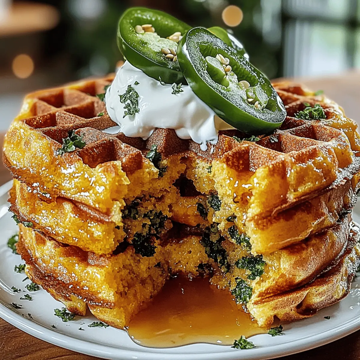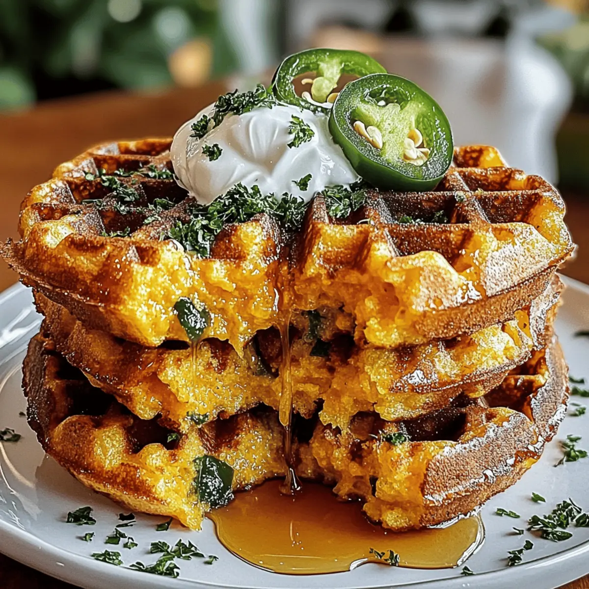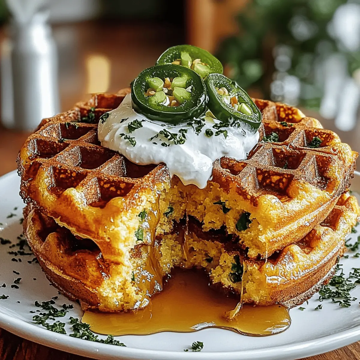 These Cheddar Jalapeño Cornbread Waffles offer a delightful blend of savory flavors with a spicy twist, perfect for breakfast or as a side dish.