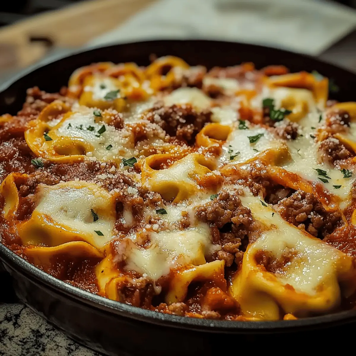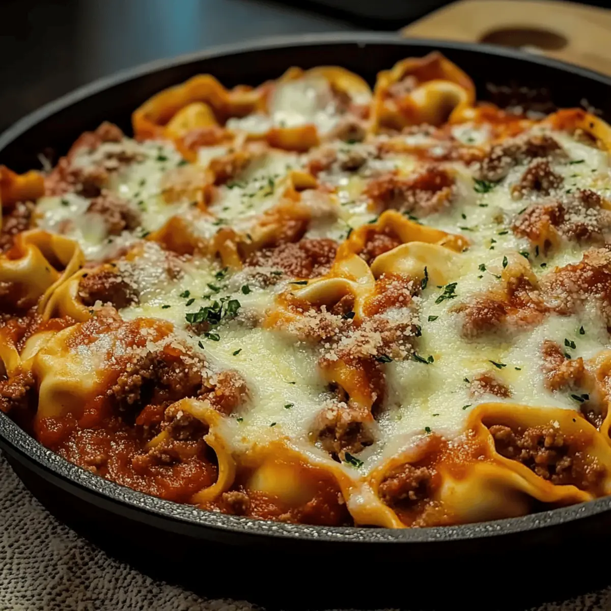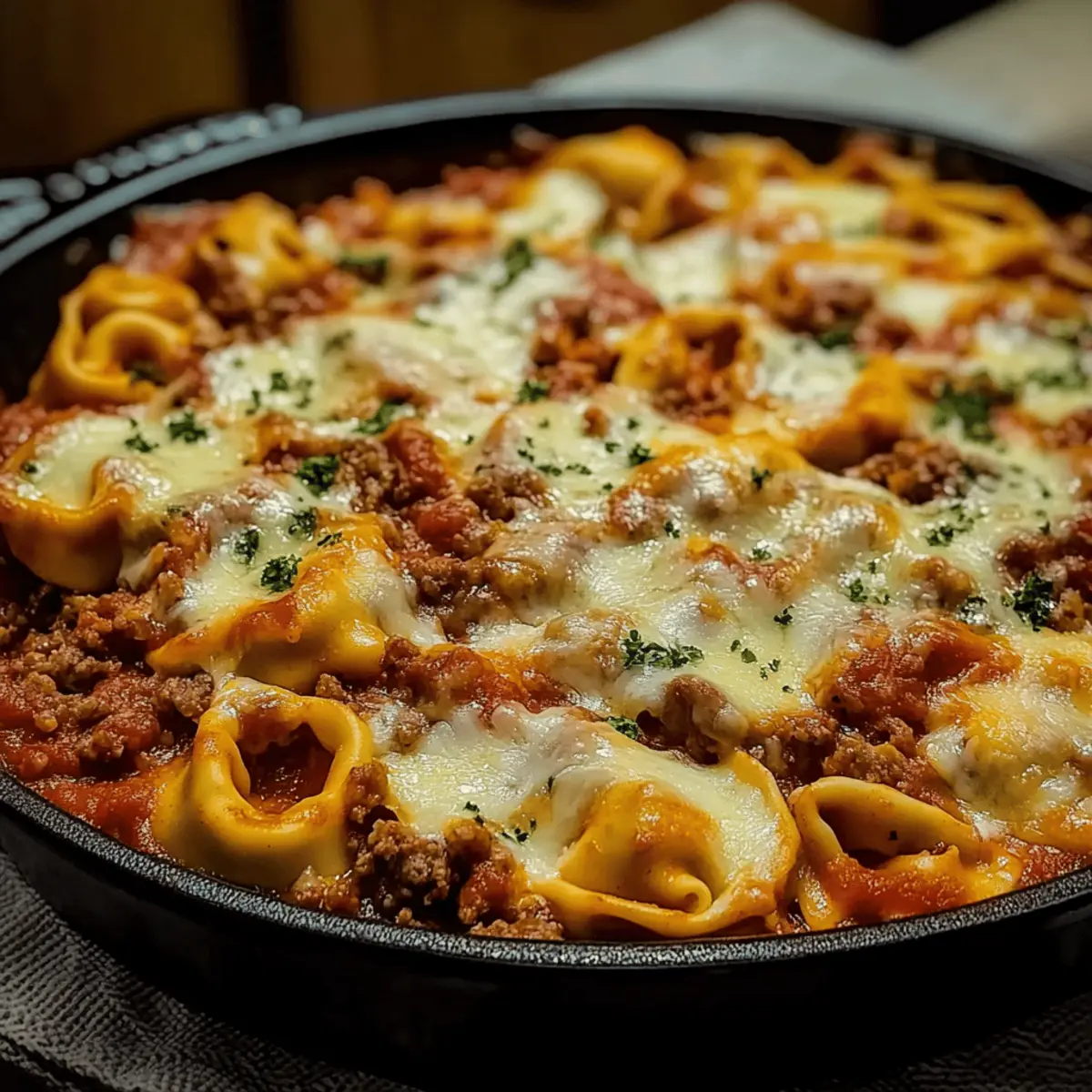 The other night, as I rummaged through my pantry, I stumbled upon a treasure trove of cheese-filled tortellini just waiting to shine in a dish. That’s when I decided to whip up my delightful Cheesy Beef Tortellini Bake. This one-dish meal perfectly marries savory ground beef with rich marinara sauce, all layered under a gooey coat of melted cheese. It’s not only a breeze to prepare in under 30 minutes, making it ideal for hectic weeknights, but it also offers a comforting embrace that every family craves. Plus, with easy variations like swapping in turkey or adding your favorite veggies, this recipe is about to become your go-to solution for stress-free home cooking. Ready to dive into a plateful of cheesy goodness? Why Is This Bake So Irresistible? Simplicity at Its Finest: This Cheesy Beef Tortellini Bake requires minimal effort, making it perfect for busy weeknights when time is scarce. Comforting Flavors: The rich combination of ground beef, tangy marinara, and gooey cheese creates a warm, hearty dish that the whole family will adore. Versatile Ingredients: Easily customize the recipe with ground turkey or even sausage for different flavor profiles. You can also sneak in some sautéed veggies for a nutrition boost! Quick and Easy Prep: With just one baking dish required and under 30 minutes from start to finish, you can enjoy homemade goodness without the hassle. Crowd-Pleasing Appeal: This one-dish wonder is sure to impress whether you’re hosting friends or enjoying a cozy family dinner. Pair it with a fresh salad or garlic bread for a meal that’s easy and delicious! Make-Ahead Friendly: Prepare it in advance to make your busy days even easier—assemble ahead of time and simply pop it in the oven when it’s time to eat. Cheesy Beef Tortellini Bake Ingredients An essential list for cheesy goodness! For the Meat Sauce Ground Beef – Provides protein and a savory base. Use extra-lean beef to reduce fat. Yellow Onion – Adds sweetness and depth to the dish. Substitute with shallots if preferred. Garlic Cloves – Enhances flavor and aroma. Fresh garlic is recommended for the best results. Italian Seasoning – Infuses a blend of herbs for a classic Italian flavor. Dried herbs can be substituted, but fresh is ideal. Salt – Enhances overall flavor. Adjust to taste if using salted marinara. Black Pepper – Adds warmth and slight heat. Freshly ground preferred for better flavor. Marinara Sauce – The sauce base for the dish. Opt for a quality brand with no added sugars, or homemade if available. For the Tortellini Bake Refrigerated Cheese Tortellini – Main pasta element, providing a cheesy bite. Can substitute with frozen tortellini, boiling them slightly longer. Shredded Mozzarella Cheese – Creates a gooey, melty topping. Use whole milk mozzarella for optimal meltiness. Grated Parmesan Cheese – Adds a salty, nutty flavor. Substitute with Pecorino Romano for a stronger taste. Fresh Parsley (optional) – For garnish and added freshness. Omit if not available. Feel free to explore variations with this Cheesy Beef Tortellini Bake to make it your own! Step‑by‑Step Instructions for Cheesy Beef Tortellini Bake Step 1: Preheat and Prepare Begin by preheating your oven to 375°F (190°C) and greasing a 9×13-inch baking dish lightly with cooking spray or olive oil. This early step ensures the Cheesy Beef Tortellini Bake will not stick and will cook evenly, resulting in a delightful crust on top. Step 2: Brown the Meat In a large skillet over medium heat, add your ground beef and diced yellow onion. Cook for 6-8 minutes, stirring occasionally, until the beef is browned and the onion is tender. Drain any excess grease to keep your bake less greasy, allowing for a richer flavor from the meat. Step 3: Flavor the Mixture Add minced garlic, Italian seasoning, salt, and freshly ground black pepper to the skillet. Stir and cook for about 1 minute, or until the garlic releases its fragrant aroma. This step infuses the flavor into the meat, setting a delicious foundation for your Cheesy Beef Tortellini Bake. Step 4: Simmer the Sauce Pour in your marinara sauce and stir to combine. Allow the sauce to simmer for 5 minutes over low heat, stirring occasionally. This simmering allows the flavors to meld beautifully, enhancing the overall taste of your dish and creating a savory sauce for the pasta. Step 5: Cook the Tortellini In a pot of boiling salted water, cook the refrigerated cheese tortellini for 2-3 minutes or until they begin to float. Drain them thoroughly to avoid excess moisture in your Cheesy Beef Tortellini Bake. This brief cooking ensures they’re al dente and ready to soak up the sauce without becoming mushy. Step 6: Combine Tortellini and Sauce Add the cooked tortellini to the skillet with the meat sauce. Gently stir to ensure every piece of tortellini is coated in the rich, savory mixture. This step is crucial for flavor, as it allows the pasta to absorb the delicious sauce, making each bite a cheesy delight. Step 7: Transfer to Baking Dish Carefully pour the tortellini and meat sauce mixture into the prepared baking dish, spreading it out evenly. This ensures that every part of the Cheesy Beef Tortellini Bake receives a generous topping of cheese, resulting in a deliciously melty crust. Step 8: Add the Cheesy Toppings Sprinkle shredded mozzarella and grated Parmesan cheese generously over the top of the tortellini mixture. This will create a golden, bubbling crust as the Cheesy Beef Tortellini Bake bakes in the oven. The combination of cheeses adds delightful flavors and textures that everyone will love. Step 9: Bake to Perfection Place the baking dish in the preheated oven and bake uncovered for 20-25 minutes, or until the cheese is bubbly and golden brown. Keep an eye on it during the last few minutes; you can broil for an additional 1-2 minutes for an extra crispy top, but watch carefully to avoid burning. Step 10: Cool and Serve Once baked, remove the dish from th
