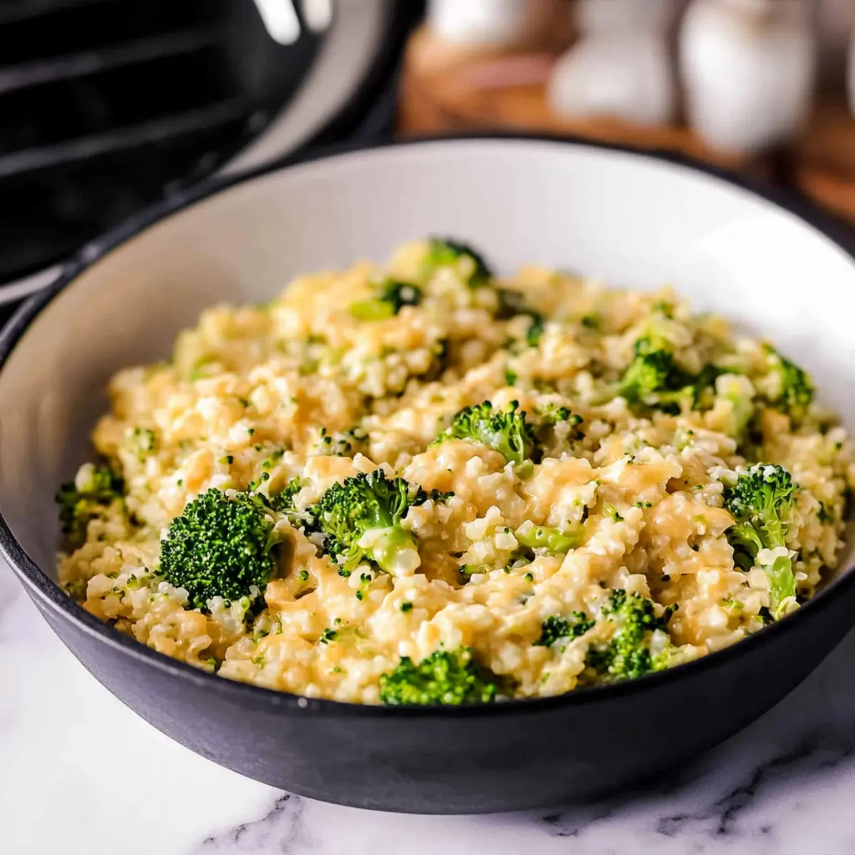 As I stirred the creamy mixture of Cheesy Broccoli Cauliflower Rice, a satisfying aroma filled my kitchen, promising comfort in every bite. This delightful side dish not only embraces the rich flavors of cheese and veggies but also provides a low-carb and gluten-free alternative to traditional rice. Perfect for those hectic weeknights, this recipe offers quick prep while sneaking in more nutritious broccoli and cauliflower goodness. Imagine how everyone will savor this dish, effortlessly adding a gourmet touch to your dinner table. Are you ready to bring some cheesy joy into your next meal? Why is this dish a must-try? Decadent Creaminess: This dish brings together rich cheese and tender vegetables, creating a comforting side that feels indulgent without the extra carbs. Health-Conscious Choice: With low-carb, gluten-free, and keto-friendly properties, it’s the perfect addition to any healthy meal plan! Quick & Easy: Ready in just a few minutes, this recipe is ideal for busy weeknights when you crave a satisfying, nutritious option. Flavorful Variety: Customize it by adding proteins, like chicken or crumbled bacon, and experiment with different cheese blends for endless flavor combinations—your family will never get bored! Dive into even more delicious options, such as Cheesy Chicken Enchiladas or Smothered Chicken Rice. Cheesy Broccoli Cauliflower Rice Ingredients For the Base Extra Virgin Olive Oil – Provides essential fat for cooking, enhancing flavor; can substitute with other vegetable oils. Cauliflower – Serves as a low-carb alternative to rice; fresh is preferred for texture, but frozen works if needed. Broccoli – Adds nutritional value and flavor; fresh broccoli is best for a vibrant profile. For Seasoning Salt – Enhances the overall flavor of the dish; adjust according to your taste. Pepper – Introduces mild heat and balance; freshly cracked is best for a more robust flavor. For the Creamy Sauce Butter – Essential for a rich sauce base, adding to the creamy texture. Heavy Whipping Cream – Key for a luscious cheese sauce; milk can be used for a lighter option, though this may lead to a thinner sauce. Mustard Powder – Adds depth to the cheese sauce; yellow or Dijon mustard can be used as a substitute. For the Cheesy Goodness Sharp Cheddar Cheese – Provides richness and creaminess; grate from a block for better melting quality. This Cheesy Broccoli Cauliflower Rice recipe guarantees delightful bites that comfort the soul while keeping your health goals in check! Step‑by‑Step Instructions for Cheesy Broccoli Cauliflower Rice Step 1: Heat the Oil Begin by heating 1 tablespoon of extra virgin olive oil in a large skillet over medium-high heat. Allow the oil to shimmer for about 1-2 minutes, signaling it’s ready for cooking. This step is essential to prevent sticking and to enhance the flavors in your Cheesy Broccoli Cauliflower Rice. Step 2: Sauté the Vegetables Add riced cauliflower and broccoli florets to the skillet, stirring them gently to coat in the oil. Season with salt and pepper to taste. Sauté the mixture for 8-9 minutes, or until the vegetables are just tender and vibrant. They should still have a bit of crunch for the best texture in your delicious side dish. Step 3: Transfer and Clean Once the vegetables are cooked, transfer the cauliflower and broccoli mixture to a bowl and set aside. Carefully wipe out the skillet with a paper towel to remove any bits and prepare it for the cheese sauce. This ensures a smooth, creamy result for your Cheesy Broccoli Cauliflower Rice later on. Step 4: Make the Creamy Sauce In the same skillet, melt 2 tablespoons of butter over medium heat. Once melted, whisk in ½ cup of heavy whipping cream and 1 teaspoon of mustard powder, cooking until the mixture starts bubbling—around 3-4 minutes. This step creates a rich base for the cheese sauce, ensuring that every bite of your Cheesy Broccoli Cauliflower Rice is luxurious. Step 5: Add the Cheese Stir in 1 cup of shredded sharp cheddar cheese into the bubbling cream mixture, whisking until fully melted and incorporated. This should take about 2-3 minutes. The sauce will become thick and creamy, ready to envelop the delicious vegetables. Remove from heat once melted and smooth. Step 6: Combine and Serve Gently fold the sautéed cauliflower and broccoli back into the cheese sauce, stirring for 2-3 minutes. Ensure that every piece is evenly coated with the creamy mixture. Once heated through and combined, your Cheesy Broccoli Cauliflower Rice is ready to be served—perfectly comforting and downright delicious! What to Serve with Cheesy Broccoli Cauliflower Rice Imagine diving into a hearty meal that brings comfort, nutrition, and deliciousness all together on your plate. Grilled Lemon Chicken: Juicy, zesty chicken pairs beautifully with the creamy cheese, enhancing the dish’s lightness and flavor contrast. Garlic Butter Shrimp: The richness of garlic butter shrimp complements the cheesy sauce, creating a delightful seafood-meets-smooth-vegetable harmony. Roasted Asparagus: Tender, crisp asparagus adds a fresh crunch that balances the richness of the Cheesy Broccoli Cauliflower Rice perfectly. Quinoa Salad: A light quinoa salad with fresh herbs and a tangy dressing can brighten the plate and provide a nutritious contrast. Roasted Red Peppers: Sweet, roasted red peppers on the side provide a burst of flavor and vibrant color, making your meal visually enticing. Sautéed Spinach: Garlic sautéed spinach offers a mild bitterness that complements the creamy richness of the dish, adding a fresh green element. Refreshing Cucumber Salad: A crisp cucumber salad with a zingy vinaigrette adds a refreshing crunch that contrasts wonderfully with the cheesy texture. Chardonnay or Pinot Grigio: A glass of chilled white wine enhances the flavors, making your mealtime feel like a special occasion. Chocolate Mousse: For dessert, a light and airy chocolate mousse provides a sweet, ind