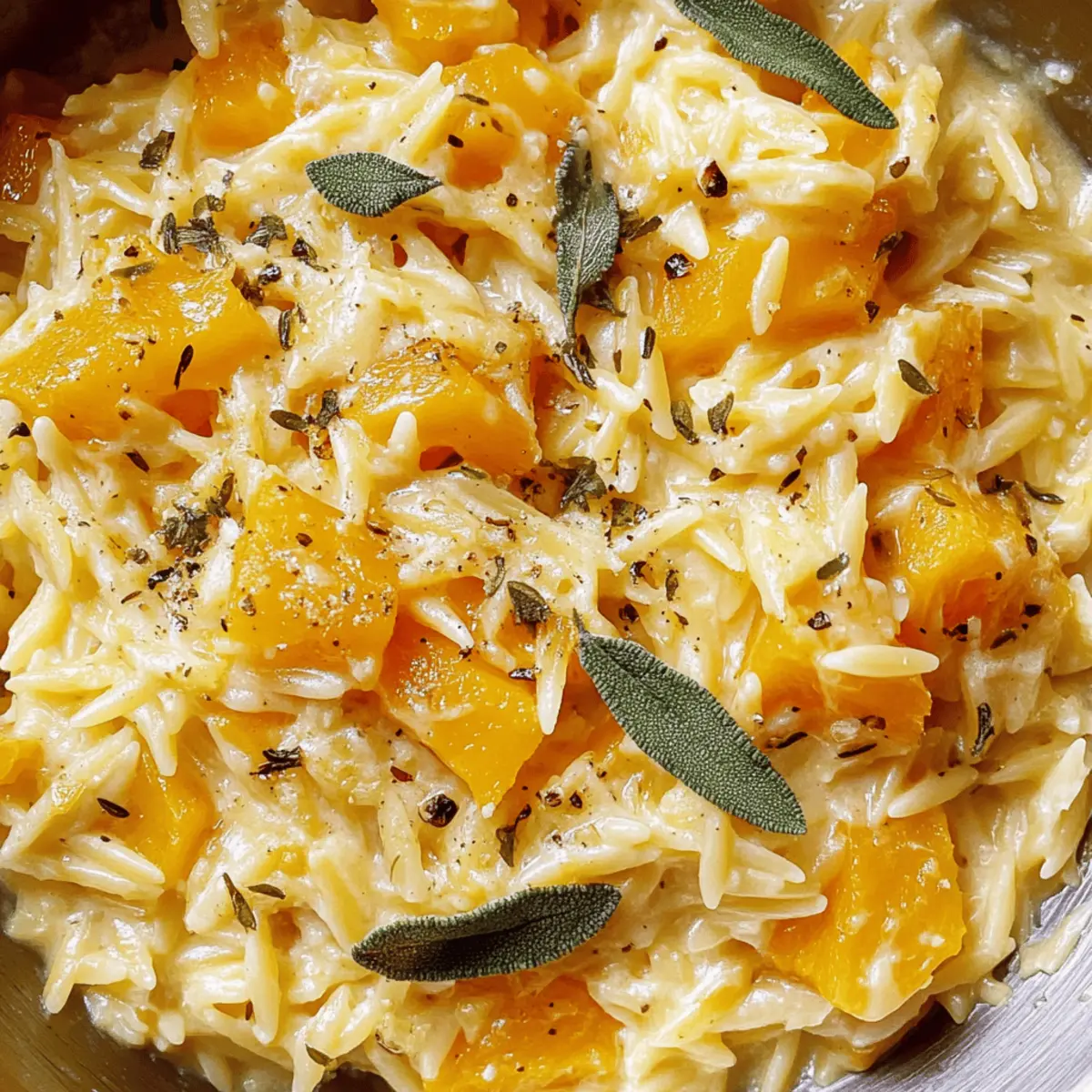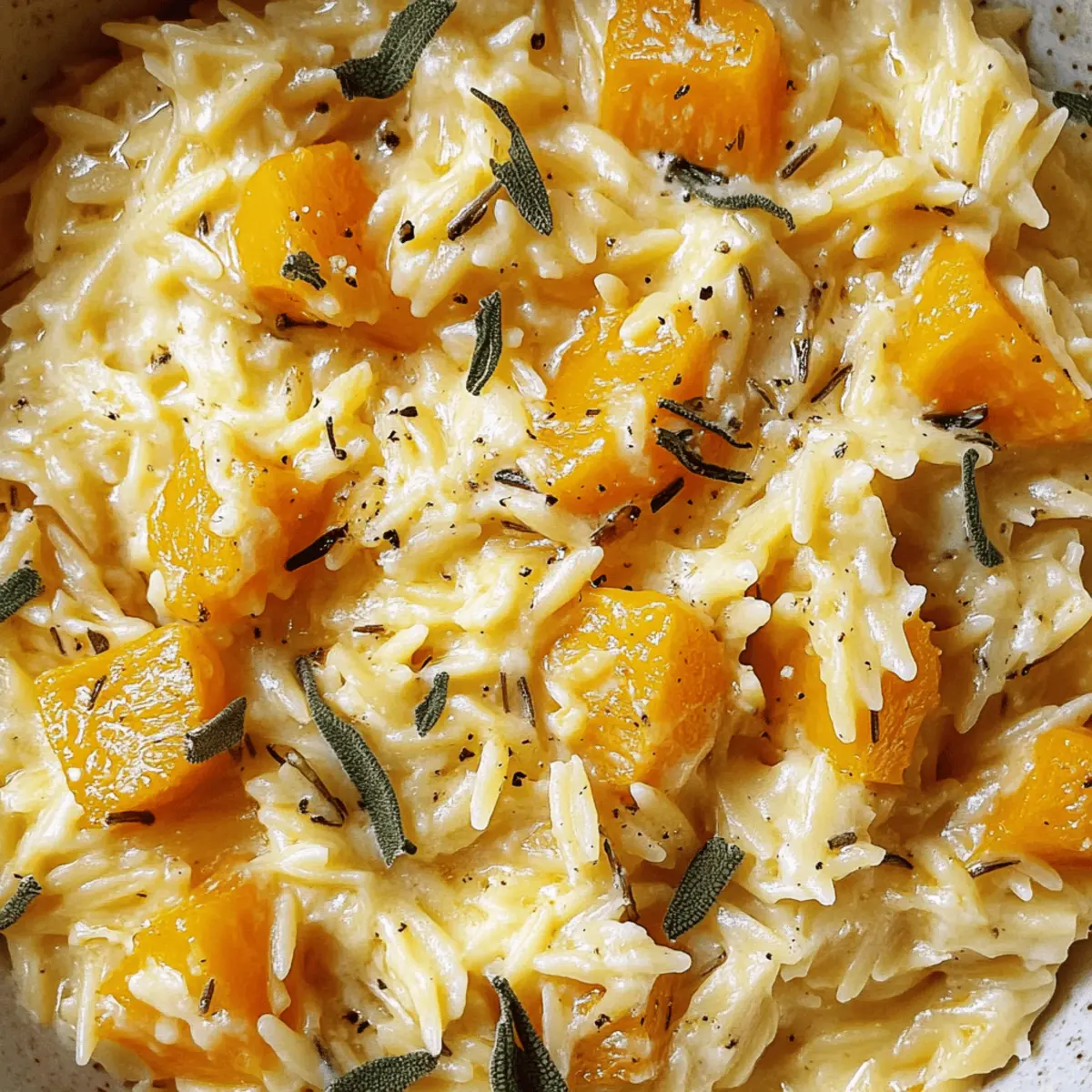 As I stood in my kitchen, the rich aroma of roasted butternut squash wafting through the air, I couldn’t help but feel a wave of comfort wash over me. There’s something magical about combining creamy cheeses with sweet, caramelized veggies that creates the perfect harmony for a cozy meal. This Cheesy Butternut Squash Orzo is more than just a recipe; it’s a delightful escape from the daily grind and a celebration of the comfortable fall flavors we crave. With its creamy texture and quick preparation, it effortlessly transforms into a weeknight favorite—ideal for those chilly evenings when you just want to indulge. So, are you ready to discover how this delightful dish can warm your soul and feed your love for homemade cooking? Let’s dive in! Why is Cheesy Butternut Squash Orzo a Must-Try? Comforting Flavors: This dish combines creamy cheeses with sweet, roasted butternut squash for an incredibly satisfying meal that’s perfect for fall. Quick and Easy: Prep is a breeze, making it ideal for busy weeknights when you crave something hearty without spending hours in the kitchen. Versatile Ingredients: Feel free to swap in your favorite veggies or proteins, like cooked peas or even shredded rotisserie chicken, for a personalized touch. Crowd-Pleasing Delight: Whether you’re serving family or guests, everyone will adore this cheesy goodness that warms both the heart and soul. Perfectly Creamy Texture: The creamy orzo paired with tender squash creates a luscious, comforting essence that mirrors your favorite casserole dishes. Looking for more comforting recipes? Check out these delicious Cheesy Chicken Enchiladas or the irresistible Sloppy Joe Cheesy for a tasty twist on classic favorites! Cheesy Butternut Squash Orzo Ingredients Whether you’re a seasoned chef or a home cook excited to try something new, gathering the right ingredients is key to creating this delightful dish. Let’s go! For the Orzo Dish Butternut Squash – Provides natural sweetness and texture; substitute with kabocha squash or acorn squash for similar sweetness. Sweet Onion – Adds sweetness and depth to the flavor base; fresh shallots can also be used for a milder taste. Garlic – Imparts aromatic notes that enhance the savory profile; fresh garlic yields the best flavor extraction. Fresh Sage – Offers a classic herb aroma that pairs perfectly with rich cheeses; thyme or rosemary can work in a pinch. Orzo Pasta – Forms the comforting base of this dish, providing a creamy texture; swap for gluten-free pasta if needed. Cream – Contributes to the dreamy sauce texture; opt for full-fat coconut milk for a dairy-free alternative. Mozzarella Cheese – Provides luscious creaminess; use vegan mozzarella for a dairy-free version of this Cheesy Butternut Squash Orzo. Parmesan Cheese – Adds a nice sharp contrast to the creamy elements; nutritional yeast can be a great vegan substitute. Olive Oil – Enhances the flavor when roasting and sautéing; any neutral cooking oil can be used instead. For the Aromatics & Spices Ground Allspice, Cinnamon, Ground Cloves – Provide warmth and complexity; ensure your spices are fresh for the best flavor. Salt & Pepper – Essential seasoning to enhance all the flavors; adjust according to your personal taste. Vegetable Broth – Serves as the cooking liquid for the orzo, infusing it with flavor; homemade or store-bought is perfect. Embrace the cozy flavors of this Cheesy Butternut Squash Orzo, and watch your kitchen transform into a haven of warmth and delectable aromas! Step‑by‑Step Instructions for Cheesy Butternut Squash Orzo Step 1: Preheat Your Oven Begin by preheating your oven to 400°F (200°C). This ensures that when you toss your butternut squash into the oven, it will roast beautifully, becoming tender and caramelized, ready to create that comforting base for your Cheesy Butternut Squash Orzo. Step 2: Prepare the Squash In a large mixing bowl, toss the diced butternut squash with 2 tablespoons of olive oil, salt, and pepper until evenly coated. Spread the seasoned squash in a single layer on a baking sheet, allowing plenty of space for roasting. This will help achieve that lovely golden color and heighten the sweetness as it cooks. Step 3: Roast the Squash Place the baking sheet in the preheated oven and roast the butternut squash for 25-30 minutes. Stir occasionally to ensure even cooking. The squash is done when it’s fork-tender and has developed a beautiful caramelized color, releasing a sweet, inviting aroma perfect for your Cheesy Butternut Squash Orzo. Step 4: Cook the Orzo While the squash roasts, bring 4 cups of vegetable broth to a rolling boil in a large pot. Add the orzo and stir gently. Cover the pot and reduce the heat to a simmer, cooking for about 10 minutes or until the orzo is tender and has absorbed most of the liquid. This process will create a creamy base for your dish. Step 5: Sauté the Aromatics In a skillet, heat the remaining tablespoon of olive oil over medium heat. Add the sweet onion and minced garlic, sautéing for about 3-4 minutes until the onion is soft and translucent. This step infuses the dish with savory flavors that beautifully complement the Cheesy Butternut Squash Orzo. Step 6: Make the Cheese Sauce Once your aromatics are ready, reduce heat to low and add half of the fresh sage, mozzarella cheese, cream, and Parmesan. Stir continuously for about 2–3 minutes until everything is melted and creamy. This luscious sauce will create the perfect blend with the roasted squash and orzo, embodying that cheesy comfort. Step 7: Combine All Ingredients When the orzo is cooked and the squash is roasted, fold them gently into the cheese sauce in your skillet. Mix well to combine, ensuring each morsel of orzo is coated in the creamy sauce. Heat through for another 2-3 minutes, allowing all the flavors in your Cheesy Butternut Squash Orzo to meld together harmoniously. Step 8: Serve and Garnish Finally, plate the Cheesy Butternut 