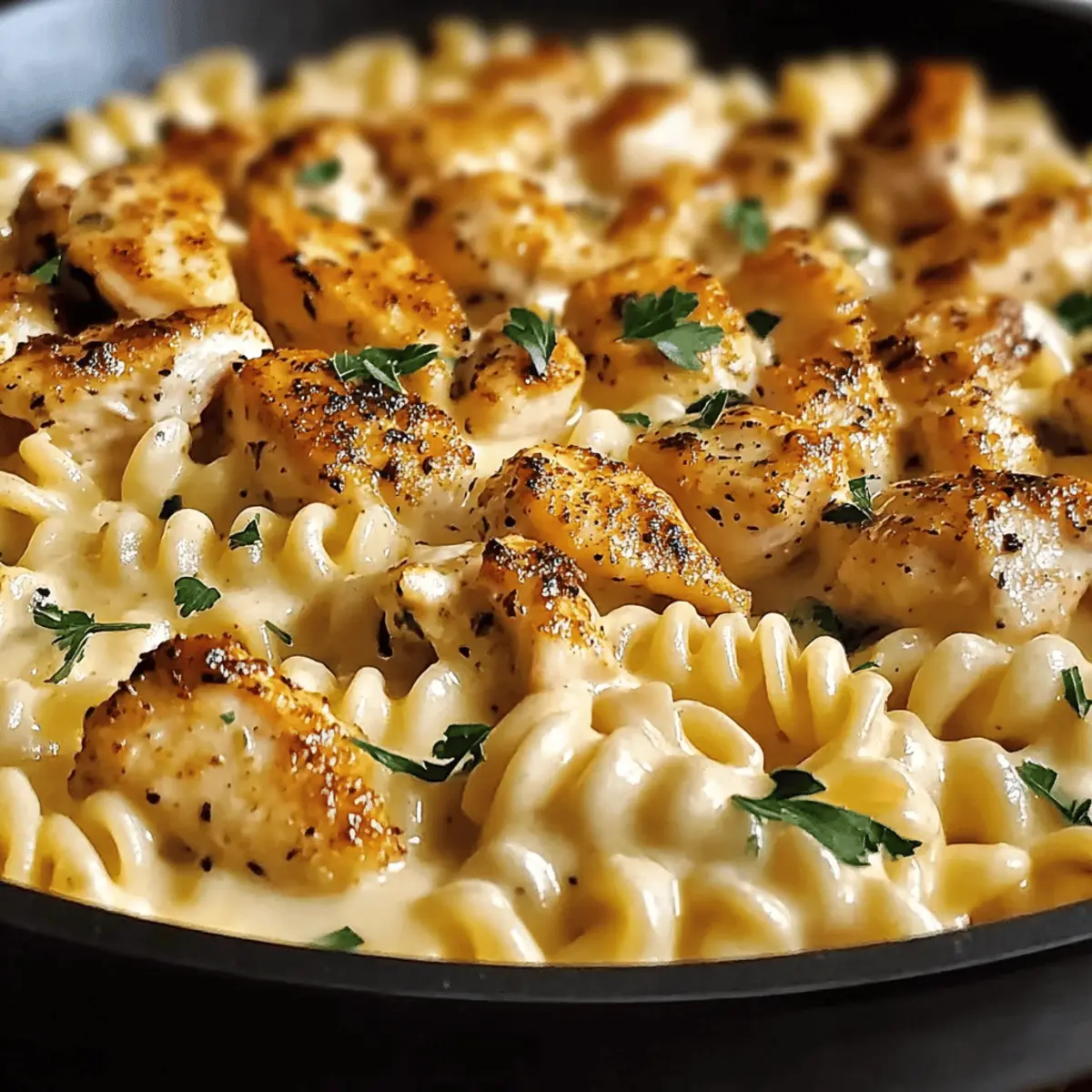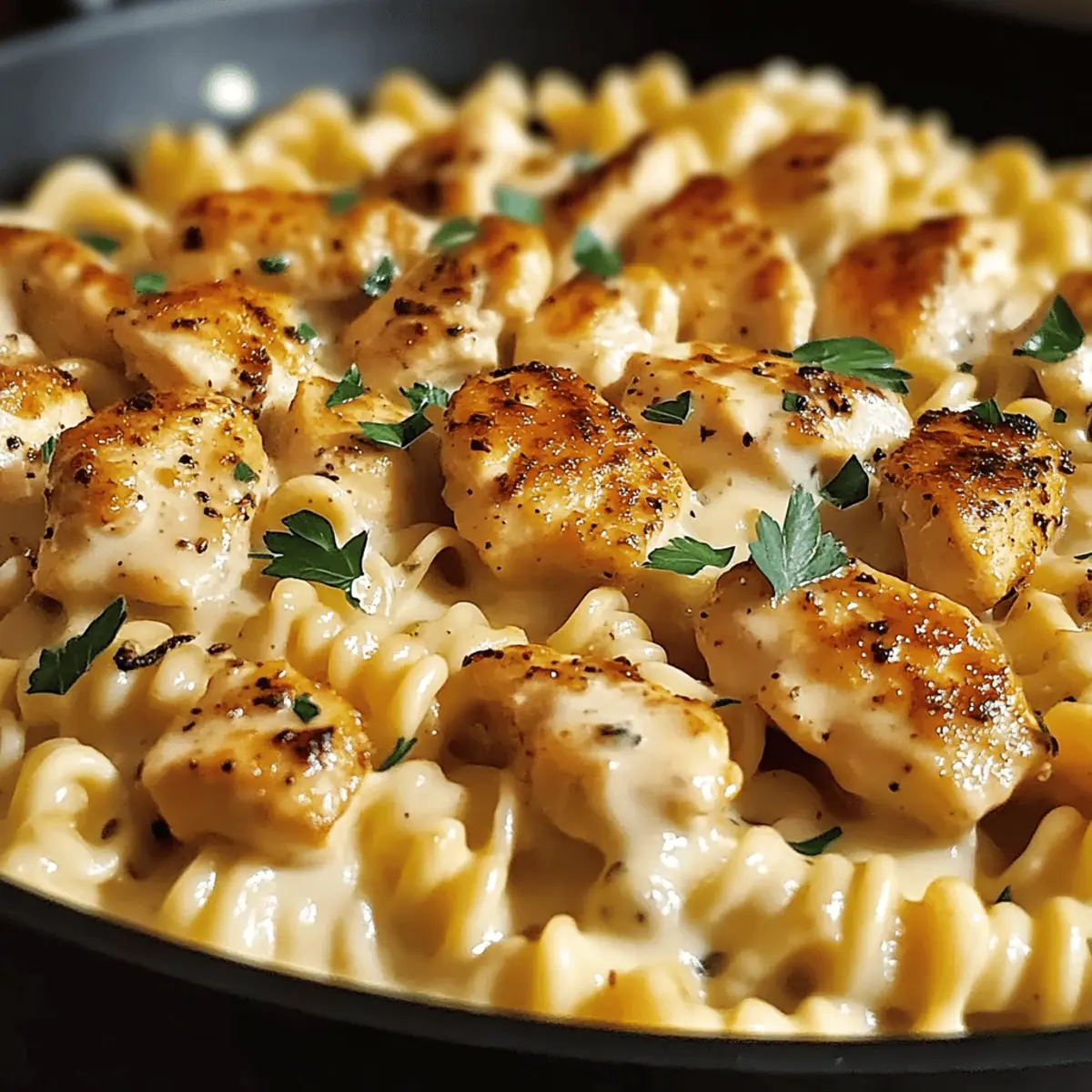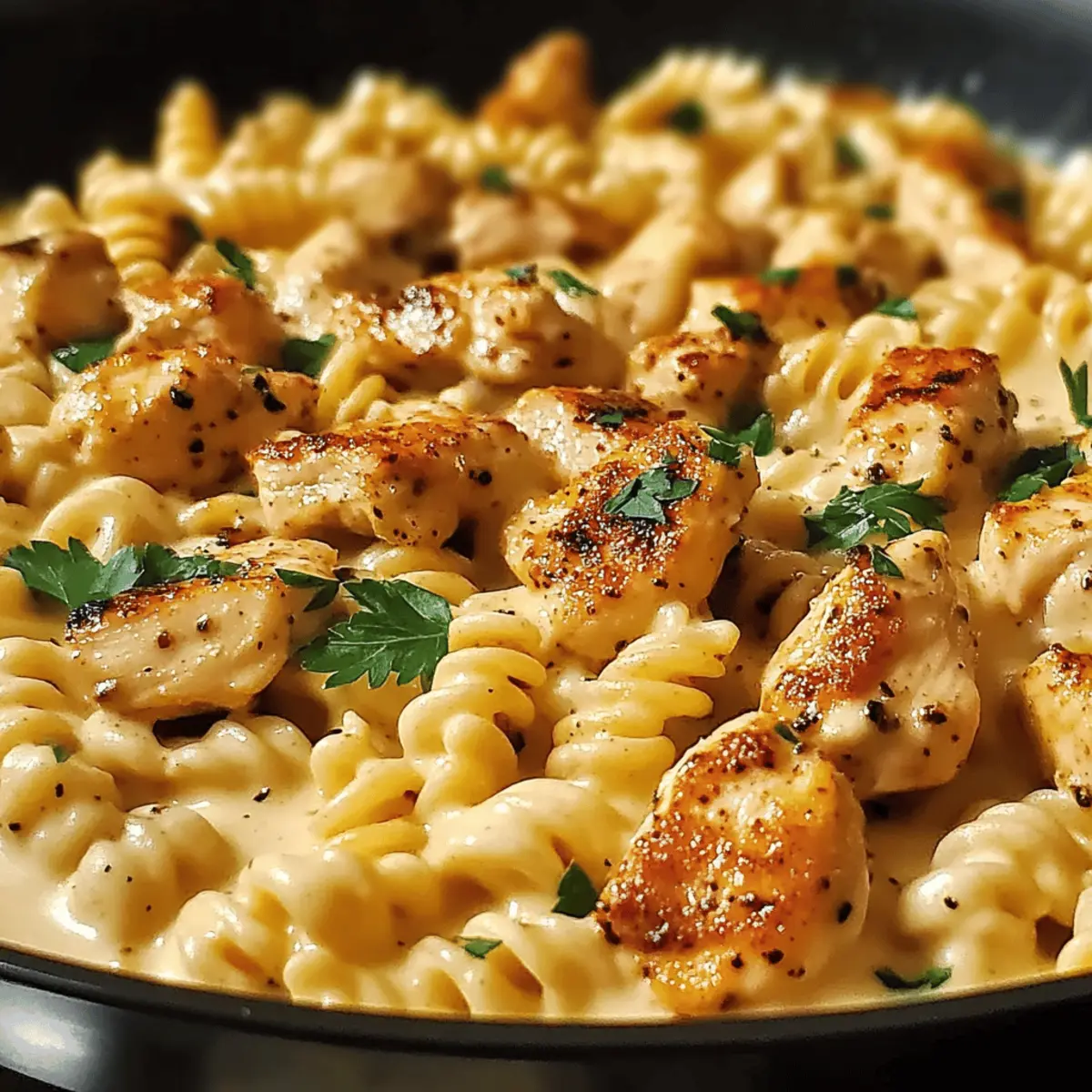 5. Return the cooked rotini pasta and sliced chicken to the skillet, tossing gently to coat everything in the creamy sauce. Let it simmer for an additional 2–3 minutes.