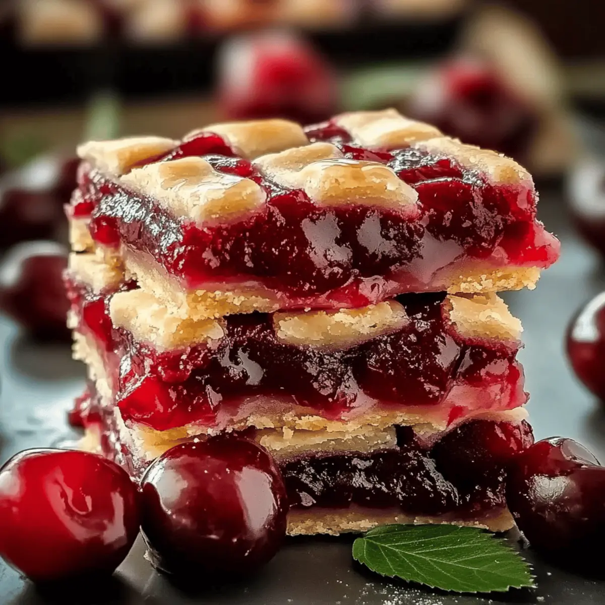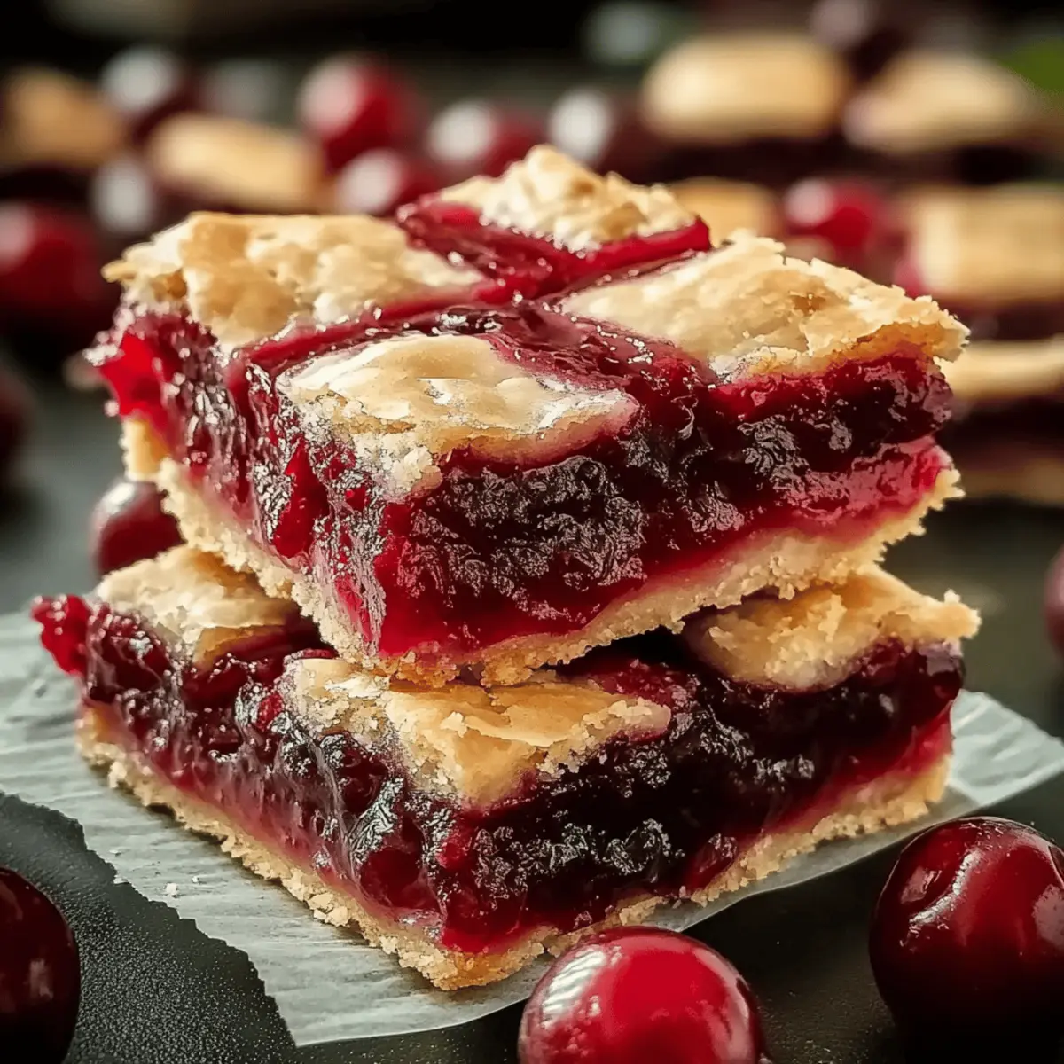 Summer is in full swing, and the kitchen beckons with the promise of sweet delights! I can’t help but be reminded of childhood memories spent around the table, where the aroma of freshly baked goods filled the air. This year, I’m excited to share my recipe for Easy Cherry Pie Bars—a harmonious blend of sweet and tart that captures the essence of summer in every bite. This beginner-friendly recipe takes minimal time to prepare, making it perfect for busy weeknights or casual gatherings with friends and family. Not only do these bars deliver a comforting nostalgic vibe that pleases everyone, but they also showcase a delightful almond extract that elevates the cherry flavor to new heights. Ready to dive into the world of homemade sweetness? Let’s get baking! Why Are Cherry Pie Bars So Irresistible? Sweet, Tart Delight: These Easy Cherry Pie Bars beautifully balance sweetness and tartness, making them a beloved treat that appeals to all palates. Beginner-Friendly: With minimal prep time and straightforward instructions, even novice bakers can create a stunning dessert without any stress. Versatile Option: While delicious as-is, these bars also shine with variations—you can easily swap cherry filling for apple, creating a delightful twist that invites creativity. Perfect for Gatherings: Whether for picnics, potlucks, or family dinners, these bars are sure to impress your guests and turn ordinary moments into memorable ones! Nostalgic Comfort: Each bite evokes warm memories of summer days, making every slice a heavenly indulgence that everyone will love. Looking for a comforting recipe to round out your meal? Don’t forget to check out our amazing Chicken Pot Pie for an unforgettable dining experience! Cherry Pie Bars Ingredients • For a delightful cherry pie experience! For the Crust • Real Butter – Adds richness and creates a flaky crust. Substitution Note: Can replace with dairy-free butter for a dairy-free version. • Granulated Sugar – Provides sweetness and aids in browning. • Eggs – Helps bind the dough and provides structure. Use room temperature eggs for best results. • Almond Extract – Infuses a nutty aroma that complements the cherries beautifully. Substitution Note: Can use vanilla extract alone if preferred. • Vanilla Extract – Adds extra flavor depth. • All-Purpose Flour – Forms the dough base. Substitution Note: May experiment with gluten-free flour for a gluten-free option. • Salt – Enhances the flavors overall. For the Filling • Cherry Pie Filling – The star of the recipe; choose high-quality canned filling for best results. Note: Look for options with real cherries and natural juices. For the Glaze • Confectioners’ Sugar – Used for the glaze to finish the dessert. Get ready to enjoy the scrumptious aroma of your homemade cherry pie bars! Step‑by‑Step Instructions for Cherry Pie Bars Step 1: Prep the Dough Begin by creaming 1 cup of softened butter with 1 cup of granulated sugar in a large mixing bowl until the mixture is light and fluffy, about 3-4 minutes. Incorporate 2 room-temperature eggs, 1 teaspoon of almond extract, and 1 teaspoon of vanilla extract, mixing well until everything is smoothly combined. Step 2: Combine Dry Ingredients Gradually stir in 2 ½ cups of all-purpose flour along with ½ teaspoon of salt to the wet mixture, using a wooden spoon or spatula to form a soft, cohesive dough. The dough should not be sticky but slightly tacky to the touch, signaling it’s ready for the next step. Step 3: Bake the Base Preheat your oven to 350°F (175°C). Grease a 15×10-inch baking pan, then evenly press half of the prepared dough into the bottom of the pan, creating a smooth base. Spread 1 can of cherry pie filling evenly over the dough, ensuring all corners are filled to maximize the cherry flavor in your Cherry Pie Bars. Step 4: Top and Bake Use dollops of the remaining dough to crown the cherry filling, creating a rustic look without fully covering it. Place the pan in the preheated oven and bake for 35 to 40 minutes, or until the edges are golden brown and the top appears set. A light golden color will indicate they’re perfectly baked and ready to come out of the oven. Step 5: Cool and Glaze Once baked, remove the Cherry Pie Bars from the oven and let them cool completely in the pan on a wire rack—a cooling period of about 30-45 minutes is ideal. Meanwhile, prepare the glaze by whisking together 1 cup of confectioners’ sugar with almond extract, vanilla, and a splash of milk until smooth, then drizzle it over the cooled bars for a sweet finish. Expert Tips for Cherry Pie Bars Room Temperature Ingredients: Always use room temperature butter and eggs; they mix more easily and contribute to a better texture in your Cherry Pie Bars. Cooling Time: Don’t rush! Allow the bars to cool completely before glazing for the best flavor and texture, enhancing that sweet, comforting experience. Choosing Filling: Opt for high-quality cherry pie filling with real cherries. It makes a significant difference in taste and ensures your bars shine! Baking Evenly: Using the recommended 15×10-inch pan ensures even baking. Avoid using a smaller pan, as it may lead to thicker bars that are undercooked inside. Storage Tips: Keep the Cherry Pie Bars covered at room temperature for up to three days—this will help maintain their freshness and prevent drying out. Storage Tips for Cherry Pie Bars Room Temperature: Store Cherry Pie Bars covered at room temperature for up to 3 days to keep them fresh and moist. Fridge: For longer storage, place the bars in an airtight container and refrigerate for up to 5 days. Just make sure to let them come to room temperature before serving for the best texture. Freezer: Freeze Cherry Pie Bars for up to 2 months. Wrap them individually in plastic wrap and place them in an airtight container to preserve their flavor. Reheating: To enjoy them warm, reheat the bars in the oven at 350°F (175°C) for 