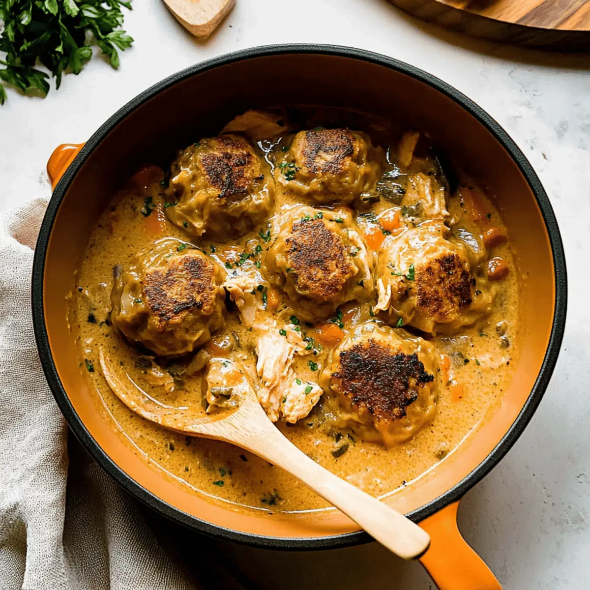 Creamy Chicken and Pumpkin Dumplings are a comforting one-pot meal perfect for chilly fall evenings.