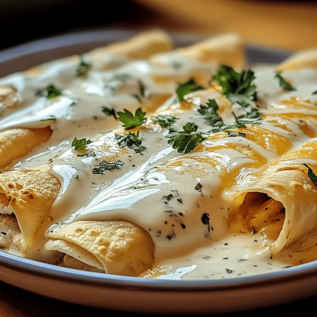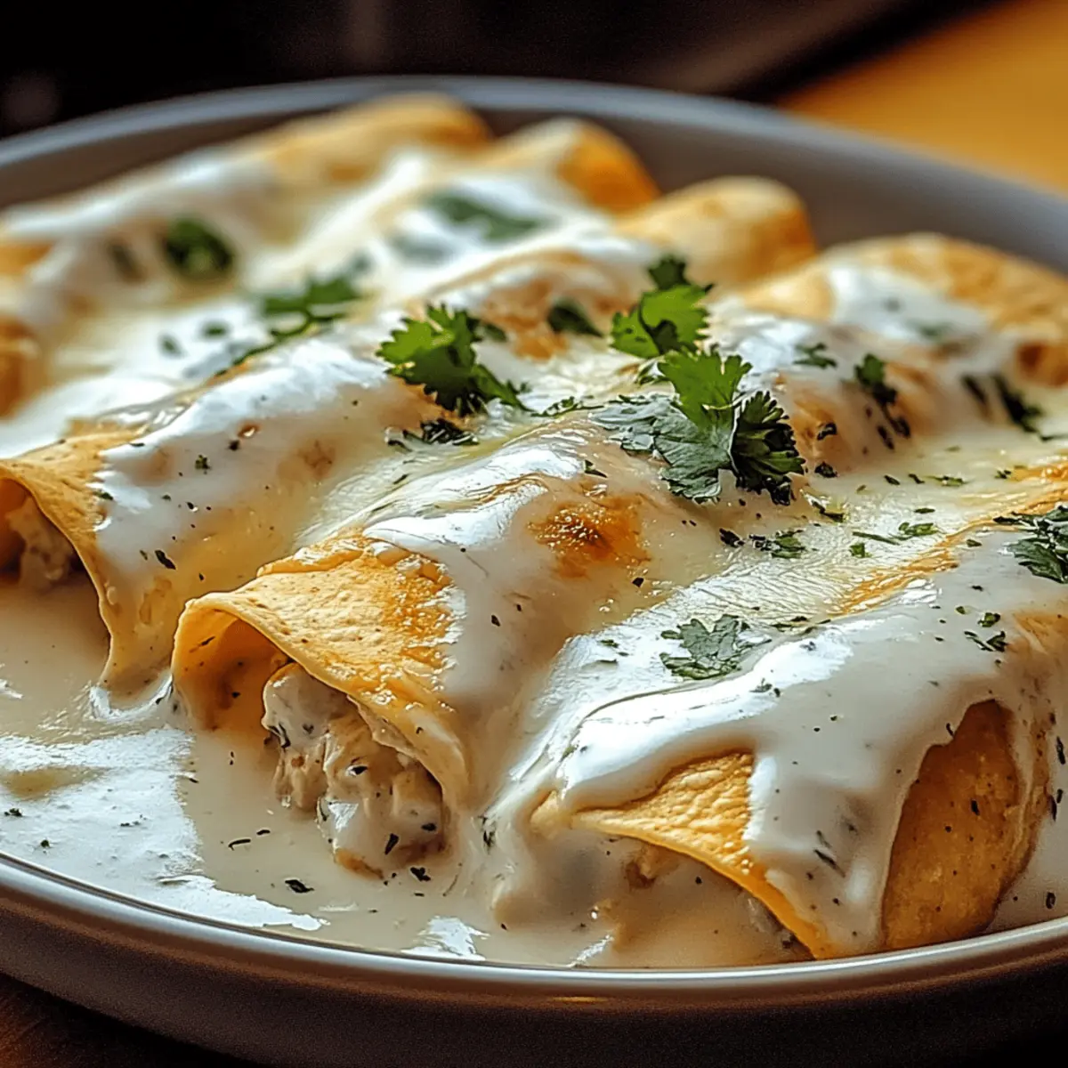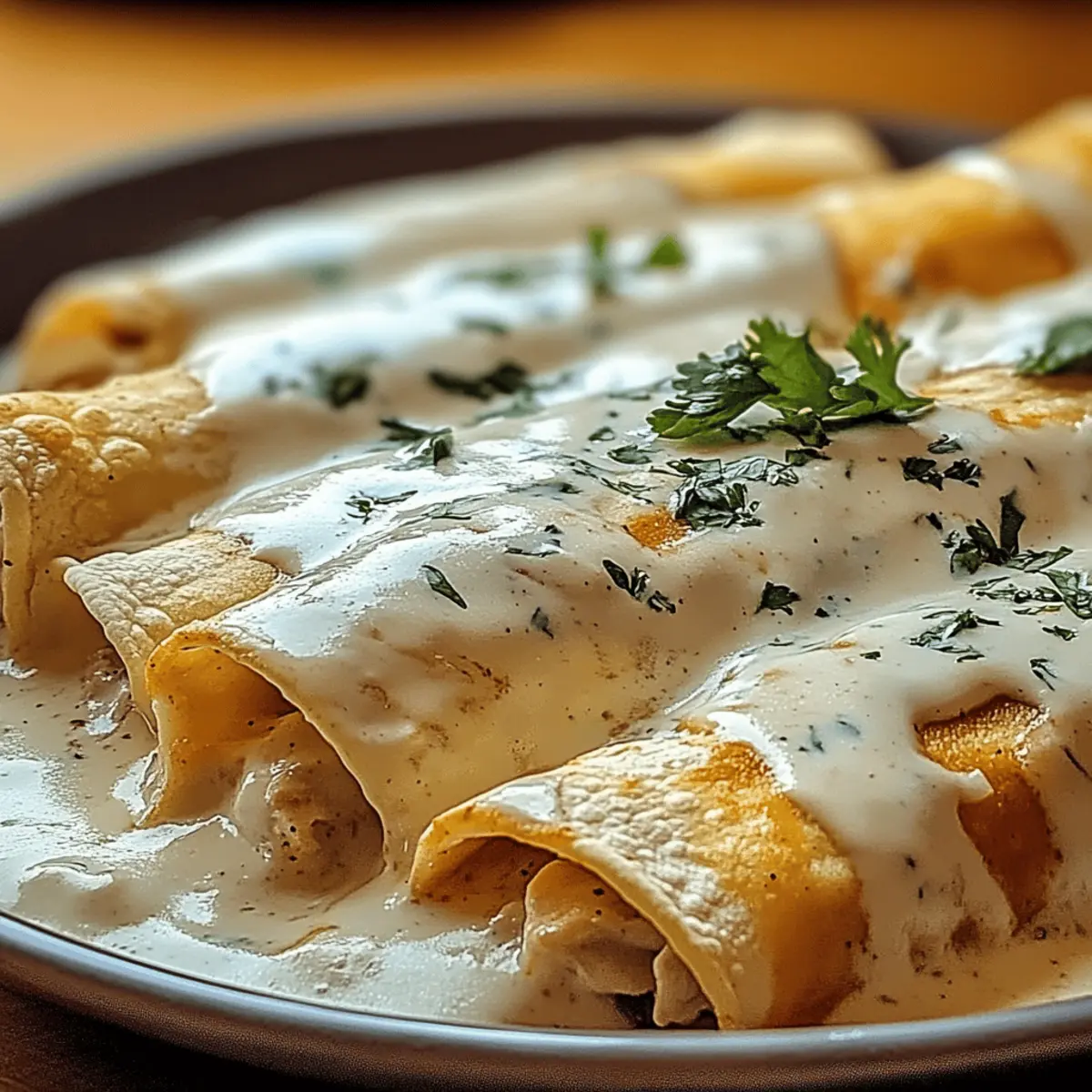 As I stirred the bubbly, creamy sauce simmering on the stovetop, memories of cozy family dinners washed over me. Today, I’m excited to share my recipe for Chicken Enchiladas with Sour Cream White Sauce, a comforting dish that wraps tender, shredded chicken in soft tortillas and blankets them with a luscious, velvety sauce. This meal is not just a crowd-pleaser for busy weeknights; it’s also incredibly customizable—spice it up with jalapeños or try a different protein like beef for a fun twist! With its creamy goodness and family-friendly appeal, this enchilada recipe will soon become a beloved staple in your kitchen. Are you ready to make your taste buds dance? Why Are These Enchiladas Incredible? Creaminess elevates your meal with a luxurious sour cream white sauce that envelops each bite, ensuring comfort in every forkful. Customization simplifies dinner prep; feel free to swap in beef or add your favorite veggies for a unique twist. Family-friendly and perfect for busy weeknights, this recipe delights every palate around the table. For those craving a complete meal, serve with a side of fresh guacamole or a crisp green salad. Don’t forget, you can easily make these ahead of time – just assemble them the night before and pop them in the oven when you’re ready! Enjoy this versatile dish that transforms any gathering into a memorable feast. Chicken Enchiladas with Sour Cream White Sauce Ingredients • Here’s everything you need to create these delicious chicken enchiladas! For the Filling Chicken – Use cooked, shredded chicken for easy prep; rotisserie chicken works beautifully! Tortillas – Choose flour tortillas for a soft and pliable texture. Green Chiles – Opt for canned green chiles for convenience, but fresh ones pack more flavor. For the Sauce Sour Cream – This is the star of the creamy white sauce; Greek yogurt is a great low-fat substitute. Cheese – A mix of Monterey Jack and cheddar adds richness; feel free to get creative with your cheese choice! Spices – Enhance flavor with cumin and garlic powder; adjust according to your spice preference. For Baking Salt & Pepper – Essential for balancing flavors; season to taste. Optional Toppings – Sprinkle additional cheese or fresh herbs on top before baking for added flavor and presentation. Dive right into creating these Chicken Enchiladas with Sour Cream White Sauce and enjoy every moment of this culinary adventure! Step‑by‑Step Instructions for CHICKEN ENCHILADAS WITH SOUR CREAM WHITE SAUCE Step 1: Preheat and Prep Begin by preheating your oven to 375°F (190°C). While the oven is warming up, gather your ingredients and prepare a baking dish by lightly greasing it with cooking spray or a drizzle of oil. This will help your Chicken Enchiladas with Sour Cream White Sauce bake evenly and prevent sticking. Step 2: Mix the Filling In a large bowl, combine the shredded chicken, canned green chiles, and half of the cheese. Stir until everything is well mixed. This hearty filling is the star of your enchiladas, so taste it and adjust any spices or seasonings to your liking, ensuring every bite packs flavorful goodness. Step 3: Warm the Tortillas To make rolling easier, slightly warm the flour tortillas in the microwave for about 30 seconds or until they are pliable. This step is crucial, as it prevents the tortillas from cracking when you fill and roll them with the delicious chicken mixture. Step 4: Assemble the Enchiladas Lay a warmed tortilla on a flat surface and spoon a generous amount of the chicken filling down the center. Roll the tortilla tightly from one end to the other and place it seam-side down in the greased baking dish. Repeat this process until all the tortillas are filled and lined up nicely in the dish, ensuring the Chicken Enchiladas with Sour Cream White Sauce are snugly packed together. Step 5: Prepare the Sauce In a saucepan, combine the sour cream, remaining cheese, cumin, garlic powder, salt, and pepper over medium heat. Stir continuously for about 5–7 minutes, or until the mixture is smooth and bubbly. The creamy sauce should be velvety and fragrant—timely preparation will enrich the flavor of your enchiladas beautifully. Step 6: Coat the Enchiladas Carefully pour the warm sour cream sauce evenly over the assembled enchiladas, making sure each one is generously covered. This will create that irresistible creamy layer that defines these chicken enchiladas. Don’t be shy; let the sauce drizzle down the sides for extra flavor! Step 7: Add Extra Cheese Sprinkle the remaining cheese on top of the enchiladas, allowing it to melt beautifully during baking. You can also add a few extra green chiles or even some chopped cilantro for added flavor. This step not only enhances the taste but also promises a gorgeous cheesy crust. Step 8: Bake to Perfection Transfer the baking dish to your preheated oven and bake for 20-25 minutes, or until the cheese is melted, bubbly, and slightly golden. Keep an eye on the enchiladas as they bake; the delightful aroma will fill your kitchen, signaling that they’re almost ready! Step 9: Let It Rest Once baked to perfection, remove the dish from the oven and let the enchiladas cool for about 5–10 minutes. This resting time allows the flavors to settle and makes cutting easier. The Chicken Enchiladas with Sour Cream White Sauce will be creamy, cheesy, and utterly tempting! What to Serve with Chicken Enchiladas with Sour Cream White Sauce Transform your mealtime into a culinary fiesta with delightful pairings that enhance the vibrant flavors of your creamy enchiladas. Spanish Rice: This fluffy, seasoned rice adds a delicious texture that balances the richness of the enchiladas and makes for a hearty meal. Fresh Guacamole: Creamy avocado mixed with zesty lime delivers a refreshing contrast, enriching each bite with a cool, smooth finish. Crisp Green Salad: A light salad with tangy vinaigrette introduces a fresh crunch, cutting through the creaminess and