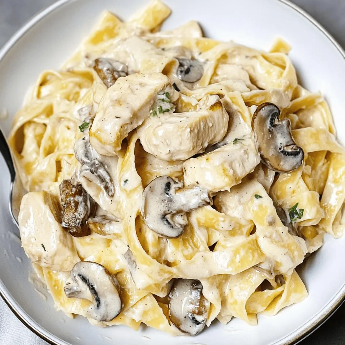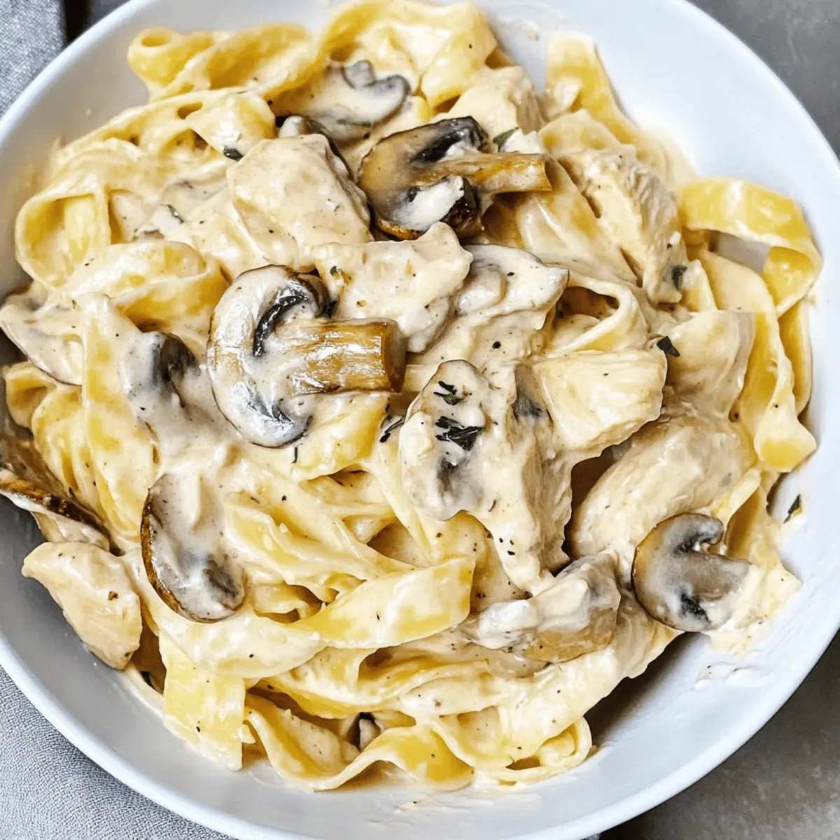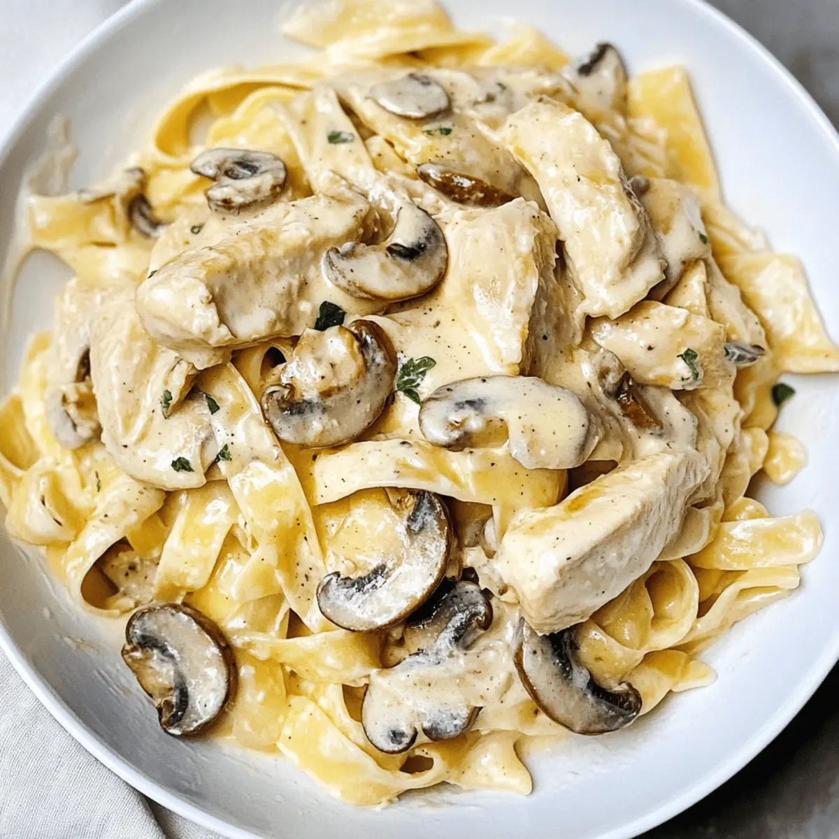 As I stirred the pot, the familiar aroma of garlic and sautéed mushrooms enveloped my kitchen, whisking me away to my favorite Italian restaurant. This Creamy Chicken Mushroom Fettuccine Alfredo is my go-to comfort food, a delightful blend of tender chicken and earthy mushrooms swimming in a rich, savory sauce. With just a handful of ingredients and a quick prep time, it’s perfect for busy weeknights or when you want to impress guests without spending hours in the kitchen. This dish captures that restaurant-quality experience right at home, and it’s easily tailored to suit your needs—switch out the chicken for veggies or even shrimp! Are you ready to elevate your dinner routine with this indulgent delight? Why is Chicken Mushroom Fettuccine Alfredo a Must-Try? Comforting flavors: The combination of creamy Alfredo sauce, tender chicken, and earthy mushrooms creates a heartwarming dish that feels like a warm hug on a plate! Quick and easy: With just a few simple ingredients, this recipe is perfect for busy weeknights or impromptu gatherings. In under 30 minutes, you can serve up a meal that’s sure to impress your family or friends. Versatile options: Whether you’re in the mood for a meaty delight or a veggie-packed plate, you can easily adapt the recipe by swapping chicken for shrimp or adding steamed broccoli. Restaurant quality at home: Enjoy the luxury of a restaurant-style dish without the hefty price tag and effort! This chicken mushroom fettuccine Alfredo rivals even the best Italian eateries. Don’t forget to check out our Cheesy Chicken Enchiladas for another comforting dinner option! Chicken Mushroom Fettuccine Alfredo Ingredients Here’s everything you need to bring this creamy delight to life! For the Pasta Fettuccine Pasta – This flat noodle is perfect for hugging the rich Alfredo sauce; feel free to substitute with any pasta type like tortellini or zoodles. For the Sauce Heavy Whipping Cream – The star of the sauce for its rich, creamy texture; you can use half-and-half for a lighter option, but it may result in a thinner sauce. Unsalted Butter – Adds an extra layer of creaminess to your sauce. Parmesan Cheese – Provides sharp flavor and thickens the sauce; freshly grated is preferred for melting. Garlic Cloves – Infuses the dish with aromatic goodness; using fresh garlic will yield the best flavor. For the Chicken and Mushrooms Chicken Breast – Your main protein source for this indulgent dish; leftover cooked chicken works wonderfully too. Fresh Mushrooms – Brings earthy depth to the meal; feel free to use your favorite mushroom variety like cremini or portobello. Olive Oil – Essential for sautéing both chicken and mushrooms; any cooking oil can be used as a substitute. For Seasoning Salt and Pepper – Essential seasonings to enhance all the flavors; adjust to suit your taste preference. Step‑by‑Step Instructions for Chicken Mushroom Fettuccine Alfredo Step 1: Cook the Fettuccine Bring a large pot of salted water to a rolling boil over high heat. Add the fettuccine and cook according to the package instructions until al dente, usually about 10-12 minutes. Stir occasionally to prevent sticking. Once cooked, reserve 1 cup of pasta water, then drain the fettuccine and set aside in a large mixing bowl, waiting to be enveloped by the creamy chicken mushroom fettuccine alfredo sauce. Step 2: Sauté the Mushrooms In a large skillet, heat 2 tablespoons of olive oil over medium-high heat. Add sliced fresh mushrooms, seasoning them with a pinch of salt. Sauté for about 5-7 minutes until the mushrooms are golden brown and tender, stirring frequently to achieve even browning. Remove the mushrooms from the skillet and set them aside, allowing the flavors to deepen for the chicken mushroom fettuccine alfredo. Step 3: Cook the Chicken In the same skillet, add a touch more olive oil if necessary and reduce the heat to medium. Slice the chicken breast into thin strips, seasoning them with salt and pepper. Sauté the chicken for about 6-8 minutes or until it’s golden brown and cooked through, stirring often. Ensure the chicken is no longer pink in the center; this will enrich the chicken mushroom fettuccine alfredo with wholesome flavor. Step 4: Prepare the Alfredo Sauce In a medium saucepan, combine 1 cup of heavy whipping cream, 4 tablespoons of unsalted butter, and 2 crushed garlic cloves over medium-low heat. Whisk continuously for about 3-5 minutes until the butter has melted and the mixture is smooth. Gradually stir in 1 cup of freshly grated Parmesan cheese until the sauce thickens and becomes creamy, creating the heart of our chicken mushroom fettuccine alfredo. Step 5: Combine Ingredients Add the cooked fettuccine back into the large mixing bowl, followed by the sautéed mushrooms and chicken. Pour the creamy Alfredo sauce over the top, gently tossing everything together for about 2-3 minutes. If the sauce is too thick, use the reserved pasta water, adding a splash at a time until you achieve the desired consistency for your chicken mushroom fettuccine alfredo. Step 6: Serve and Enjoy Serve the chicken mushroom fettuccine Alfredo warm, finished with an extra sprinkle of Parmesan cheese on top. You might also add freshly cracked pepper or chopped parsley for a pop of color. This comforting dish is now ready to be enjoyed, bringing a touch of restaurant quality right to your home dining experience. How to Store and Freeze Chicken Mushroom Fettuccine Alfredo Fridge: Store leftover chicken mushroom fettuccine Alfredo in an airtight container for up to 3 days. To maintain creaminess, reheat gently on the stove with a splash of cream or water. Freezer: You can freeze this dish for up to 2 months. Make sure it’s cooled completely, then transfer to a freezer-safe container or bag. When ready to eat, thaw overnight in the fridge before reheating. Reheating: To reheat, use a skillet over low heat, adding a bit of milk or cream to keep the sauce from thick