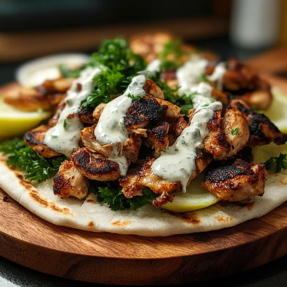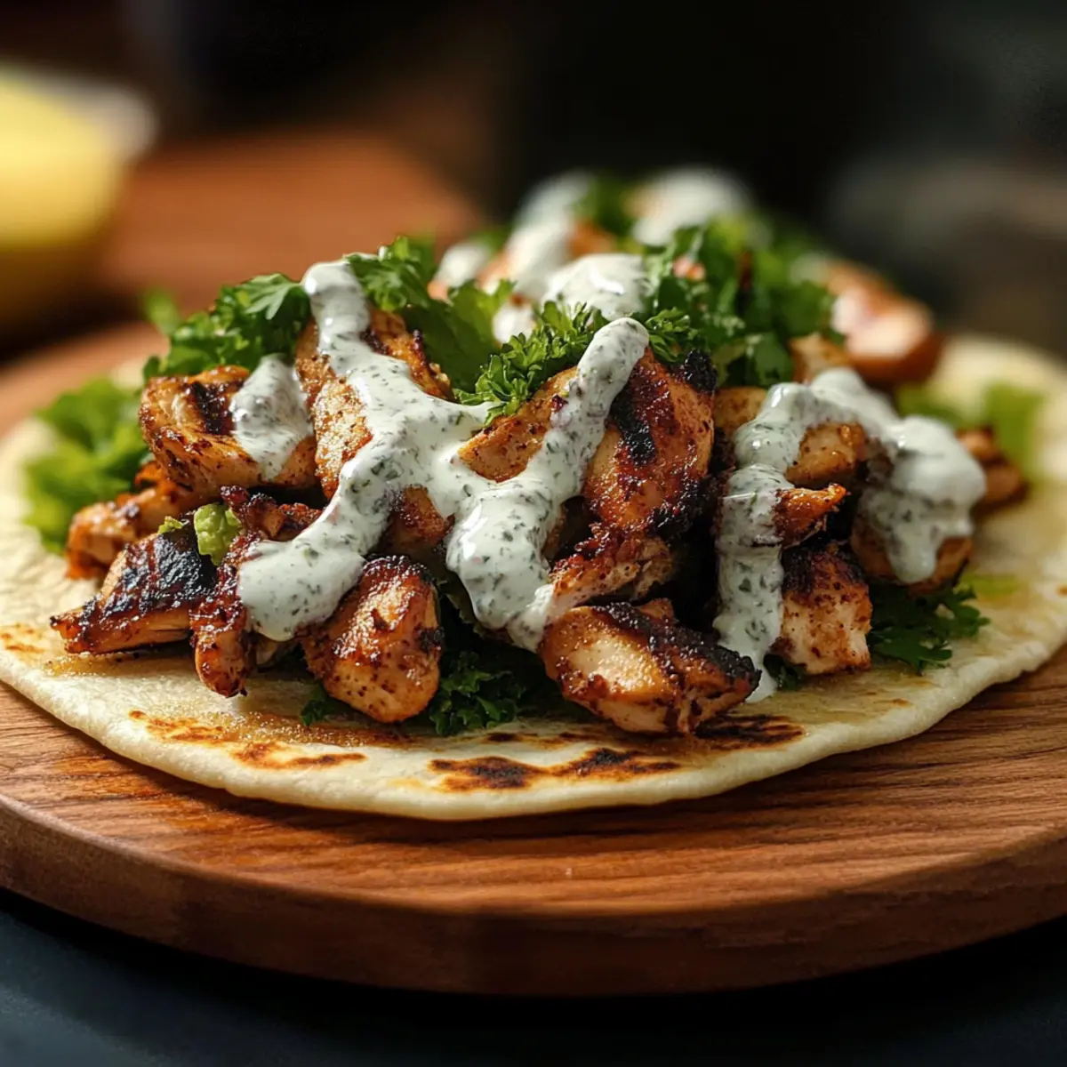 The sizzling aroma wafting from my kitchen transported me straight to the bustling streets of the Middle East. There’s nothing quite like sinking your teeth into warm, spiced Chicken Shawarma with Garlic Sauce, where every bite is a delightful dance of flavors. With just 90 minutes of your time, you can whip up this Easy Homemade Chicken Shawarma that promises a weeknight meal bursting with both convenience and tastiness. Not only is this dish a visual feast, but it also comes together effortlessly, making it a perfect option for busy evenings. Plus, it’s versatile enough for various dietary preferences, whether you opt for tender chicken, lean turkey, or even flavorful tofu. Intrigued? Let’s dive into creating this fulfilling culinary masterpiece that will surely become a new family favorite! Why is Chicken Shawarma a Must-Try? Irresistible Flavors: This Chicken Shawarma features a harmonious blend of spices that provides a mouthwatering taste experience you’ll crave. Quick & Easy: With just 90 minutes from prep to plate, you can serve up a homemade meal that’s hassle-free, making it a great weeknight option. Versatile Substitutions: Whether you’re in the mood for chicken, turkey, or even tofu, this recipe can cater to different protein preferences effortlessly. Healthy & Wholesome: Enjoy a flavorful dish that aligns with healthy eating—a gluten-free and low-carb option perfect for meal prep. Dazzling Presentation: Serve shawarma with warm pita and vibrant sides like hummus and tabbouleh for a visually stunning and satisfying family meal. Gourmet Garlic Sauce: The creamy garlic sauce elevates the dish, offering a restaurant-quality dip that perfectly complements the spices. Your guests will be begging for seconds! Chicken Shawarma with Garlic Sauce Ingredients For the Chicken Marinade Chicken Thighs – The star of this dish, providing moisture and rich flavor; consider turkey breast as a leaner alternative. Olive Oil – Adds depth and helps spices adhere; for a twist, try avocado oil instead. Spices (Cumin, Paprika, Coriander, Turmeric, Garlic Powder, Onion Powder, Cinnamon, Cayenne, Salt, Pepper) – The fragrant blend creates that signature shawarma flavor; adjust cayenne for your desired heat level. Lemon Juice – Brightens the dish while tenderizing the meat; lime juice can also work in a pinch. Chicken Broth – Enhances flavor and moisture during cooking; use vegetable broth for a vegetarian version. For the Garlic Sauce Garlic – Essential for crafting that tangy, creamy sauce; blanch for a milder taste if preferred. Ice Water – Helps achieve the perfect creamy consistency in the garlic sauce; adjust according to your thickness preference. Enjoy the delightful symphony of flavors in your Chicken Shawarma with Garlic Sauce! Step‑by‑Step Instructions for Chicken Shawarma with Garlic Sauce Step 1: Prepare Spice Mix In a medium bowl, combine cumin, paprika, coriander, turmeric, garlic powder, onion powder, cinnamon, cayenne, salt, and pepper. Drizzle in olive oil, lemon juice, and chicken broth, stirring until you create a thick, aromatic paste that will coat the chicken beautifully. This spice mix is essential for that signature Chicken Shawarma flavor, setting the stage for deliciousness. Step 2: Marinate Chicken Cut the chicken thighs into 1-inch strips and place them in a large bowl. Pour the prepared spice mix over the chicken, using your hands to massage the marinade into the meat thoroughly. Cover the bowl with plastic wrap and refrigerate for at least 30 minutes, though up to 4 hours will yield even more flavor. The longer the chicken marinates, the better the taste! Step 3: Make Garlic Sauce While the chicken marinates, prepare the creamy garlic sauce. In a food processor, pulse garlic cloves and a pinch of salt until finely minced. Gradually add lemon juice and olive oil while blending to form a smooth emulsion. For a silkier consistency, stream in ice water bit by bit, adjusting to your desired thickness. This garlic sauce is the perfect accompaniment for your Chicken Shawarma. Step 4: Cook Chicken Preheat your oven to 425°F (220°C) or heat a skillet over medium-high heat. If using the oven, arrange the marinated chicken strips on a baking sheet in a single layer and roast for 25-30 minutes, or until they are golden brown and cooked through. For stovetop preparation, cook in batches for about 6-8 minutes per side, ensuring the chicken develops crispy edges. Step 5: Rest and Serve Once cooked, remove the chicken from the oven or skillet and let it rest for 5 minutes. This resting period allows the juices to redistribute, ensuring a moist and flavorful Chicken Shawarma. Slice the chicken into bite-sized pieces and serve warm with pita bread or over a fresh bed of lettuce, drizzled generously with the garlic sauce. Enjoy this delightful, homemade meal! What to Serve with Easy Homemade Chicken Shawarma with Creamy Garlic Sauce Elevate your chicken shawarma experience with delightful sides that balance flavor and texture, making every bite a celebration. Warm Pita Bread: Soft and pillowy pita is perfect for wrapping your delicious shawarma, allowing you to savor every succulent bite. Crisp Tabbouleh Salad: A refreshing mix of parsley, tomatoes, and bulgur adds a burst of vibrancy and herbal notes that complements the savory spices of the chicken. Creamy Hummus: This smooth chickpea dip offers a nutty, rich flavor that pairs wonderfully with your shawarma, enhancing the meal with Mediterranean flair. Pickled Vegetables: Tangy pickles provide a zesty contrast to the spices of the chicken, brightening each mouthful and adding crunch. Grilled Vegetables: Charred zucchini, peppers, and onions not only add a delicious smoky flavor but also provide a colorful companion that enhances the overall dish. Cucumber-Yogurt Sauce: Cool and creamy, this sauce is a refreshing counterpart to the warm shawarma, mellowing out the spices and enriching the experience. Lettu