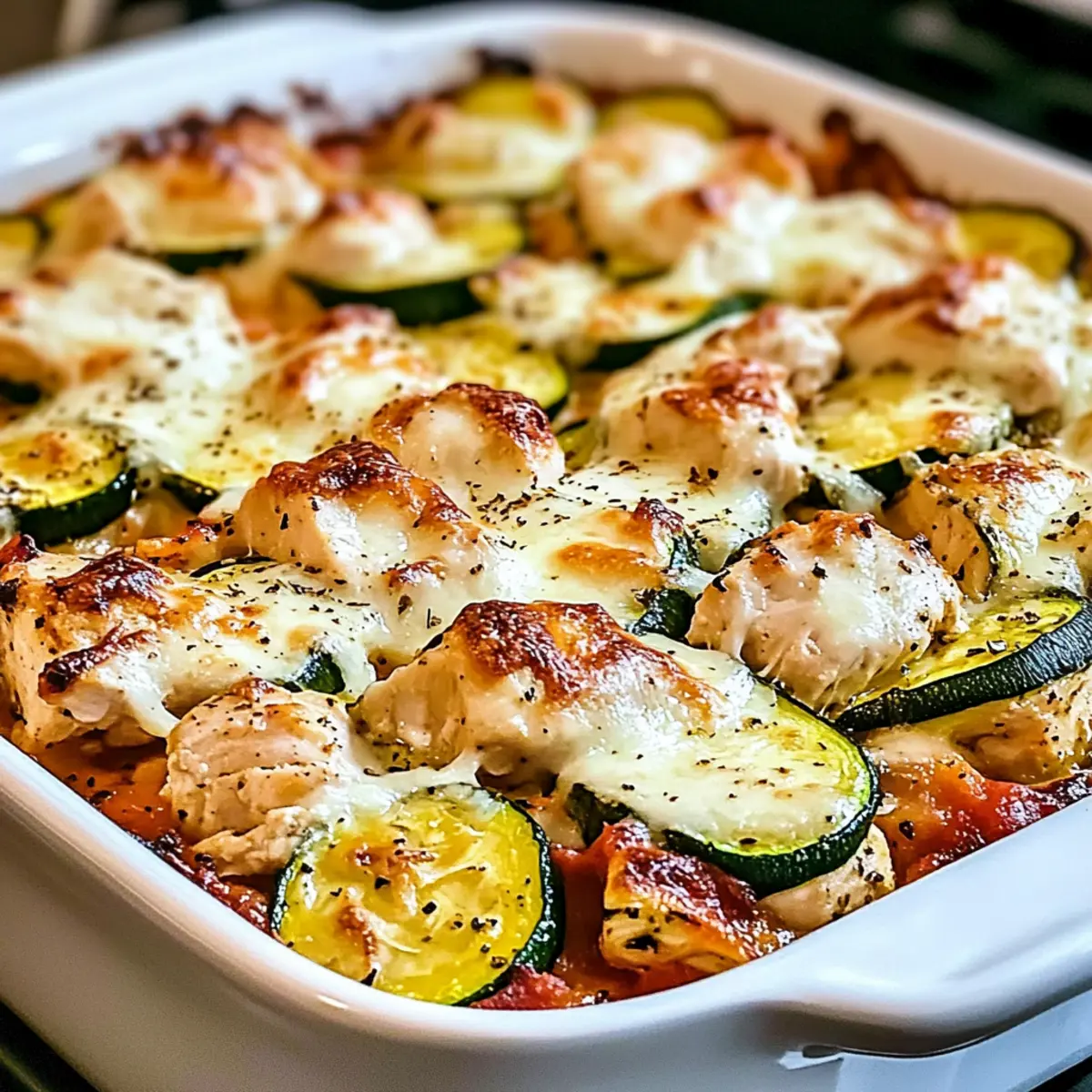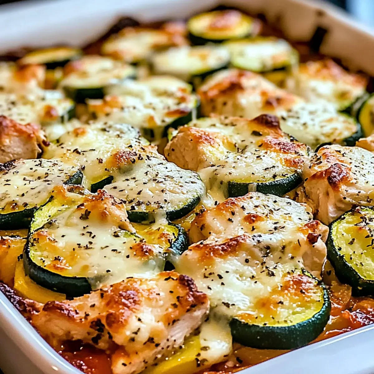 As the aroma of baked chicken fills the kitchen, memories of family gatherings come rushing back. This Chicken Zucchini Bake is my go-to recipe for cozy weeknight dinners and the perfect solution when I want to savor comfort food without hours of prep. Juicy chicken melds beautifully with tender zucchini and a gooey cheese topping, making it not just delicious, but also a meal prepped hero for busy days. It’s wonderfully customizable too, allowing me to swap in seasonal veggies or spices based on what I have on hand. Ready to fill your home with warmth and nostalgia? Let’s dive into the recipe! Why Will You Love This Chicken Zucchini Bake? Comforting Warmth: This Chicken Zucchini Bake wraps you in a cozy embrace with every bite, evoking memories of family meals shared around the table. Easy Prep: No complicated techniques here; just simple steps for delicious results that even beginner cooks can master in no time. Customizable Delight: Feeling adventurous? Swap out zucchini for bell peppers, or add your favorite spices to make it uniquely yours, like in my Cheesy Chicken Enchiladas recipe! Nutrient-Packed: With a balance of protein and veggies, this dish satisfies your cravings and provides essential nutrients, making it a wholesome choice for everyone. Crowd-Pleaser: Gather the family, because everyone will want seconds of this flavorful masterpiece! It’s the perfect centerpiece for your cozy family nights. Time-Saver: Assemble ahead of time and effortlessly bake it when hunger strikes—ideal for those busy weekdays! Chicken Zucchini Bake Ingredients For the Chicken Boneless, skinless chicken breasts – The foundation of this dish; make sure to season well for maximum flavor. For the Vegetables Zucchini – Adds a nutritious element; fresh and crispy, though bell peppers can be a delightful substitute. For the Moisture Olive oil – Ensures the chicken and zucchini stay tender while baking; feel free to use avocado oil if needed. For Seasoning Garlic powder – Instantly enhances flavor; fresh garlic can be an even bolder alternative. Italian seasoning – A delightful herb mix that ties everything together; swap with oregano or basil for a personal touch. For the Cheese Shredded cheese – Offers a gooey, melty topping; mozzarella or cheddar works beautifully in this Chicken Zucchini Bake. Step‑by‑Step Instructions for Chicken Zucchini Bake Step 1: Preheat the Oven Begin by preheating your oven to 400°F (200°C). While waiting for the oven to heat up, grab a baking dish and lightly coat it with nonstick spray. This will prevent the wonderful Chicken Zucchini Bake from sticking, ensuring a clean serving experience later on. Step 2: Season the Chicken Take your boneless, skinless chicken breasts and sprinkle a generous amount of salt and pepper on both sides. Next, add half of the Italian seasoning to the chicken to infuse it with savory notes. Allow the chicken to sit for a few minutes, letting the flavors meld beautifully. Step 3: Prepare the Zucchini Wash your zucchini thoroughly and slice it into ½-inch thick rounds. These slices will cook down perfectly, becoming tender while still holding their shape. Set them aside in a bowl; the zucchini will add both nutrition and moisture to the Chicken Zucchini Bake. Step 4: Assemble the Ingredients Layer the seasoned chicken breasts in the prepared baking dish, making sure they are placed side by side. Surround the chicken with a ring of the sliced zucchini, creating a colorful base; then, drizzle everything lightly with olive oil for added richness. This step ensures all ingredients blend harmoniously during baking. Step 5: Add Flavor Sprinkle the remaining Italian seasoning and garlic powder evenly over the top of the chicken and zucchini. This step enhances the dish with aromatic flavors, setting the stage for that incredible savory taste. Top everything generously with your choice of shredded cheese, creating a delicious, gooey layer. Step 6: Bake Place the baking dish in your preheated oven and bake for 30-35 minutes. The Chicken Zucchini Bake is done when the chicken reaches an internal temperature of 165°F (75°C) and the cheese is gloriously golden-brown. You’ll know it’s ready by the enticing aroma wafting through your kitchen! What to Serve with Chicken Zucchini Bake Elevate your dining experience by pairing this delightful dish with complementing sides that create a truly memorable meal. Fresh Garden Salad: A light, crisp salad brings a refreshing contrast to the savory bake. Toss together mixed greens, cherry tomatoes, and a zesty vinaigrette for brightness. Garlic Bread: Perfect for soaking up every last bit of cheesy goodness! The warm, buttery flavor enhances the comforting nature of the Chicken Zucchini Bake. Steamed Rice: Fluffy white or brown rice is a simple, neutral side that balances the dish’s richness. It’s also a hearty option to absorb flavors. Roasted Vegetables: Seasonal veggies like bell peppers and carrots offer a lovely caramelization that pairs beautifully with the bake. They add both color and nutritional value. Mashed Potatoes: Creamy mashed potatoes create a multi-layered comfort dish. Their buttery texture harmonizes seamlessly with the melt-in-your-mouth chicken. Chilled White Wine: A crisp Sauvignon Blanc or a light Pinot Grigio will enhance the dish’s flavors and elevate your dining experience. Enjoy it chilled for the perfect refreshment! Lemon Herb Quinoa: This protein-packed grain is a wholesome side, adding texture and a tangy zing that cuts through the richness of the bake. A win-win for health and flavor! Simple Fruit Salad: A slightly sweet fruit medley can cleanse the palate after the main dish, providing a delightful, light finish to your meal. Let these ideas guide you in creating a full dinner experience that perfectly highlights your Chicken Zucchini Bake! How to Store and Freeze Chicken Zucchini Bake Fridge: Store any leftovers in an airtight container for up to 3 day