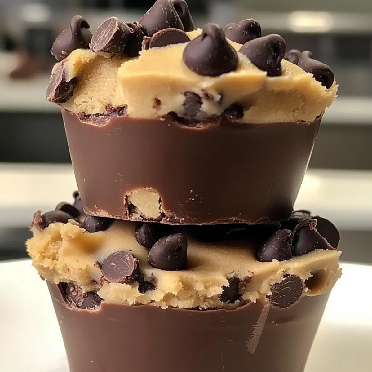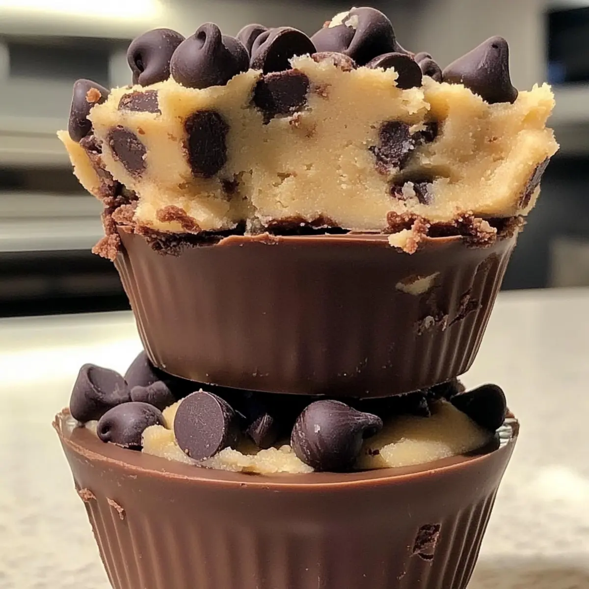 In a world where cravings can strike at any moment, I’ve discovered a delightful remedy: Keto Chocolate Cookie Dough Cups. These little nuggets of joy are not only quick to whip up but also a guilt-free way to indulge, thanks to their low-carb goodness. Picture this: a smooth, velvety chocolate shell cradling a soft, cookie-like center that hits all the right notes. Whether you’re looking for a sweet pick-me-up after a long day or a satisfying snack that won’t derail your diet, these no-bake treats are your answer. Plus, they’re freezer-friendly, meaning they’re ready whenever sweet urges come knocking. Are you ready to dive into the luscious world of cookie dough? Let’s get started! Why are these cups a must-try? Deliciously Indulgent: These Keto Chocolate Cookie Dough Cups bring together rich chocolate and cookie dough flavors, creating a dessert that feels indulgent without the guilt. Quick and Easy: Prep is a breeze! Just a few simple steps yield delightful results in no time. Freezer-Friendly: Make a batch and store them in the freezer for a quick, satisfying treat whenever cravings hit. Party-Ready: Perfect for entertaining, these cups will impress your guests and keep everyone coming back for more! Pair them with a scoop of Cookies Cream Ice for a show-stopping dessert experience. Adaptable: Swap out ingredients as you like! Try different nut flours or toss in your favorite nuts for extra crunch. With all these amazing qualities, you’ll want to keep these treats at the top of your dessert rotation! Chocolate Chip Cookie Dough Cups Ingredients • Get ready to create magic! For the Chocolate Base Chocolate Chips – Use sugar-free chocolate for a keto-friendly twist. Coconut Oil – Adds healthy fats and smoothness; unsalted butter works too. For the Cookie Dough Filling Butter – Provides structure and richness; replace with coconut oil for a dairy-free option. Sweetener – Opt for stevia or erythritol for a calorie-free sweetness. Vanilla Extract – Enhances flavor and can be omitted if desired. Greek Yogurt – Addscreaminess; substitute with sour cream or full-fat cream cheese as needed. Almond Flour – A low-carb flour alternative; can be swapped with coconut flour (adjust the amount). Oat Flour – Provides texture; can be replaced with more almond flour or ground oats. Sea Salt – Amplifies flavor; regular salt is a fine substitute. Mini Chocolate Chips – Optional for extra chocolate goodness; go for sugar-free for a keto version. Whey or Casein Protein Powder (optional) – Boosts protein content while keeping flavor intact; adjust sweetener and flour as required. Dive into this decadent treat and enjoy these delightful Chocolate Chip Cookie Dough Cups that will become your new favorite! Step‑by‑Step Instructions for Chocolate Chip Cookie Dough Cups Step 1: Prepare Chocolate Base Begin by melting your chocolate chips and coconut oil together in a double boiler or microwave. If using the microwave, heat in 30-second intervals, stirring in between, until the mixture is silky smooth. This forms the chocolate base for your delicious Chocolate Chip Cookie Dough Cups. Step 2: Form Chocolate Cups With the melted chocolate ready, take silicone muffin cups and spoon 1 to 2 teaspoons of the chocolate mixture into each one. Use the back of a spoon to carefully push the chocolate up the sides, ensuring an even coating. Transfer the cups to the freezer and let them set for about 10 minutes, until firm but not fully frozen. Step 3: Make Cookie Dough Filling In a mixing bowl, cream together softened butter and your chosen sweetener until fluffy and light in color. Then, blend in the vanilla extract and Greek yogurt, mixing thoroughly until smooth. Gradually fold in the almond flour, oat flour, and sea salt, ensuring all ingredients are combined well to create a rich cookie dough filling. Step 4: Adjust Dough Consistency Once your cookie dough is formed, assess its texture. If it feels too dry, drizzle in a splash of milk to achieve a softer consistency; if too wet, chill it briefly in the fridge or add a bit more flour. This step is crucial for achieving the ideal filling for your Chocolate Chip Cookie Dough Cups. Step 5: Assemble Cups Now it’s time to bring the cups together! Take about 1 tablespoon of your prepared cookie dough, roll it into a ball, and flatten it slightly. Gently press this dough disc into the chilled chocolate base of each cup, making sure it adheres well. Step 6: Add Toppings For an extra touch, sprinkle mini chocolate chips on top of the cookie dough filling, pressing them lightly into the surface. This step adds delightful chocolatey bursts to your Keto Chocolate Chip Cookie Dough Cups, enhancing both flavor and texture. Step 7: Chill to Firm Once assembled, place the cups back in the refrigerator for at least 30 minutes to firm up that delicious chocolate and cookie dough filling. If you’re in a hurry, an additional 10 to 15 minutes in the freezer will also work well to set these delightful treats. Step 8: Serve When you’re ready to indulge, gently pop the Chocolate Chip Cookie Dough Cups out of their silicone molds. Store them chilled in an airtight container until you’re ready to serve. Enjoy these creamy delights straight from the fridge for the best taste and texture! Storage Tips for Chocolate Cookie Dough Cups Room Temperature: These cups are best stored in the refrigerator for optimal texture and freshness; they shouldn’t be kept at room temperature for more than a couple of hours. Fridge: Store in an airtight container in the refrigerator for up to 1 week. This keeps the Chocolate Cookie Dough Cups fresh and prevents them from absorbing other fridge odors. Freezer: For longer preservation, freeze the cups for up to 3 months. Ensure they are in a freezer-safe, airtight container to avoid freezer burn. Reheating: For a scrumptious treat, pop them out of the freezer and let them thaw in the fridge for a bit before serving. E
