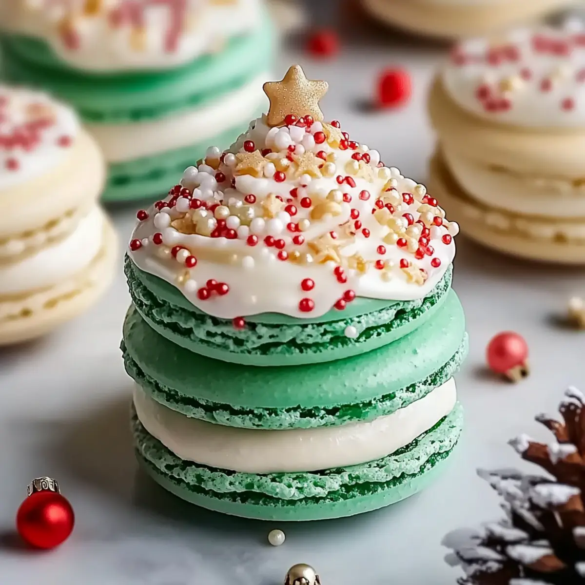 A delightful recipe for Christmas Tree Cake Macarons that captures the festive spirit of the holiday season.
