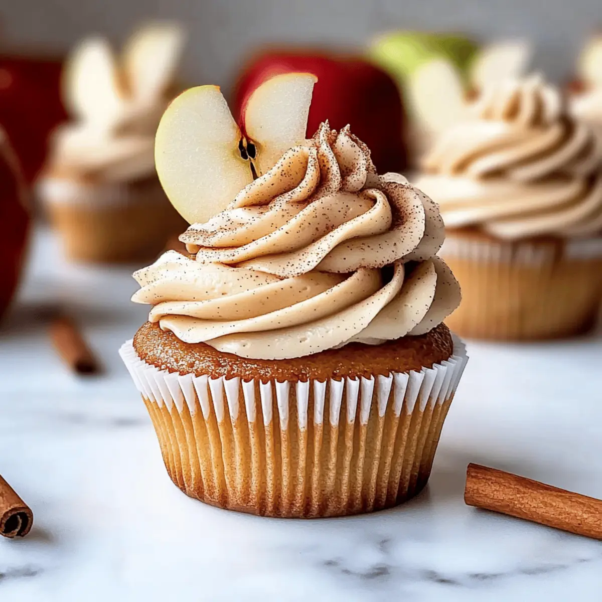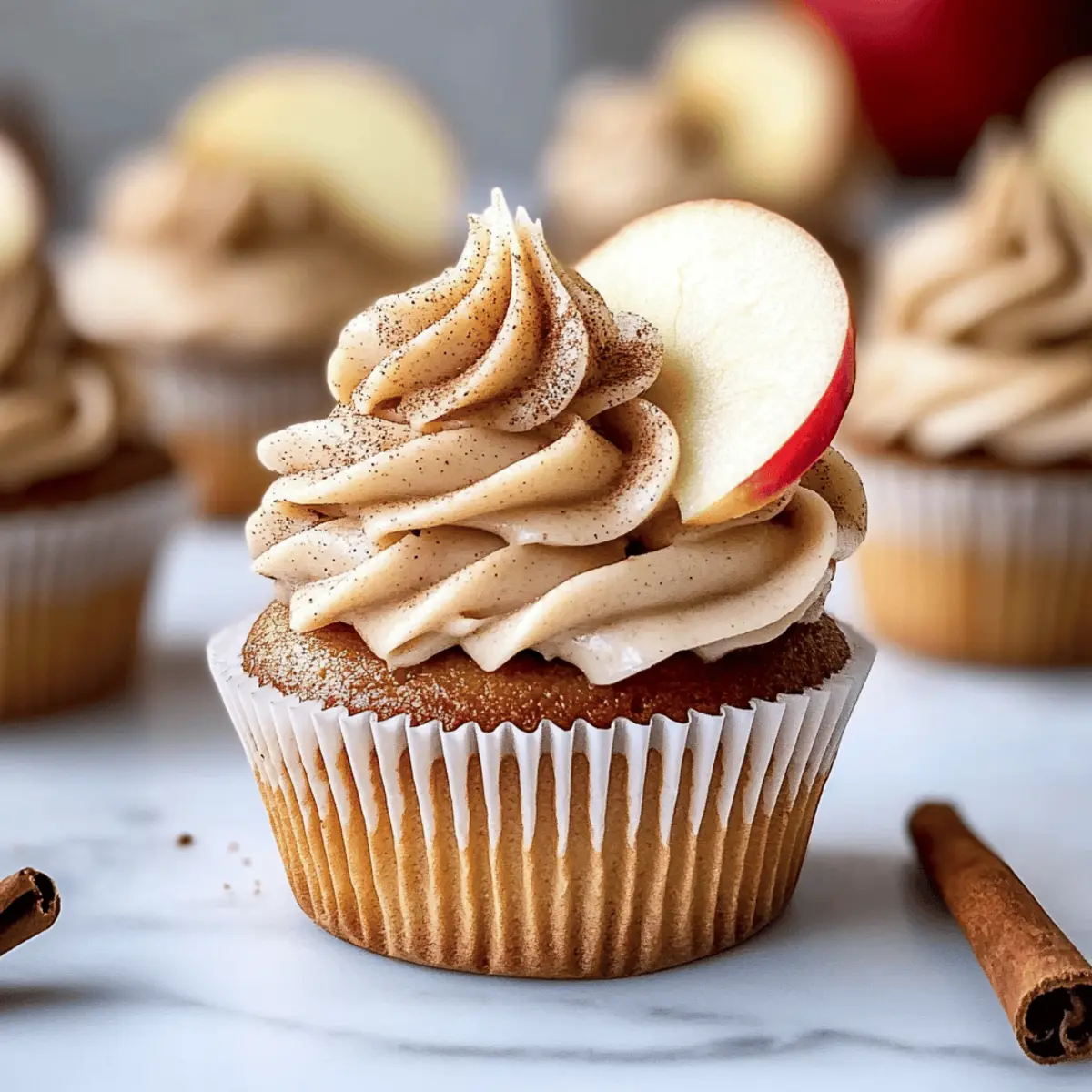 10. Frost the cooled cupcakes and garnish with thinly sliced apples soaked in lemon juice and a sprinkle of ground cinnamon.