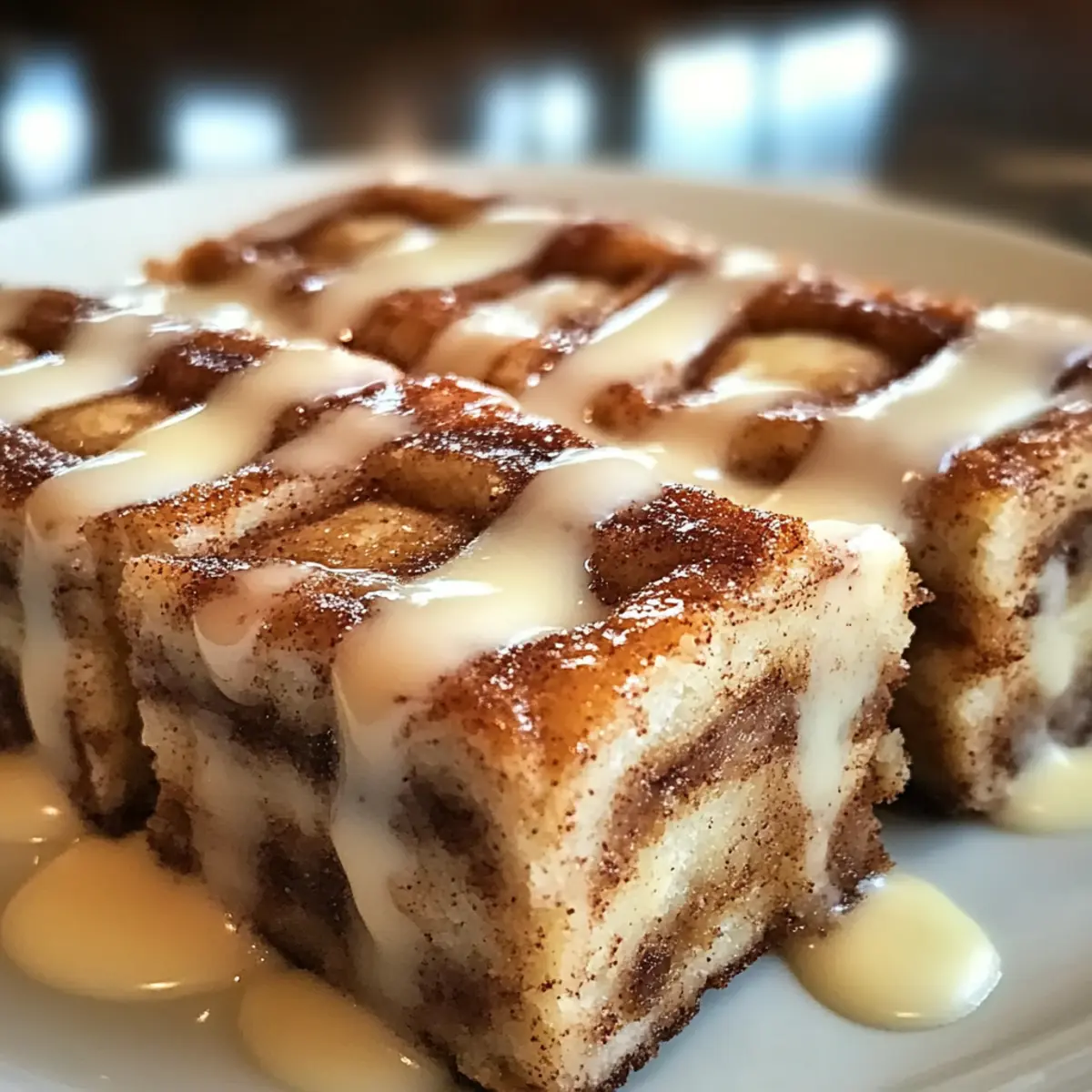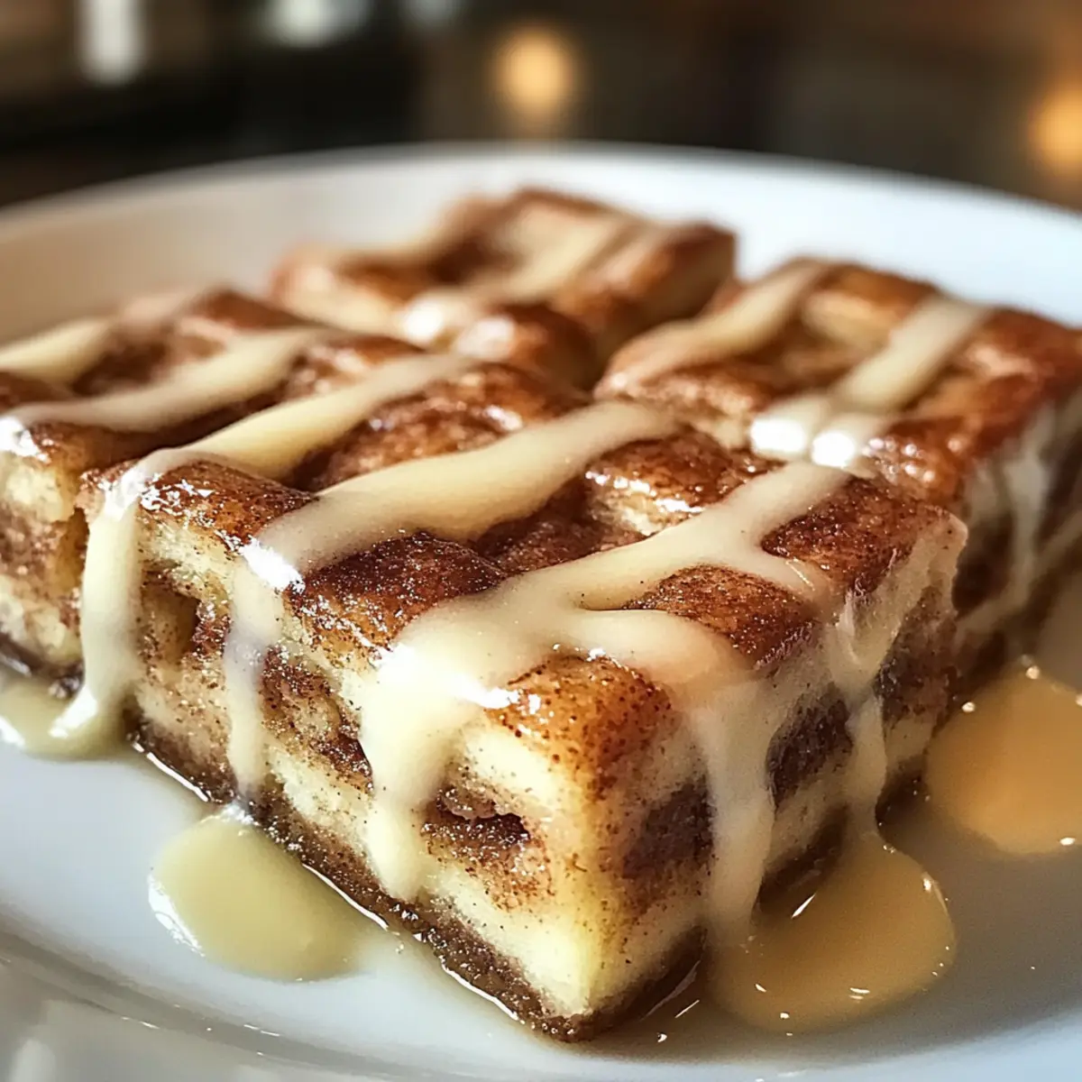 It’s that magical moment when the sweet, buttery scent of cinnamon wafts through your home, instantly transporting you to the coziness of your favorite bakery. With my Cinnamon Roll Bliss Bars, you can capture that warmth in just 45 minutes, making this a perfect dessert for those busy weeknights or spontaneous gatherings. These delightful bars combine the chewy goodness of classic cinnamon rolls with a creamy frosting that takes them over the top, creating an irresistible treat that’s vegetarian-friendly too. Whether you’re sharing them with friends or sneaking a slice for yourself with a cup of coffee, they promise comfort in every bite. Curious about how to bring this cinnamon joy to your kitchen? Let’s dive in! Why Are These Cinnamon Roll Bliss Bars Amazing? Irresistible Flavor: The combination of buttery cinnamon and sweet frosting creates a taste sensation you won’t be able to resist. Quick and Easy: In just 45 minutes, you can have these delightful bars baked and ready to share, making it perfect for last-minute gatherings. Versatile Options: Customize them with nuts, chocolate chips, or even cream cheese frosting for a unique twist! Crowd-Pleasing Treat: Great for family gatherings or coffee breaks with friends; everyone will love these comforting bars! Fuss-Free Baking: Forget about rolling dough; these bars come together in one bowl, making clean-up a breeze. Enjoy them warm or at room temperature, paired perfectly with a cup of coffee or your favorite tea! If you’re looking for more delightful treats, check out my Cinnamon Roll Sugar or Hawaiian Roll French recipes to keep the sweet vibes flowing. Cinnamon Roll Bliss Bars Ingredients For the Bars • Butter – Adds richness and moisture; use unsalted butter for better control of saltiness. • Brown Sugar – Provides sweetness and depth of flavor; both light and dark brown sugar can be used interchangeably. • Granulated Sugar – For additional sweetness and a light texture; ensure proper creaming for fluffiness. • Eggs – Bind ingredients and enhance moisture; use eggs at room temperature for better mixing. • Sour Cream – Adds moisture and a slight tang; Greek yogurt can be a substitution if needed. • Vanilla Extract – Enhances flavor; pure vanilla is preferred for authenticity. • All-Purpose Flour – Main structure provider; consider a gluten-free flour blend as an alternative. • Baking Powder – A leavening agent that helps bars rise; ensure freshness for the best results. • Baking Soda – Works alongside baking powder for proper leavening. • Ground Cinnamon – Key flavor component in the Cinnamon Roll Bliss Bars; adjust amount to taste if desired. • Salt – Balances sweetness and enhances flavors; use sea salt or table salt interchangeably. For the Frosting • Powdered Sugar – For frosting consistency and sweetness; add milk to achieve the desired texture. • Milk – Helps achieve the perfect frosting consistency; use whole or any plant-based milk according to preference. • Vanilla Extract – A touch enhances the frosting flavor; wouldn’t hurt to add a little extra for depth! Step‑by‑Step Instructions for Cinnamon Roll Bliss Bars Step 1: Preheat and Prepare Begin by preheating your oven to 350°F (175°C). While the oven is heating up, grab a 9×13 inch baking pan and grease it to ensure the bars don’t stick. This simple step sets the stage for achieving perfectly baked Cinnamon Roll Bliss Bars that will slide out effortlessly when done. Step 2: Cream Together Ingredients In a large mixing bowl, combine your softened unsalted butter, brown sugar, and granulated sugar. Use a hand mixer to cream these together on medium speed until the mixture is light and fluffy, about 3-4 minutes. This creates a rich foundation for your bars, adding moisture and texture that helps create that irresistible cinnamon roll flavor. Step 3: Incorporate Wet Ingredients Next, mix in the room temperature eggs, sour cream, and vanilla extract to your creamed mixture. Beat until just combined, ensuring not to overmix, as you want to maintain that light texture. This mixture will enhance the richness of your Cinnamon Roll Bliss Bars, infusing them with delicious flavor and moisture. Step 4: Combine Dry Ingredients In a separate bowl, whisk together the all-purpose flour, baking powder, baking soda, ground cinnamon, and salt. Mixing these dry ingredients well ensures even distribution of the leavening agents, which is crucial for the rise and texture of your bars. This step makes sure the final product is soft and fluffy. Step 5: Mix Wet and Dry Ingredients Gradually add the dry mixture to the wet ingredients, stirring gently with a spatula until just combined. You’re aiming for a thick, slightly sticky batter. This step is key in creating your Cinnamon Roll Bliss Bars, so resist the urge to overwork the batter, as this could lead to a tougher texture. Step 6: Spread the Batter Pour the thick batter into the prepared baking pan, using a spatula to spread it evenly across the bottom. Make sure there are no gaps or uneven areas, as this will ensure that your bars bake uniformly. The batter should fill the pan smoothly, ready to rise and create those chewy bliss bars. Step 7: Create the Cinnamon Topping In a small bowl, mix together a sprinkle of ground cinnamon and sugar for the topping. Generously sprinkle this mixture over the batter, creating a beautiful, aromatic layer that will enhance the cinnamon flavor in your Cinnamon Roll Bliss Bars as they bake. Step 8: Bake to Perfection Place the baking pan in the preheated oven and bake for 25-30 minutes. Keep an eye on them towards the end; they’re done when the edges are lightly golden and a toothpick inserted comes out clean. This step is crucial in ensuring you achieve that perfect soft and chewy texture. Step 9: Cool Completely Once baked, remove the pan from the oven and let the Cinnamon Roll Bliss Bars cool completely in the pan. This step