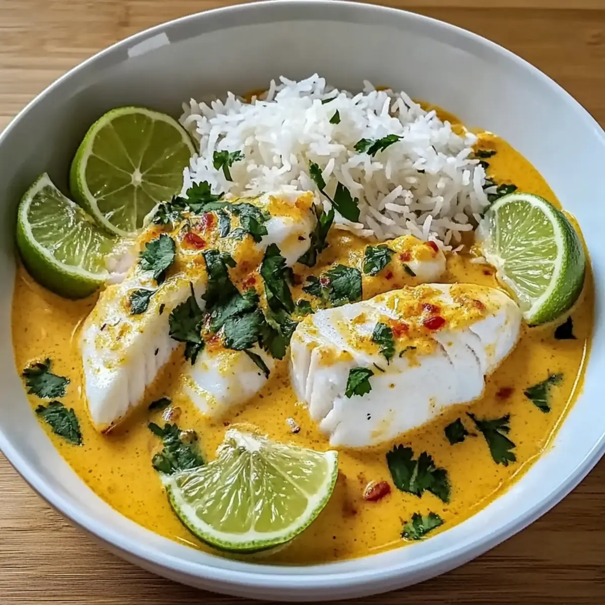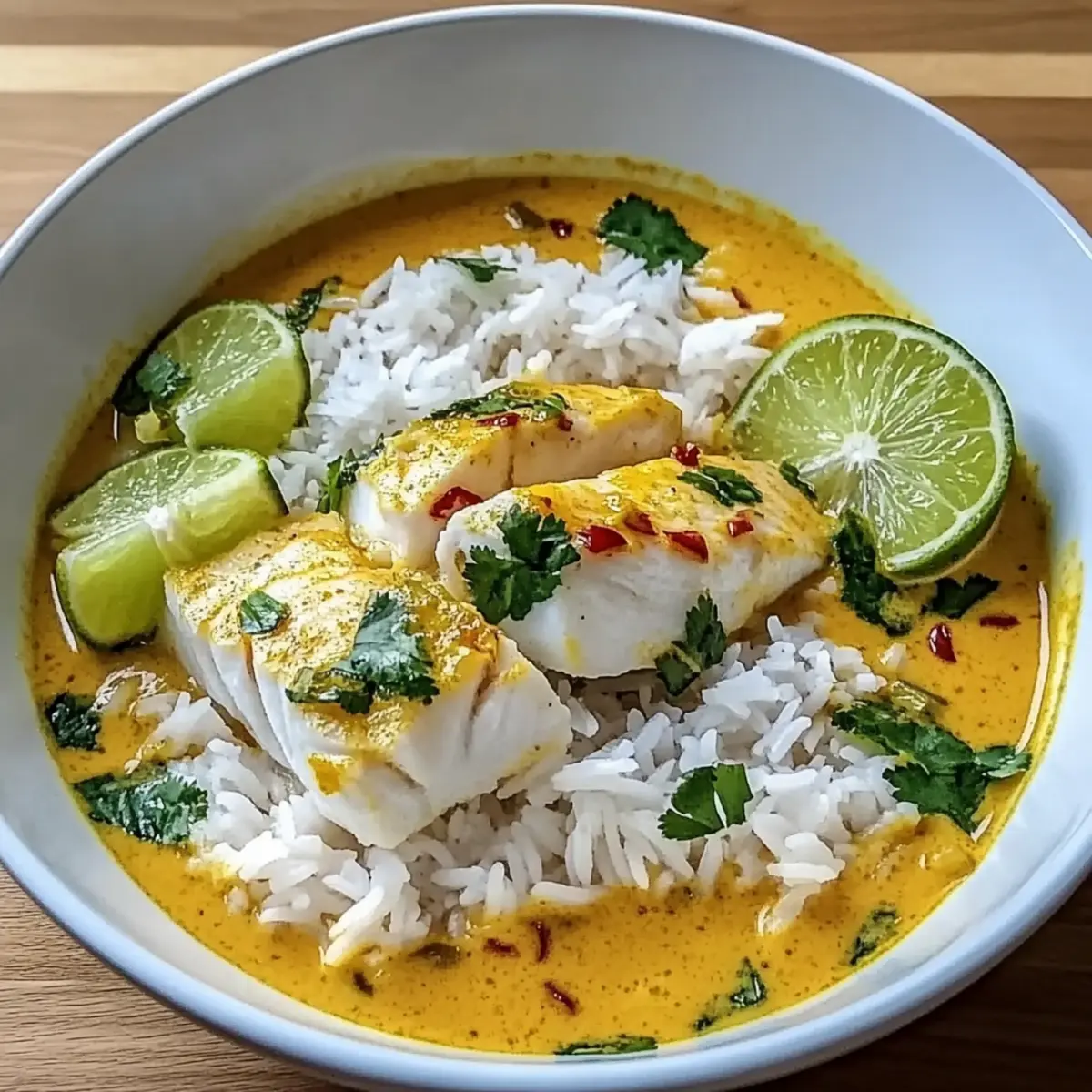 “Did you hear about the secret to a quick getaway in your own kitchen?” I was intrigued by this whispered conversation, especially when the topic turned deliciously tropical. Welcome to my take on Coconut Lime Fish Curry with Jasmine Rice, a dish that transports your taste buds straight to the sun-soaked shores of Southeast Asia. In just under 30 minutes, you can whip up this vibrant, creamy curry, perfect for busy weeknights or those leisurely family dinners when you want to impress without the fuss. Not only is it an unforgettable flavor explosion, but it also offers the flexibility of a vegan option, ensuring no one misses out on this culinary adventure. Ready to dive into your next home-cooked delight? Why choose Coconut Lime Fish Curry? Unique Flavor Fusion: This dish combines creamy coconut milk and zesty lime for an irresistible tropical taste. Quick Preparation: In just 30 minutes, you can serve a gourmet meal, making it perfect for busy evenings. Versatile Options: With a vegan alternative, everyone can enjoy this delightful curry, just swap fish for tofu! Balance of Textures: The tender fish paired with fragrant jasmine rice creates a comforting and satisfying experience. Crowd-Pleaser: A great option for family dinners or gatherings, serving this will surely impress your guests—don’t forget to offer it with a refreshing side like a Coconut Curry Shrimp for an even more tropical touch! Coconut Lime Fish Curry Ingredients For the Curry White Fish Fillets – Use cod or tilapia for a tender texture. Coconut Milk – Adds creaminess and depth; consider lite coconut milk for fewer calories. Red Curry Paste – Delivers heat and complex flavor; adjust to your spice preference. Fish Sauce (optional) – Enhances umami; omit for a vegan version. Limes – Juice and zest brighten the dish; lemon can be a substitute if needed. Garlic – Fresh minced garlic packs a flavorful punch; powdered garlic works in a pinch. Fresh Ginger – Adds warmth; ground ginger can be used as a substitute. Salt and Pepper – Essential seasonings to enhance flavors; opt for low-sodium as needed. Fresh Cilantro Leaves – For garnish and a touch of fresh flavor; green onions can be an alternative. For the Rice Jasmine Rice – Serves as the delightful base for the curry; Basmati rice can offer a different taste. Water – Necessary for cooking rice, ensuring fluffy perfection. Step‑by‑Step Instructions for Coconut Lime Fish Curry with Jasmine Rice Step 1: Prep the Ingredients Begin by cutting your white fish fillets into 1-inch chunks, which will ensure even cooking in the Coconut Lime Fish Curry. Mince 2 cloves of garlic and grate 1 tablespoon of fresh ginger; set these aside for flavoring. Zest and juice 2 limes, as both components will brighten the curry. This prep will take about 10 minutes and lays the groundwork for a delicious meal. Step 2: Cook the Curry Base In a large pan or skillet, heat 1 tablespoon of oil over medium heat until shimmering. Add in the prepared red curry paste, minced garlic, and grated ginger, stirring for about 2 minutes. You’ll notice the vibrant colors and rich aromas wafting up. Once fragrant, add the fish chunks to the pan and cook for 3-4 minutes, allowing them to lightly sear and begin to flake. Step 3: Simmer in Coconut Milk Pour in a can of coconut milk into the pan, followed by the freshly squeezed lime juice and zest. For flavor depth, you may add 1 tablespoon of fish sauce at this stage, or skip if keeping it vegan. Stir gently and bring to a simmer, letting the Coconut Lime Fish Curry cook for 10-15 minutes. During this time, the sauce will thicken slightly, coating the fish beautifully. Step 4: Prepare the Jasmine Rice While the curry simmers, rinse 1 cup of jasmine rice under cold water until the water runs clear. In a separate pot, combine the rinsed rice with 2 cups of water and a pinch of salt. Bring the mixture to a boil over high heat. Once boiling, reduce the heat to low, cover, and simmer for 15-20 minutes. The rice should be tender and fluffy by the time the curry is ready. Step 5: Serve the Dish After both the Coconut Lime Fish Curry and jasmine rice are prepared, fluff the rice with a fork and portion it onto serving plates. Ladle the fragrant curry over the rice, showcasing the tender fish in the creamy sauce. Garnish with fresh cilantro leaves and additional lime zest for an extra pop of color and flavor. Your delicious Coconut Lime Fish Curry is ready to transport your taste buds! Expert Tips for Coconut Lime Fish Curry • Fish Choice: Opt for fresh fish fillets like cod or tilapia to ensure the best texture in your Coconut Lime Fish Curry. Avoid frozen fish if possible for a more delicate flavor. • Spice Adjustment: Start with less red curry paste if you’re unsure about spice levels. You can always add more as you simmer, ensuring it suits your palate without overwhelming the dish. • Simmering Technique: Stir the curry gently as it simmers to prevent the fish from breaking apart. This preserves the tender texture, making every bite enjoyable. • Rice Rinsing: Rinse your jasmine rice thoroughly before cooking to remove excess starch. This step ensures the rice turns out fluffy and prevents it from becoming sticky. • Garnishing with Freshness: Don’t skip the garnish! Fresh cilantro and lime zest not only add color but also enhance the overall flavor of the Coconut Lime Fish Curry, making it irresistible. • Storing Leftovers: Store the curry and rice separately in airtight containers to maintain optimal texture. This way, you can enjoy the dish for up to 3 days without compromising quality. Storage Tips for Coconut Lime Fish Curry Fridge: Store Coconut Lime Fish Curry in an airtight container for up to 3 days to maintain freshness and flavor. Freezer: For longer storage, freeze the curry in a sealed container for up to 2 months. Ensure it is fully cooled before freezing to preserve texture. Reheating: When ready to enjoy, tha
