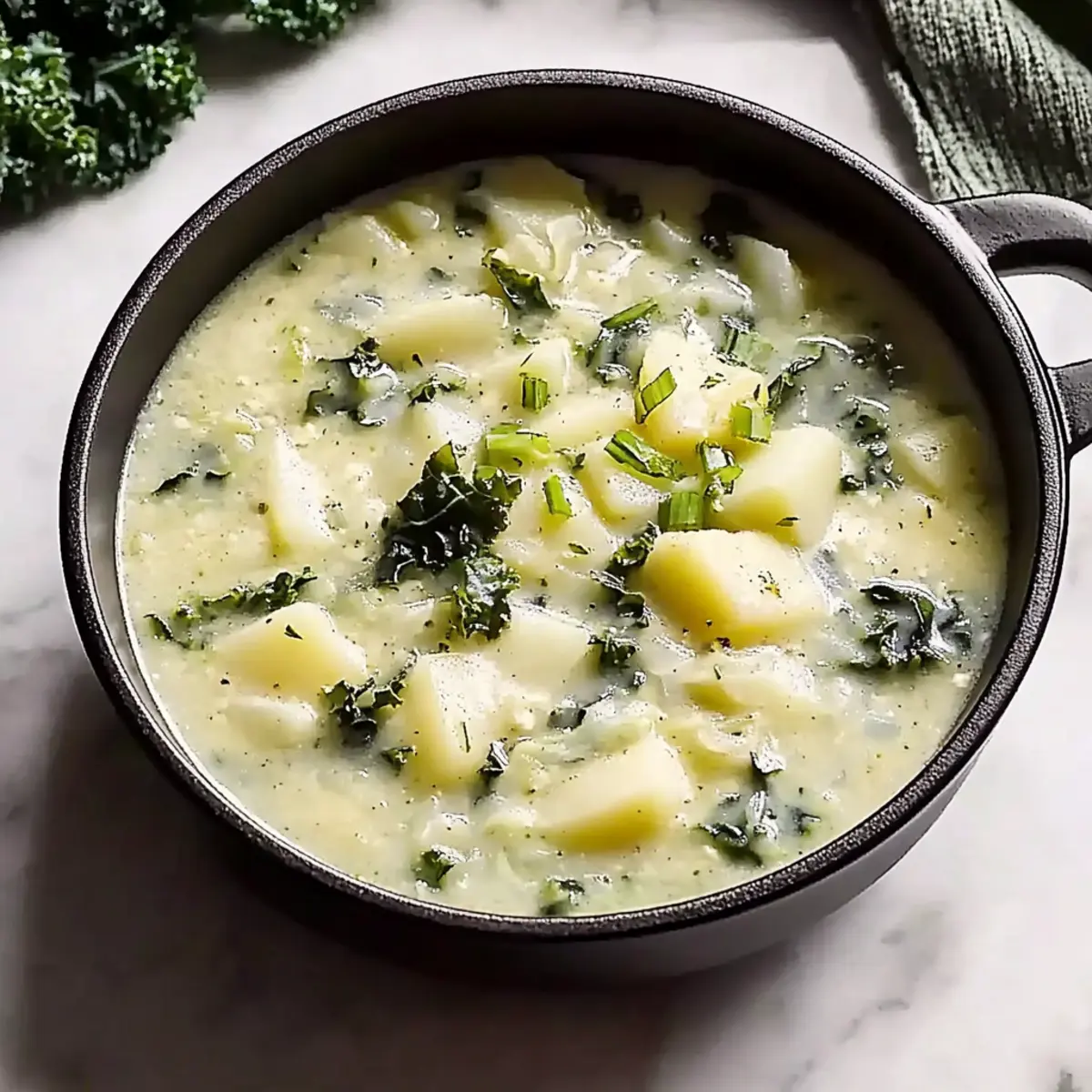 As I stood in my kitchen, the crisp evening air seeping through the window, the aroma of melting butter and sautéing leeks filled my senses. This Warm Colcannon Soup instantly transports me to Ireland, with its heartwarming blend of potatoes, cabbage, and kale—a classic comfort food that doesn’t compromise on flavor or richness. What I love most is its simplicity; with just a handful of ingredients and the magic of one pot, I can whip up a nourishing meal that the whole family will adore. Perfect for those busy weeknights or when the weather turns chilly, this soup hugs you from the inside out. Are you ready to discover just how easy it is to bring this cozy dish to your dining table? Why Is Colcannon Soup a Must-Try? Comforting, hearty goodness: This Warm Colcannon Soup combines the soul-soothing flavors of potatoes and greens in a creamy blend, making it ideal for cozy nights. One-pot wonder: Quick to prepare and easy to clean up, this recipe is perfect for busy evenings. Versatile ingredients: Feel free to swap in your favorite greens or add proteins like sausage for a different twist! Crowd-pleaser: Rich in taste yet simple enough for any cook, it’s sure to please the whole family. Pair it with thick slices of brown or soda bread for the ultimate experience! Meal prep friendly: Store leftovers in the fridge or freeze for future cozy dinners—this dish just gets tastier over time! Colcannon Soup Ingredients • A comforting blend awaits! For the Soup Base Butter – Adds richness and flavor; Kerrygold unsalted butter is recommended for best results. Leeks – Provides a sweet, mild flavor; Use only the white and light green parts, discarding the darker tops. Cabbage – Contributes texture and fiber; Shred into strips for even cooking. Kale – Adds nutritional value and color; Chop into bite-sized pieces for easy incorporation. Potatoes (Russet or Yukon Gold) – Main ingredient providing creaminess; Ensure even-sized chunks for consistent cooking. Chicken Stock – Provides depth of flavor; Swanson unsalted chicken broth is specifically noted. For the Seasoning Bay Leaves – Adds aromatic flavor; Discard after cooking. Salt – Enhances overall taste; Adjust according to stock’s saltiness. White Pepper & Black Pepper – Provides subtle heat and flavor complexity. For Creamy Finish Heavy Cream – Creates a luxurious texture; Can use lighter alternatives, but heavy cream is preferable. Green Onions – Adds a fresh garnish and mild onion flavor; Reserve some for garnish before serving. Step‑by‑Step Instructions for Colcannon Soup Step 1: Prep Ingredients Begin your colcannon soup by preparing the ingredients. Slice the white and light green parts of the leeks, ensuring they are well cleaned, as dirt often hides in the crevices. Shred the cabbage into strips, chop the kale into bite-sized pieces, and cube the potatoes into 1-inch chunks for even cooking. Taking these steps will set you up for a smooth cooking process. Step 2: Cook Vegetables In a large pot, melt 2 tablespoons of unsalted butter over medium heat. Add the prepared leeks, cabbage, and kale to the pot. Stir gently, cover the pot, and cook on low heat for 12-15 minutes, allowing the vegetables to soften without browning. This creates a flavorful base for your colcannon soup, filling your kitchen with aromatic goodness. Step 3: Add Potatoes & Stock Next, stir in the cubed potatoes and pour in about 4 cups of unsalted chicken stock. Toss in 2 bay leaves and a generous pinch of salt to enhance the flavors. Bring the mixture to a simmer over medium-high heat, then reduce to medium-low. Cook uncovered for 15-20 minutes until the potatoes are tender when pierced with a fork. Step 4: Finish Soup Remove the pot from heat. Discard the bay leaves and stir in freshly ground white and black pepper, along with 1 cup of heavy cream to achieve that creamy texture characteristic of a good colcannon soup. Fold in most of the sliced green onions, reserving some for garnish. Taste and adjust seasoning as needed, enhancing the richness of this comforting dish. Step 5: Serve Ladle the warm colcannon soup into bowls, ensuring each serving is hearty and inviting. Garnish with the reserved green onions for added freshness and color. This soup is best served hot, paired with thick slices of crusty bread, making for a perfect comforting meal on chilly evenings. How to Store and Freeze Colcannon Soup Fridge: Store leftover colcannon soup in an airtight container for up to 5 days. Reheat gently on the stovetop, adding a splash of chicken stock if it thickens too much. Freezer: Freeze colcannon soup in portions using freezer-safe bags or containers for up to 3 months. Thaw in the fridge overnight before reheating. Reheating: When reheating, warm the soup on medium heat and add a bit of broth or water to restore its creamy consistency if needed. Always stir well to ensure even heating. Airtight Storage: Make sure to seal the containers well to prevent freezer burn, which can affect the taste and texture of your delicious soup. Variations for Colcannon Soup Feel free to explore these delightful twists that will elevate your comforting colcannon soup experience! Dairy-Free: Swap heavy cream for coconut milk to keep it rich and creamy without the dairy. Add Protein: Boost the heartiness by stirring in cooked sausage or crispy bacon, making it a perfect one-pot meal. Different Potatoes: Use red potatoes for a creamier texture or sweet potatoes for a slight sweetness twist. Vegan-Friendly: Replace chicken stock with vegetable broth and omit the cream or use a plant-based cream for a scrumptious vegan option. Extra Greens: Choose spinach or Swiss chard instead of kale to switch up the flavor and add more nutrients to your bowl. Flavor Explosion: Add a teaspoon of Dijon mustard for a subtle yet exciting kick that pairs beautifully with the creamy soup. Heat Levels: Toss in a pinch of red pepper flakes or diced jalapeños if you’re craving a 