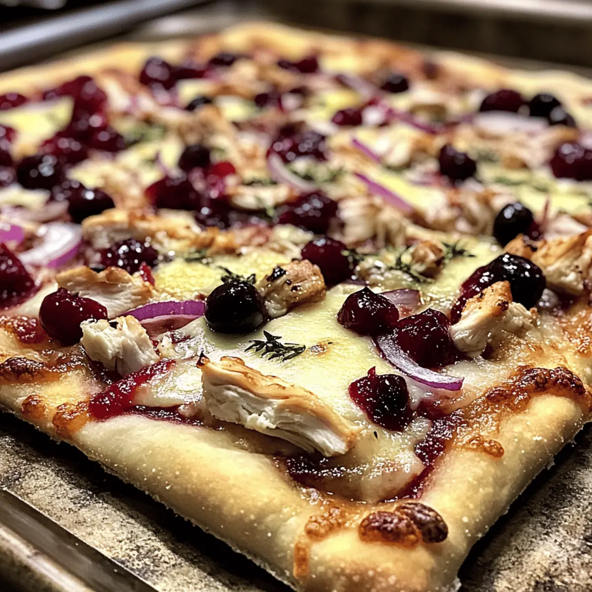 As I prepped for yet another weeknight meal, I quickly realized the fridge was brimming with leftover holiday chicken. Enter my secret weapon: Cranberry Chicken & Brie Pizza! The unexpected blend of tangy cranberry sauce, velvety Brie, and tender, shredded chicken creates a delightful medley that transforms simple ingredients into a show-stopping dish. What I love most about this recipe is its impeccable timing—it comes together in just 25 minutes, making it perfect for busy days or casual gatherings. Plus, it’s a great way to use up those holiday leftovers while treating your taste buds to something unique and scrumptious. Are you ready to dive into this delicious twist on pizza? Let’s get cooking! Why is Cranberry Chicken & Brie Pizza a Must-Try? Flavor Explosion: The combination of tangy cranberry sauce blended with rich Brie and savory chicken creates a heavenly taste adventure that will leave your taste buds wanting more. Quick Preparation: Ready in just 25 minutes, it’s perfect for those busy weeknights when you’re craving something special without spending hours in the kitchen. Leftover Hero: This recipe is an ingenious way to utilize leftover holiday chicken or turkey, helping to minimize waste while maximizing flavor. Versatile Offering: Feel free to switch up the cheese or add fresh greens for a personal touch. Whether served at a family dinner or a casual gathering, it’s guaranteed to impress! Crowd-Pleaser: With its unique flavor profile, this pizza is sure to be a hit at your next gathering. Pair it with a refreshing salad or light soup for a complete meal. For more ideas, check out our Cheesy Chicken Enchiladas or One Pot Chicken Dumpling Soup for delicious comfort food alternatives! Cranberry Chicken & Brie Pizza Ingredients For the Pizza Base • Pizza Crust – Use a pre-made crust for convenience, or create your own for a personal touch. For the Toppings • Shredded Chicken – This hearty ingredient adds protein; leftover turkey can be used instead for a festive twist. • Cranberry Sauce – Adds a delightful tanginess; whole-berry cranberry sauce is best for texture. • Brie Cheese – Brings creaminess and richness; Camembert is a suitable substitute if desired. • Mozzarella Cheese – Key for that gooey melt; low-moisture mozzarella yields the best results. • Red Onion – Offers a crunchy texture and a hint of spice; switch to shallots for a milder flavor. • Olive Oil – Enhances flavor and helps the crust crisp up perfectly; brush it onto the crust. • Thyme, Salt & Pepper – These seasonings elevate the overall taste; feel free to add Italian herbs for variation. • Fresh Arugula or Spinach – Provides a vibrant, peppery finish; basil or mixed greens work well as substitutes. Step‑by‑Step Instructions for Cranberry Chicken & Brie Pizza Step 1: Preheat Your Oven Begin by preheating your oven to 425°F (220°C). This ensures that your Cranberry Chicken & Brie Pizza bakes evenly and achieves that golden crust you crave. If you’re using a pizza stone, place it in the oven while preheating to mimic a pizzeria-style bake. Step 2: Prepare the Pizza Crust Roll out your pizza crust onto a baking sheet or pizza stone, stretching it to your desired thickness. Lightly brush the crust with olive oil to promote crispiness, enhancing the texture of your pizza. You should see a nice sheen on the dough, which will help the pizza brown beautifully as it bakes. Step 3: Mix the Chicken and Cranberry Sauce In a mixing bowl, combine shredded chicken with cranberry sauce until the chicken is evenly coated. This delicious mixture will be the star of your Cranberry Chicken & Brie Pizza. Aim for a nice, even distribution of sauce, ensuring each bite is bursting with flavor. Step 4: Assemble the Pizza Spread the cranberry-chicken mixture evenly over your prepared crust, leaving a small border for the crust. Layer generous slices of Brie cheese on top, allowing the creamy texture to meld into the warm toppings. Follow up with shredded mozzarella and a sprinkle of red onion to add a hint of spice. Step 5: Add Seasonings and Oil Drizzle a bit of olive oil over the layered pizza and sprinkle with thyme, salt, and pepper to taste. These seasonings will elevate the overall flavor of your Cranberry Chicken & Brie Pizza, giving it that extra touch of gourmet appeal. You’ll see the ingredients glisten, hinting at the deliciousness to come. Step 6: Bake the Pizza Carefully transfer your pizza to the preheated oven and bake for 12-15 minutes. Keep an eye on it as it bakes; you’re looking for melted cheese that’s bubbling and a crust that’s turning golden brown. This visual cue is a sign that your pizza is ready to come out. Step 7: Cool and Garnish Once baked to perfection, remove the pizza from the oven and let it cool for a few minutes. This helps the cheese set slightly, making it easier to slice. To finish, top your Cranberry Chicken & Brie Pizza with fresh arugula or spinach, adding a lovely color and peppery flavor before serving. Step 8: Slice and Serve Using a sharp pizza cutter, slice your pizza into generous pieces. Serve warm and enjoy the delightful flavor combination that defines this Cranberry Chicken & Brie Pizza. It’s a dish that’s perfect for sharing or enjoying all on your own! Expert Tips for Cranberry Chicken & Brie Pizza Prep Ahead: Consider mixing the chicken and cranberry sauce the day before. This saves time and enhances flavors when assembling your Cranberry Chicken & Brie Pizza. Crust Choice: For a gluten-free option, select a quality gluten-free pizza crust. Be sure to adjust baking time as needed to ensure it bakes thoroughly. Cheese Alternatives: If Brie isn’t available, creamy Camembert works wonderfully as a substitute. Remember, different cheeses can significantly change your pizza’s flavor. Don’t Overload: While it’s tempting to pile on toppings, avoid overcrowding your pizza. This prevents sogginess and allows each 