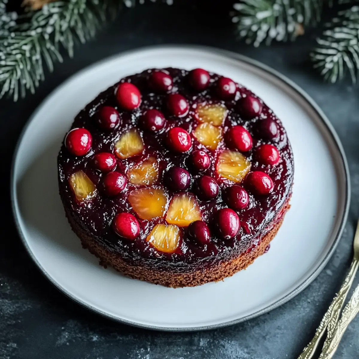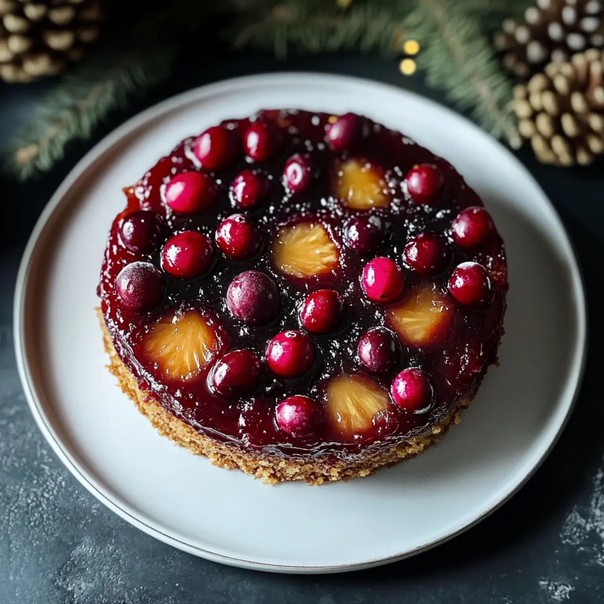The warm scent of caramelizing sugar and fresh cranberries whisked me back to festive family gatherings. I always look forward to the moment when the cake is flipped, revealing a stunning Cranberry Pineapple Upside-Down Cake that both dazzles the eyes and delights the palate. This easy-to-make dessert merges the tartness of cranberries with the sweetness of pineapple, creating a vibrant centerpiece for any table. Not only is it a showstopper for holiday celebrations, but it’s also a total crowd-pleaser that will have your guests asking for seconds. The best part? It comes together in no time, making it the perfect option for those busy days when you still want to impress. Ready to elevate your dessert game and charm everyone at your next gathering? Let’s dive into this festive flavor adventure! Why is this cake a festive delight? Unique Flavor Combination: The delightful pairing of tart cranberries and sweet pineapple brings a cheerful burst of flavor to the table. Easy Preparation: With a simple recipe and minimal cleanup, this cake is perfect for both novice bakers and seasoned chefs. Visual Appeal: The stunning caramelized topping creates a visually striking centerpiece that will wow your guests. Crowd Pleaser: This cake satisfies all palates, making it ideal for holiday gatherings and special occasions—watch your guests devour it! Versatile Twist: Feel free to adapt the recipe with mixed berries or a sprinkle of warm spices for a personalized touch. Serve it warm with ice cream, and you’ve got a dessert that’s simply unforgettable! Cranberry Pineapple Upside-Down Cake Ingredients For the Topping Unsalted Butter – Provides richness and moisture; ensure it’s at room temperature for easy creaming. Brown Sugar – Adds sweetness and caramelizes beautifully for the topping. Pineapple Rings – Serve as the base fruit layer, offering sweetness; fresh or canned work perfectly. Fresh or Frozen Cranberries – Adds vibrant tartness to balance the sweetness of the pineapple. For the Cake Batter All-Purpose Flour – Provides structure to the cake for a tender crumb. Baking Powder – A leavening agent ensuring a light, airy texture. Salt – Enhances flavor and balances sweetness. Granulated Sugar – Sweetens the cake batter to perfection. Large Eggs – Binds ingredients and adds richness; beat until pale for the best texture. Vanilla Extract – Brings aromatic sweetness that harmonizes the flavors. Pineapple Juice – Adds moisture and enhances the fruity flavor; can substitute with milk plus lemon juice if needed. Sour Cream – Contributes to the cake’s moistness and adds a hint of tang. Dive into this festive flavor adventure with a magnificent Cranberry Pineapple Upside-Down Cake that will surely impress your guests! Step‑by‑Step Instructions for Cranberry Pineapple Upside-Down Cake Step 1: Preheat the Oven Begin your festive adventure by preheating your oven to 350°F (175°C). While the oven warms up, grab a 9-inch round cake pan and generously grease it with butter to prevent sticking. This preparation sets the stage for a deliciously baked Cranberry Pineapple Upside-Down Cake that you’ll soon be proud to showcase. Step 2: Prepare the Topping In a medium saucepan over low heat, melt 4 tablespoons of unsalted butter along with ¾ cup of brown sugar until the mixture is bubbly and slightly caramelized, about 3-5 minutes. Carefully pour this buttery mixture into the base of your greased pan. Next, arrange the pineapple rings on top and evenly sprinkle with fresh or frozen cranberries, creating a vibrant and inviting topping. Step 3: Mix the Dry Ingredients In a large mixing bowl, whisk together 1 ½ cups of all-purpose flour, 2 teaspoons of baking powder, and ½ teaspoon of salt until thoroughly combined. This step ensures that your dry ingredients are evenly distributed, leading to a perfectly risen Cranberry Pineapple Upside-Down Cake. Set this bowl aside as you prepare to blend your wet ingredients. Step 4: Cream Butter and Sugar In a separate bowl, use an electric mixer to beat 6 tablespoons of softened unsalted butter with 1 cup of granulated sugar until the mixture becomes light and fluffy, about 3-4 minutes. Add in 2 large eggs one at a time, letting each blend well before adding the next. Follow this with a splash of 1 teaspoon of vanilla extract for an aromatic kick that will enhance the flavors of your cake. Step 5: Combine Wet and Dry Mixtures Now, it’s time to merge the flavors! Gradually add in the flour mixture, alternating with ½ cup of pineapple juice, beginning and ending with the flour. Mix just until combined to maintain the cake’s tenderness. Finally, fold in ½ cup of sour cream until the batter is smooth and creamy, ensuring no lumps remain. You’ll see the vibrant colors come together beautifully! Step 6: Bake the Cake Pour the luscious cake batter over the caramelized topping in your prepared pan, spreading it evenly. Place the pan in the preheated oven and bake for approximately 40-45 minutes. Keep an eye on the cake; it’s done when a toothpick inserted in the center comes out clean, and the top is golden brown and slightly puffed. Step 7: Cool and Invert Once baked, remove your Cranberry Pineapple Upside-Down Cake from the oven and allow it to cool in the pan for about 10 minutes. This cooling period is crucial for the caramel to set properly. Afterward, carefully run a knife around the edges of the cake, place a serving plate on top, and confidently invert the cake onto the plate. Your stunning cake is now ready to serve! How to Store and Freeze Cranberry Pineapple Upside-Down Cake Room Temperature: Store the cake covered at room temperature for up to 1-2 days. This keeps it moist and flavorful for your quick snacking needs! Fridge: If you plan to keep it longer, refrigerate the cake for up to 4-5 days, wrapped in plastic wrap or a cake dome to maintain its integrity. Freezer: Freeze slices of the Cranberry Pineapple Upside-Down 