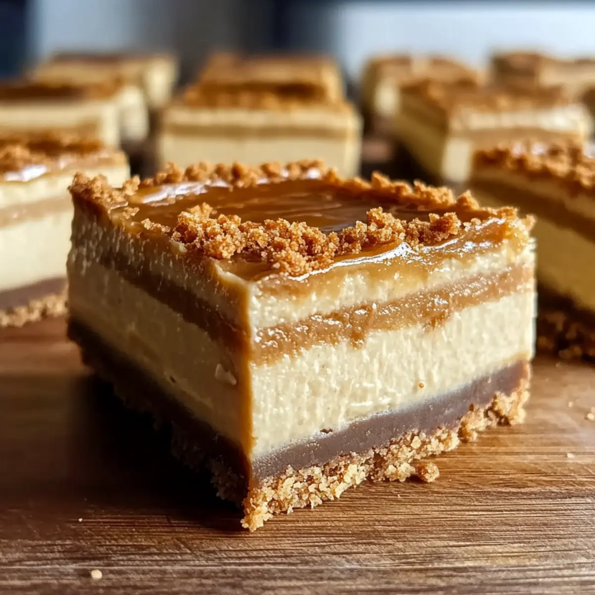 Picture a warm afternoon with the sweet scent of spiced cookies wafting through your kitchen. That’s exactly the feeling you’ll capture when you make these Creamy No-Bake Biscoff Cheesecake Bars. The buttery crust made from crunchy Lotus Biscoff cookies is just the start; it’s topped with a luxuriously smooth and creamy filling that features lip-smacking swirls of cookie butter. Not only is this dessert a crowd-pleaser with its stunning presentation, but it’s also a no-bake delight that’s quick to whip up and perfect for any occasion. Whether you’re a seasoned home chef or just looking for a delicious way to shake things up, this recipe has you covered. Ready to dive into a dessert that’s both simple and incredibly satisfying? Let’s get started! Why Are These Bars So Irresistible? Decadent Flavor: The Creamy Biscoff Cheesecake Bars boast a heavenly blend of spiced cookie flavor and creamy richness that keeps you coming back for more. No-Bake Joy: This recipe is a quick, no-bake treat, meaning you can indulge without the hassle of turning on the oven. Versatile Options: Feel free to swap in gluten-free cookies or alternative spreads for a personalized twist that suits your dietary needs. Crowd-Pleasing Appeal: With a visually stunning layer of melted Biscoff spread, these bars are perfect for gatherings and will have everyone asking for the recipe! Easy Prep Time: With just a few simple steps and minimal ingredients, you’ll have these delicious bars chilling in no time—perfect for a last-minute dessert! If you’re also looking for other unique desserts, don’t miss out on the deliciousness of a Basque Burnt Cheesecake or some fun Cheesecake Ice Cream to keep everyone smiling. Creamy Biscoff Cheesecake Bars Ingredients • For the Crust Lotus Biscoff Cookies – These provide a buttery and spiced flavor for the base; feel free to substitute with gluten-free cookies for a gluten-free version. Unsalted Butter – Essential for binding the crumbs together; ensure it’s melted for a cohesive mixture. • For the Creamy Filling Cream Cheese (full-fat, softened) – Key for achieving a smooth texture in the filling; avoid low-fat options as they can lead to lumps. Powdered Sugar – Sweetens the filling and adds creaminess; you can reduce the amount for a less sweet experience. Pure Vanilla Extract – Enhances the overall flavor; opt for high-quality extract for the best taste. Biscoff Spread – The star ingredient that introduces a delicious cookie flavor; you can substitute with another type of cookie butter if desired. Heavy Whipping Cream – Provides a light and airy texture; whip until stiff peaks form for the perfect no-bake consistency. • For the Topping Biscoff Spread – Melted and poured over the filling for a rich finish; it adds an indulgent layer that complements the cheesecake bars beautifully. Step‑by‑Step Instructions for Creamy Biscoff Cheesecake Bars Step 1: Prepare Pan Start by lining a 9×9 inch baking pan with parchment paper, allowing extra paper to hang over the sides. This “sling” will help you easily lift the cheesecake bars out later. Ensure the paper covers the bottom and sides well for easy removal. Set aside while you make the crust. Step 2: Make Crust Using a food processor, crush the Lotus Biscoff cookies into fine crumbs, then transfer them to a mixing bowl. Pour in the melted unsalted butter and mix until evenly combined. Press this mixture firmly into the bottom of the prepared pan using the back of a flat measuring cup. Freeze the crust for about 15-20 minutes, until it’s firm and holds together. Step 3: Cream Cheese Filling In a large mixing bowl, beat the softened cream cheese with an electric mixer on medium speed until smooth and creamy, about 2-3 minutes. Gradually add the powdered sugar and pure vanilla extract, mixing until fully incorporated. Then, blend in the Biscoff spread until the filling is uniform and creamy. Set aside while you whip the cream. Step 4: Whip Cream In a separate bowl, pour in the heavy whipping cream and whip using an electric mixer on high speed until stiff peaks form, which usually takes about 2-4 minutes. Be careful not to overwhip. Gently fold the whipped cream into the cream cheese mixture using a spatula, being careful to maintain the airy texture for your Creamy Biscoff Cheesecake Bars. Step 5: Layer Once your crust has set, pour the creamy filling over the crust in the pan. Use a spatula to smooth the top evenly and ensure it covers the crust completely. This layer will be rich and creamy, creating a delightful contrast to the firm base below. Step 6: Prepare Topping Melt the remaining Biscoff spread in the microwave for 15-20 seconds until it’s pourable, but not too hot. Carefully drizzle the melted spread over the cheesecake layer, then use a spatula to spread it evenly across the top. This luscious topping adds a superb finishing touch to your Creamy Biscoff Cheesecake Bars. Step 7: Chill Cover the pan with plastic wrap or foil and refrigerate for at least 6 hours, although overnight is recommended for the best set. This chilling time allows the flavors to meld, and the bars will firm up nicely, ready for slicing. Step 8: Slice Once fully chilled, remove the cheesecake bars using the parchment sling. Place on a cutting board and slice into 16 squares, dipping your knife in hot water between cuts for clean edges. Serve these beautiful Creamy Biscoff Cheesecake Bars chilled, and watch them disappear! Make Ahead Options These Creamy Biscoff Cheesecake Bars are a fantastic choice for meal prep, saving you valuable time on busy days! You can prepare the crust and filling up to 24 hours in advance; simply follow the initial steps and refrigerate them until you’re ready to serve. To maintain their delicious quality, cover them tightly to prevent drying out. When you’re ready to finish, melt the Biscoff spread and pour it over the chilled filling, smoothing it out before slicing. Just 