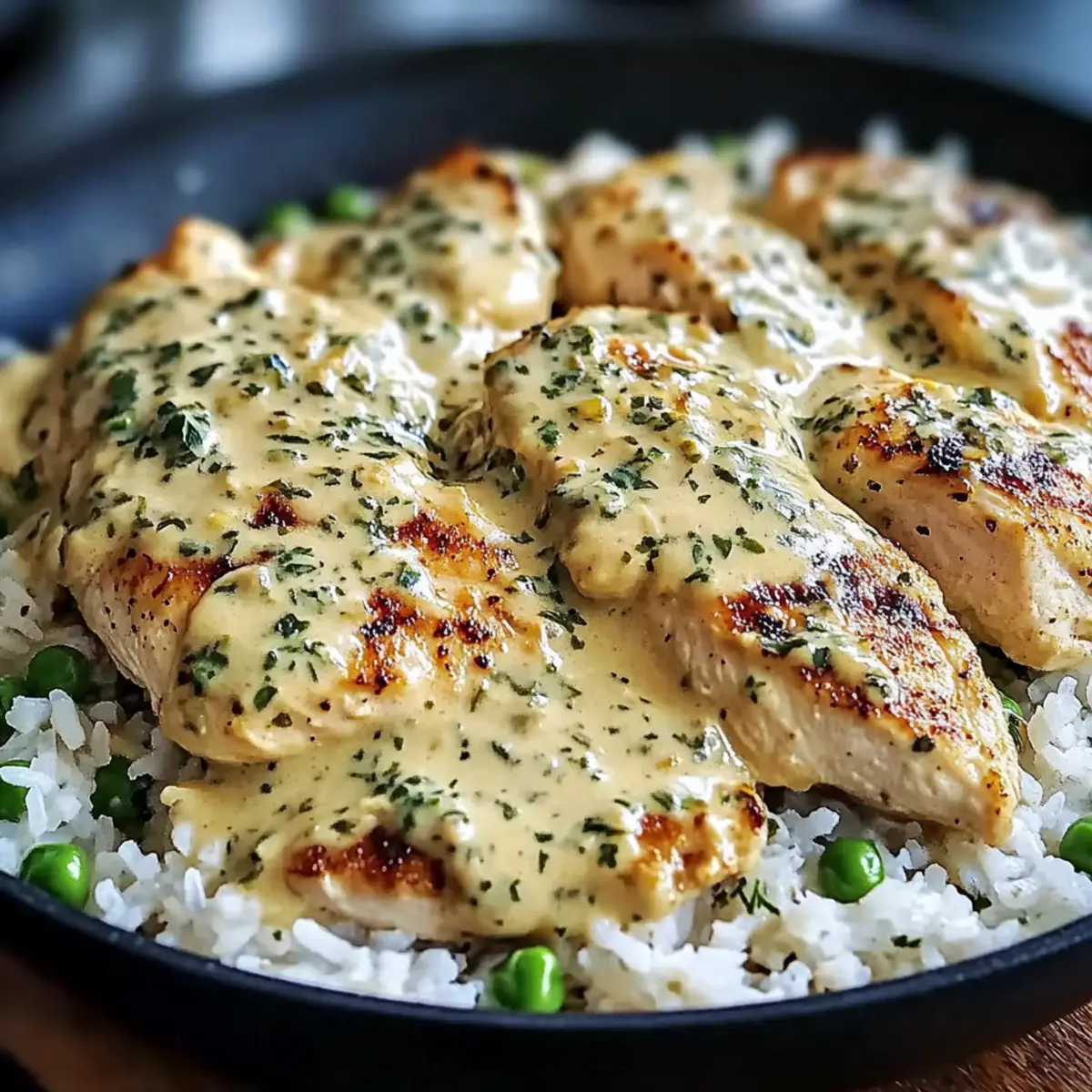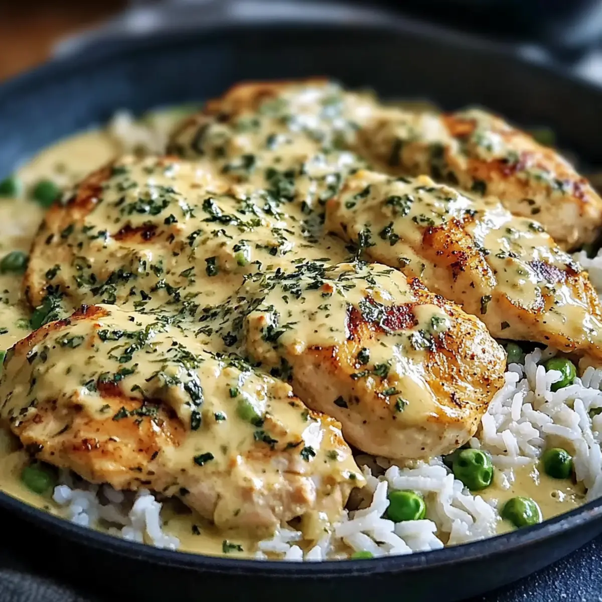 As I stood in my kitchen with the comforting fragrance of garlic and thyme wafting through the air, a simple thought hit me: why not bring a little warmth to the table tonight? That’s exactly when I decided to whip up this Creamy Chicken and Rice Skillet Recipe. Picture a dish that marries tender chunks of chicken with a velvety sauce, all nestled on a bed of fluffy rice. This one-pan wonder is not only a breeze to prepare but also a true crowd-pleaser, perfect for those weeknight dinners when you crave comfort without the fuss. With just a few adaptable ingredients, you can customize it to your heart’s content. Ready to create a meal that wraps you in a cozy embrace? Let’s dive into this deliciousness! Why is This Skillet Recipe a Must-Try? Simplicity: This Creamy Chicken and Rice Skillet is a one-pan meal, making cleanup a breeze. Versatile Ingredients: You can easily switch up the veggies or use your favorite proteins, ensuring it never gets boring. Cozy Appeal: The rich, creamy sauce combined with perfectly cooked rice delivers the ultimate comfort food experience. Time-Saving: Ready in under 30 minutes, this dish is perfect for busy weeknights. Crowd-Pleaser: Whether for family dinner or a gathering, this recipe is sure to impress everyone at the table. Pair it with a crisp salad or crusty bread for a complete experience! If you enjoy flavorful chicken dishes, you might also love Garlic Butter Chicken or Smothered Chicken Rice. Creamy Chicken and Rice Skillet Ingredients For the Chicken Chicken Breasts – The star of the dish; for the best tenderness, use fresh, high-quality chicken. For the Rice Long-Grain White Rice/Jasmine Rice – Provides a fluffy base that absorbs all that delicious sauce; remember to rinse it for optimal texture. For the Aromatics Olive Oil – Great for sautéing and adds a healthy fat for cooking the onions and garlic. Onion – Brings a natural sweetness; sauté until translucent for maximum flavor. Garlic – Minced for an aromatic boost that enhances the overall taste of the Creamy Chicken and Rice Skillet. For the Sauce Heavy Cream – The key to a rich, velvety sauce; don’t skimp on this to achieve that indulgent texture. Paprika, Salt, Pepper, Thyme – These spices create flavor complexity; feel free to adjust according to your taste preferences. Chicken Broth – The liquid that infuses your rice with flavor; a vegetable broth can be used for a lighter twist. For the Extras Frozen Peas (optional) – Adds vibrant color and a touch of sweetness; swap them for spinach or omit based on what you have. Now that you have all the ingredients for your Creamy Chicken and Rice Skillet, it’s time to get cooking and make something cozy and delightful! Step‑by‑Step Instructions for Creamy Chicken and Rice Skillet Recipe Step 1: Cook the Rice Rinse 1 cup of long-grain white rice under cold water until the water runs clear, then combine it in a saucepan with 2 cups of chicken broth. Bring the mixture to a boil, then reduce the heat to low, cover it, and simmer for about 18-20 minutes until the rice is fluffy and has absorbed the liquid. Once done, remove it from heat and set it aside, allowing it to steam gently. Step 2: Sauté Onion In a large skillet, heat 2 tablespoons of olive oil over medium heat. Add 1 diced onion and sauté for 2-3 minutes until it becomes translucent and fragrant. Stir occasionally to prevent burning and ensure even cooking. This step builds a foundation of flavor for your Creamy Chicken and Rice Skillet, enticing your kitchen with irresistible aromas. Step 3: Add Garlic Stir in 3 minced garlic cloves and cook for an additional 1 minute until the garlic is fragrant and lightly golden. Keep a close eye on the garlic to prevent it from browning too much, as this can result in a bitter taste. The garlic adds a delightful aroma and depth of flavor to your skillet dish. Step 4: Cook Chicken Season 1 pound of chicken breasts with paprika, salt, pepper, and thyme. Increase the heat to medium-high and add the chicken to the skillet, searing for about 5-6 minutes on each side until golden brown and the internal temperature reaches 165°F. Remove the chicken from the skillet and set it aside on a plate, allowing the juices to settle. Step 5: Prepare Cream Sauce Lower the heat to medium and pour in 1 cup of heavy cream into the skillet, using a spatula to scrape up any browned bits from the pan. Allow the cream to simmer gently for about 3-5 minutes until it thickens slightly. Stir consistently to prevent the cream from scorching and to fully incorporate the flavorful remnants left behind from cooking the chicken. Step 6: Combine and Serve Return the chicken to the skillet, nestling it into the creamy sauce. Add the cooked rice and gently fold it into the mixture, ensuring everything is well combined and heated through. If desired, stir in 1 cup of frozen peas for added color and sweetness. Cook for an additional 2-3 minutes until everything is warmed and cozy together. This Creamy Chicken and Rice Skillet is now ready to be served, showcasing its rich, indulgent flavors in every bite! What to Serve with Creamy Chicken and Rice Skillet As you savor the rich flavors of this delightful dish, consider these complementary sides to create a heartwarming meal experience. Garden Salad: A fresh garden salad adds a bright, crisp contrast. Toss together mixed greens, cherry tomatoes, and cucumbers, drizzled with a tangy vinaigrette for a refreshing bite. Garlic Bread: Nothing beats thick slices of garlic bread to mop up that creamy sauce. Toasted to perfection, it brings a satisfying crunch while soaking in delightful flavors. Steamed Broccoli: Lightly steamed broccoli provides a nutritious and vibrant addition to your plate. The slight bitterness beautifully balances the creaminess of the chicken and rice. Roasted Asparagus: Crisp-tender asparagus spears roasted with olive oil, salt, and lemon elevate the meal with their bright flavors, adding 