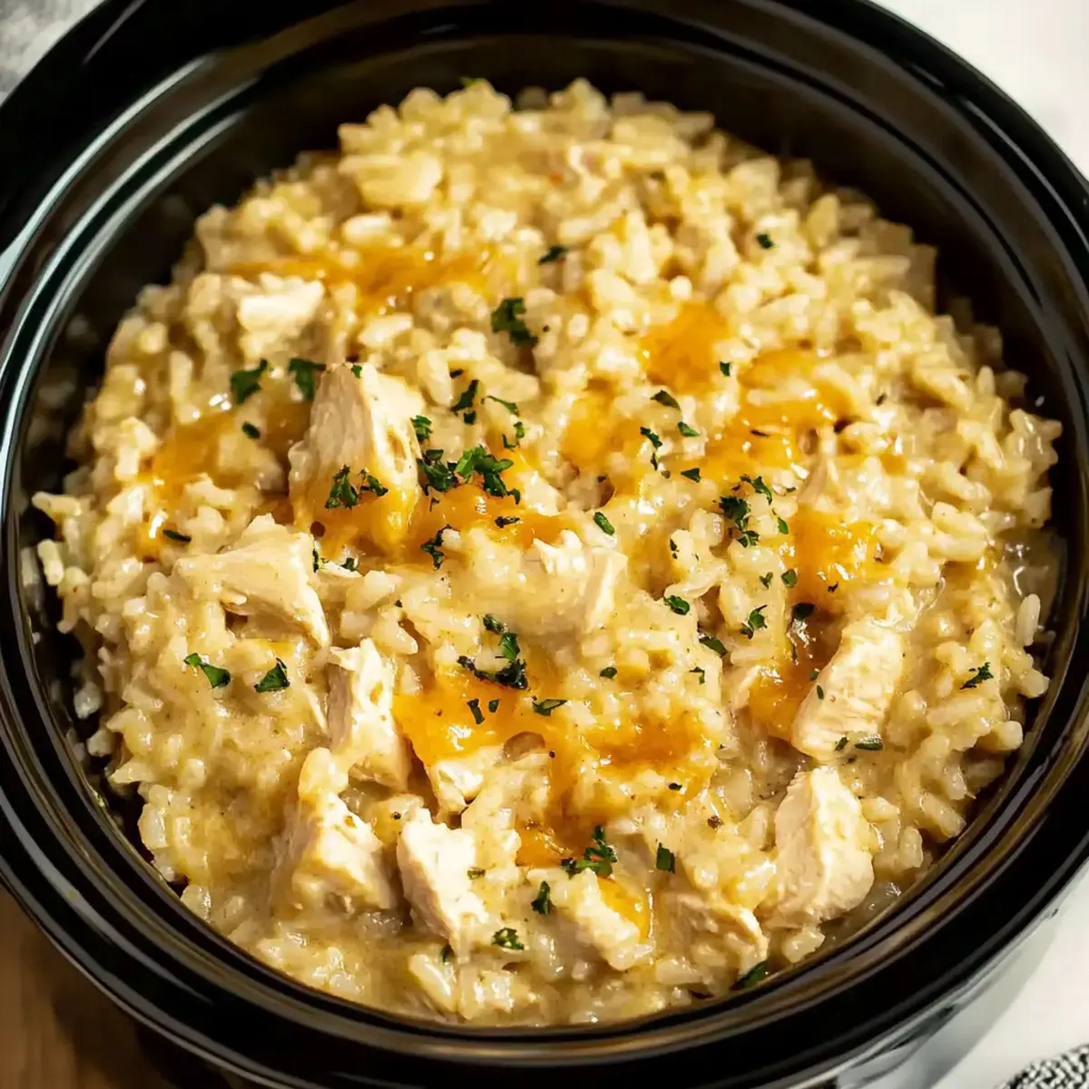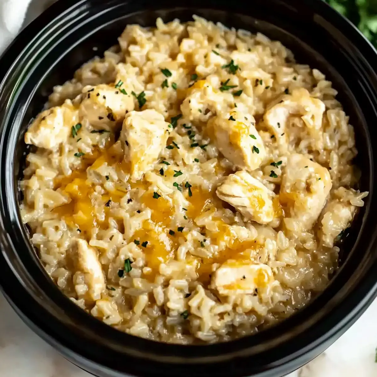 As I savored the aroma wafting through my kitchen, I knew I had stumbled upon a secret weapon for busy weeknights: Creamy Crockpot Chicken and Rice. This comforting slow cooker meal transforms tender chicken and hearty brown rice into a satisfying dish that feels like a warm hug on a plate. It’s not just about the incredible flavors; it’s also a lifesaver on days when time is limited, requiring minimal prep while delivering a meal the whole family will adore. Plus, the flexibility of using either chicken thighs or breasts, along with your choice of brown or white rice, makes this recipe effortlessly customizable. Curious how such simplicity can lead to such deliciousness? Let’s dive in! Why is this recipe a must-try? Simplicity and ease: This recipe requires just a few minutes of prep, making it ideal for busy evenings. Comforting flavors: The creamy sauce combined with tender chicken and hearty rice will warm your heart and satisfy your cravings. Versatile options: Choose between chicken thighs or breasts and switch from brown to white rice, tailoring the dish to your family’s tastes. Crowd-pleasing appeal: Perfect for family dinners or gatherings, this dish will leave everyone asking for seconds. Make-ahead convenience: Prepare it in your Crockpot and let it do the work for you, giving you more time to relax! Creamy Crockpot Chicken and Rice Ingredients For the Chicken • Chicken Breasts – The main protein source; provides tenderness and flavor. Can substitute chicken thighs for extra juiciness. For the Rice • Brown Rice – Adds hearty texture; is recommended for optimal cooking results. White rice can be used but may turn mushy. For the Creamy Sauce • Cream Cheese – Provides richness and flavor to the dish. Sour cream can also be used for a different tang. • Broth (Chicken or Vegetable) – The liquid for cooking that deepens flavor. Opt for low-sodium options for better health control. For Seasoning • Garlic Powder – Enhances flavor; a must for the comforting sauce. Adjust to taste, or add fresh herbs for a burst of freshness. • Onion Powder – Complements the creamy sauce and chicken. Feel free to increase or decrease as per family preferences. With these simple yet vital ingredients, you’re well on your way to creating a delicious batch of Creamy Crockpot Chicken and Rice! Step‑by‑Step Instructions for Creamy Crockpot Chicken and Rice Step 1: Prepare the Crockpot Begin by grabbing your trusty crockpot and placing it on a stable countertop. Lightly coat the inside with non-stick spray to ensure an easy release later on. This setup will help create a warm, moist environment ideal for the Creamy Crockpot Chicken and Rice—ensuring that the chicken stays tender and the rice cooks perfectly. Step 2: Add the Chicken Place the chicken breasts at the bottom of the crockpot, arranging them evenly for optimal cooking. If you prefer, chicken thighs can be used here for added juiciness. Ensure the pieces are not overlapping too much, as this helps to maintain even cooking. You should see the chicken nestled comfortably in place like the star of this comforting dish. Step 3: Incorporate the Rice Next, pour the brown rice around the chicken in an even layer. As you do this, visually check for any clumps of rice, breaking them apart for uniform cooking. This layer will soak up all the delightful flavors from the chicken as it simmers, transforming your Creamy Crockpot Chicken and Rice into a hearty meal everyone will love. Step 4: Mix the Sauce In a separate bowl, combine the cream cheese and broth. Whisk until smooth—this creamy sauce is what makes the dish so comforting! Then, gradually pour this mixture over the chicken and rice in the crockpot, ensuring everything is evenly coated. The sight of that creamy goodness enveloping the chicken will make your mouth water in anticipation. Step 5: Season and Flavor Sprinkle your desired seasonings, such as garlic powder and onion powder, over the chicken and rice. Feel free to taste as you go to achieve the perfect balance that fits your family’s palate. Then, give the ingredients a gentle stir, being careful not to disturb the chicken too much, as you want those flavors to meld beautifully within the dish. Step 6: Set the Cooker Cover the crockpot with its lid and set it to low for 6-8 hours or high for 3-4 hours. The longer, slower method is ideal for infusing flavor into the chicken while allowing the rice to absorb the creamy sauce. Set a timer and let the magic of slow cooking transform your ingredients into a delightful Creamy Crockpot Chicken and Rice. Step 7: Finish and Serve When the time is up, check that the chicken is thoroughly cooked (internal temperature should reach 165°F) and the rice is tender. Carefully stir the mixture to combine, making sure the creamy sauce beautifully coats every morsel. This final step creates a cohesive dish that’s ready to be savored by your family around the dinner table. Make Ahead Options These Creamy Crockpot Chicken and Rice are perfect for meal prep! You can assemble the entire dish up to 24 hours in advance by layering the chicken, rice, and creamy sauce in the crockpot. Simply cover and refrigerate it overnight. This preserves the freshness while saving you precious time on busy weeknights. When it’s time to cook, just take it out of the fridge, let it sit at room temperature for about 30 minutes to prevent any temperature shock, and then set your crockpot as usual. This method ensures that you’ll have a comforting, family-friendly meal ready to go without the last-minute fuss! Expert Tips for Creamy Crockpot Chicken and Rice Cook Time Matters: Avoid lifting the lid during cooking to maintain even temperature and moisture, ensuring all ingredients meld beautifully. Thighs for Tenderness: Opt for chicken thighs for extra juiciness; they hold up much better during lengthy cooking times compared to breasts. Season to Taste: Customize the flavor by adjusting ga