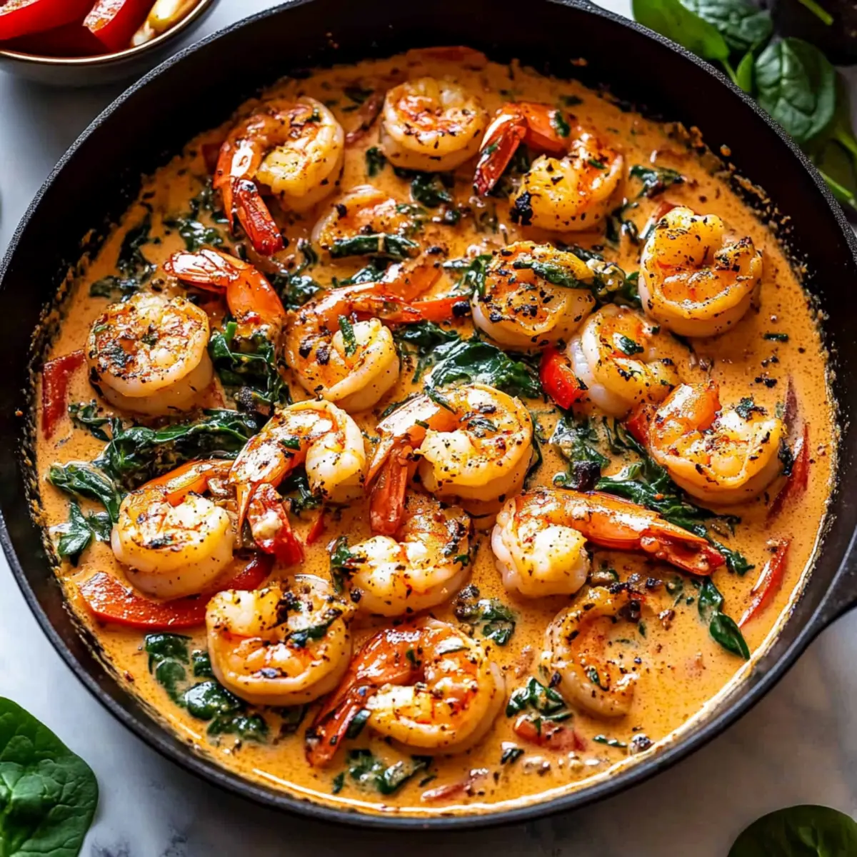 As I stood in my kitchen, the aroma of sizzling garlic and paprika wafted through the air, instantly transporting me to sun-drenched Mediterranean shores. This 30-Minute Creamy Garlic-Paprika Shrimp Skillet brings that experience home, marrying tender shrimp with vibrant veggies in a velvety garlic cream sauce. It’s not just about quick meals; this recipe strikes the perfect balance between easy and impressive—ideal for those bustling weeknights when you want something satisfying yet elegant. In just 30 minutes, you can whip up a dish that dazzles both the eyes and the palate, all while being cozy enough to become a weeknight favorite. Curious about how to recreate this delightful skillet magic in your own home? Let’s dive into the recipe! Why Is This Shrimp Skillet a Winner? Quick and Easy: In just 30 minutes, this recipe transforms ordinary shrimp into a weeknight masterpiece, making it a lifesaver for busy schedules. Flavor Explosion: The combination of garlic, paprika, and a splash of lemon creates a delightful depth of flavor that elevates every bite. Versatile Dish: Whether served over orzo or with crusty bread, this meal adapts beautifully to your cravings! Visual Appeal: Bright red bell peppers and vibrant spinach not only add color but also make this dish irresistibly inviting. Impressive Dining: Perfect for impressing guests or simply treating yourself, this creamy skillet dish is sure to earn rave reviews. If you’re looking for more inspiration, check out our Garlic Shrimp Pasta or Cajun Shrimp Boil! Creamy Garlic-Paprika Shrimp Skillet Ingredients For the Shrimp • 1 lb. peeled and deveined raw shrimp – This is the star of the dish; quick to cook and full of flavor. Can substitute with chicken or salmon for variety. • 1 tsp. sea salt (divided) – Enhances the natural taste of the shrimp. Reduce to 3/4 tsp. if using fine table salt. • 3/4 tsp. cracked black pepper (divided) – Adds warmth and seasoning; feel free to adjust to your spice preference. For the Vegetables • 1 large shallot, finely chopped – Offers a hint of sweetness and depth; can substitute with onion if needed. • 1/2 cup finely chopped red bell pepper – Provides a pop of color and mild sweetness; other sweet bell pepper variants work well, too. • 4 garlic cloves, minced – Essential for that savory, aromatic flavor profile. • 2 Tbsp. tomato paste – Brings umami and richness; you can add more for a deeper flavor. • 1/2 tsp. crushed red pepper flakes – Introduces a nice kick; adjust based on your spice tolerance. For the Sauce • 3/4 cup lower-sodium vegetable or chicken broth – Adds moisture and enhances flavor as the base for your sauce. • 2 tsp. paprika – Critical for both flavor and color; smoked paprika adds an extra depth. • 2 handfuls fresh baby spinach – Boosts nutritional content and adds vibrant color; kale or Swiss chard can be used as a substitute. • 1/2 cup heavy cream – Provides that creamy texture; consider half-and-half or cashew cream for a lighter option. • 1-2 Tbsp. fresh lemon juice (from 1 lemon) – Brightens the overall dish; fresh juice is always best. To Garnish and Serve • 2 Tbsp. chopped fresh parsley leaves – Adds freshness and color; optional if you prefer a simpler presentation. • Cooked orzo or rice, or crusty bread for dipping – Serve these delightful sides to soak up the creamy sauce. This Creamy Garlic-Paprika Shrimp Skillet is not just a meal; it’s an experience waiting to unfold in your kitchen! Step‑by‑Step Instructions for Creamy Garlic-Paprika Shrimp Skillet Step 1: Prepare shrimp Begin by patting the peeled and deveined raw shrimp dry with paper towels to ensure they sear beautifully. Season the shrimp with half the sea salt and cracked black pepper for flavorful seasoning. Set aside as you prepare to sauté these tender morsels into the centerpiece of your Creamy Garlic-Paprika Shrimp Skillet. Step 2: Sauté shrimp In a large skillet, heat 2 tablespoons of extra-virgin olive oil over medium-high heat until shimmering, about 2 minutes. Carefully add the seasoned shrimp in a single layer, cooking them for 3 minutes until they turn pink and opaque. Flip each shrimp and cook for an additional minute. Remove the shrimp to a plate and let them rest while you build your sauce. Step 3: Cook vegetables Lower the heat to medium and add the remaining tablespoon of olive oil to the skillet. Introduce the finely chopped shallots and red bell pepper, sautéing for 3 to 4 minutes. Stir frequently until the vegetables are softened and fragrant. This step lays the foundation for the vibrant and rich flavors that will envelop the shrimp in the Creamy Garlic-Paprika Shrimp Skillet. Step 4: Add aromatics Once the vegetables are tender, stir in the minced garlic, tomato paste, and crushed red pepper flakes. Cook this aromatic mixture for 2 to 3 minutes, stirring continuously until the garlic is fragrant but not burnt. This combination will infuse the dish with a delightful depth of flavor, essential for a truly satisfying creamy skillet experience. Step 5: Create sauce Pour in the lower-sodium vegetable or chicken broth to deglaze the skillet, scraping up any tasty bits from the bottom. Allow the mixture to simmer for about 5 minutes, or until it reduces by half. Add the paprika and toss in the baby spinach, cooking just until wilted, about 1 to 2 minutes. This step will enhance the color and nutritional content of your Creamy Garlic-Paprika Shrimp Skillet. Step 6: Finish sauce Reduce the heat to low, then stir in the heavy cream and fresh lemon juice, allowing the sauce to warm through for a minute. Adjust the seasoning with the remaining sea salt and cracked black pepper. The sauce should now be creamy and rich, providing a lush coating for the shrimp that’s about to be added back into the skillet. Step 7: Combine Gently return the sautéed shrimp to the skillet, tossing them in the creamy sauce until well coated. Remove fro
